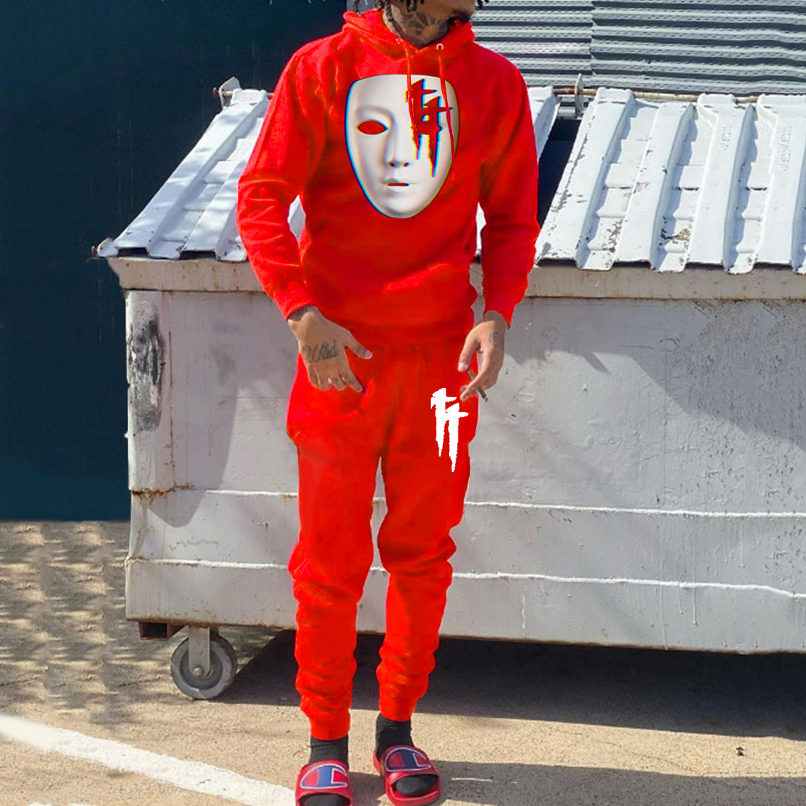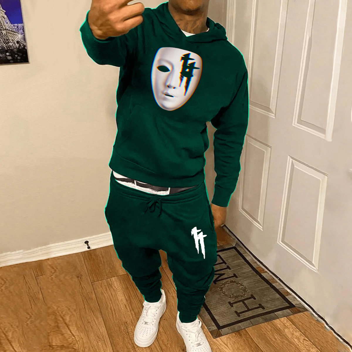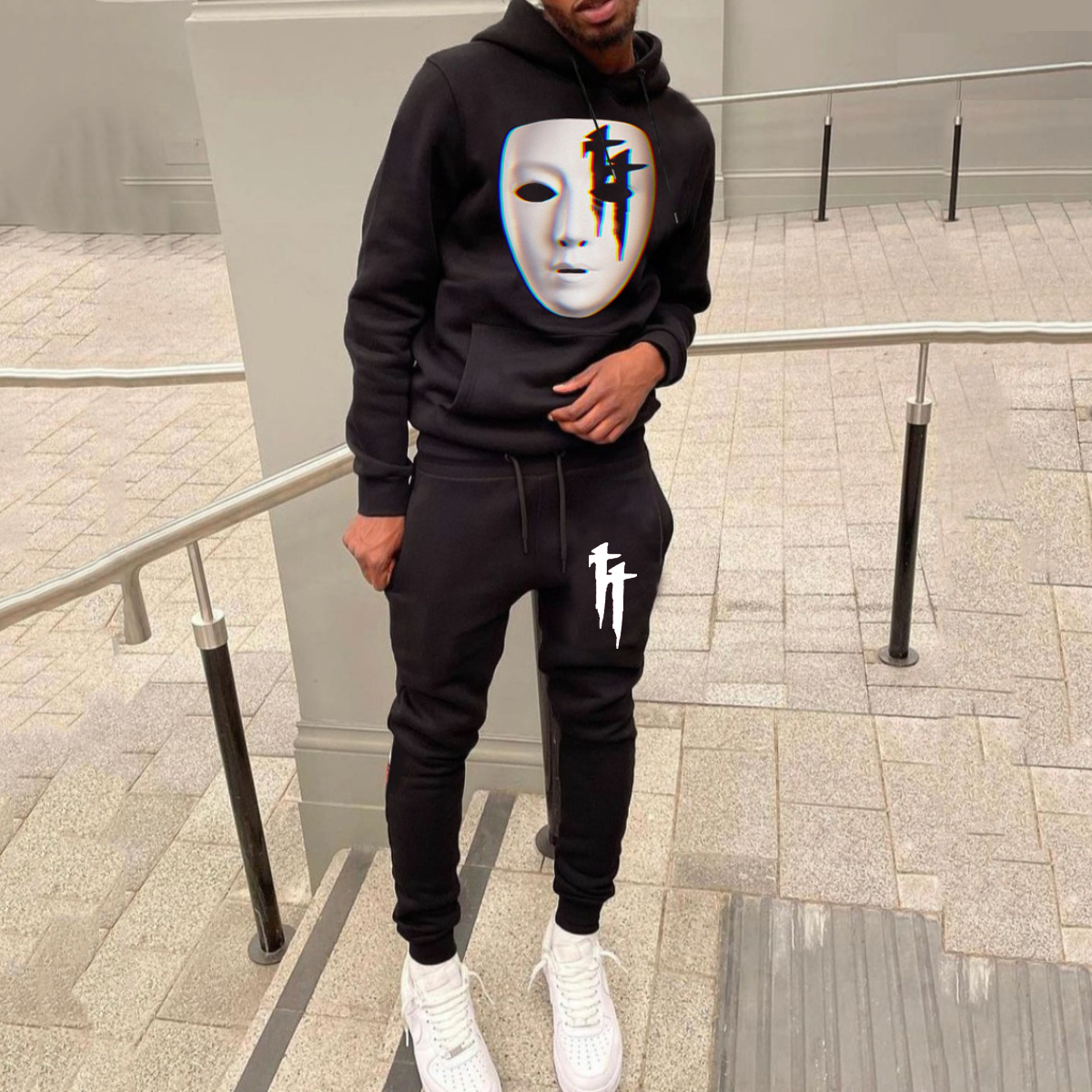 Casual Cross Print Hoodie And Pants Two Piece Set