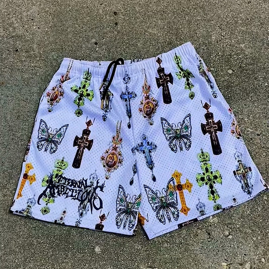 Casual Cross Print Mesh Shorts
