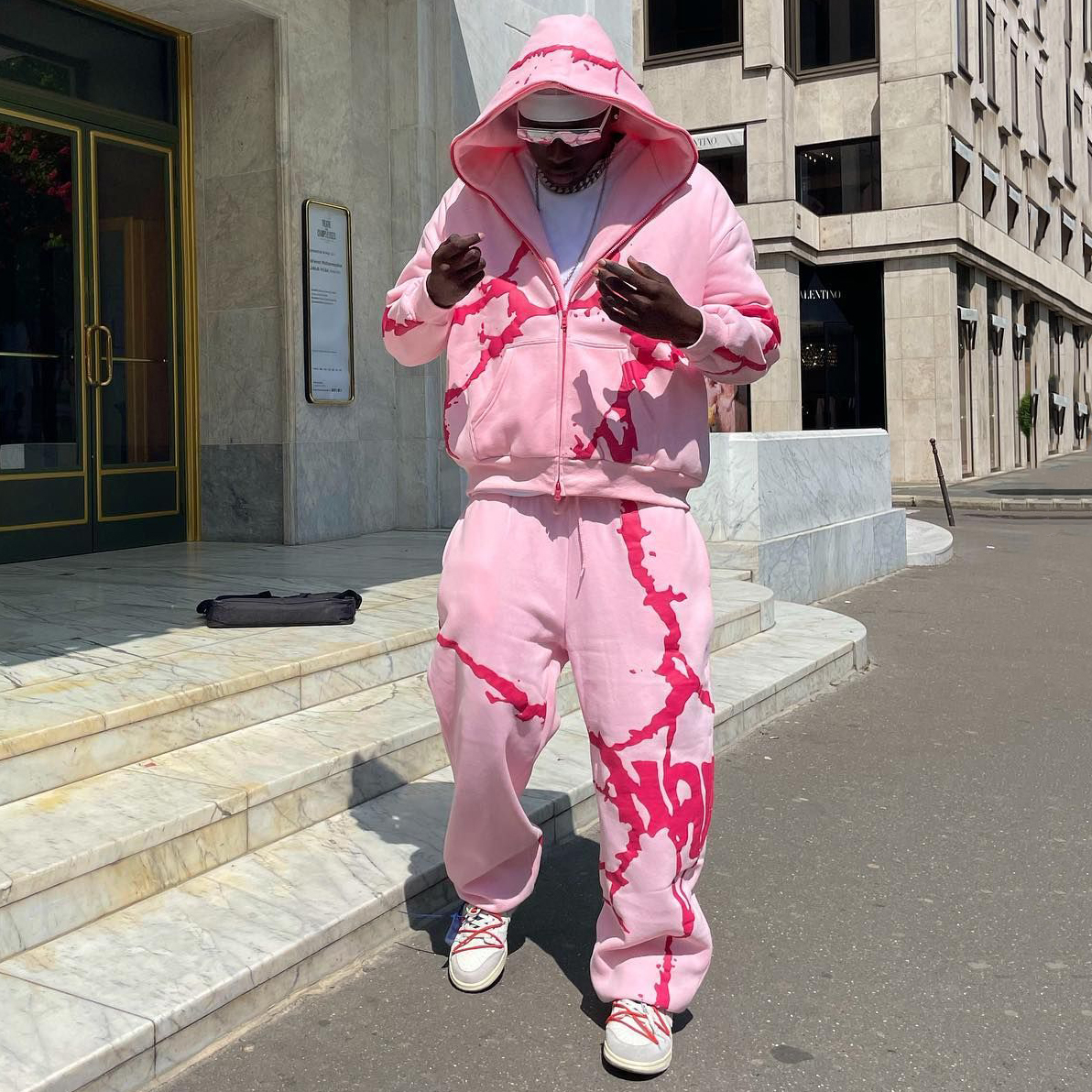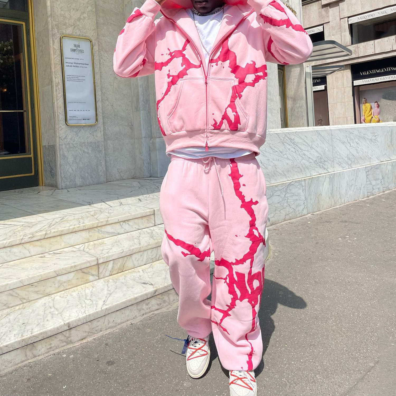 Casual Full Zip Hoodie Sweatpants Print Two Piece Set