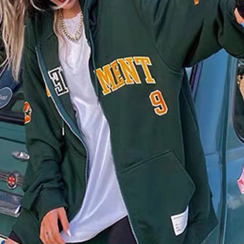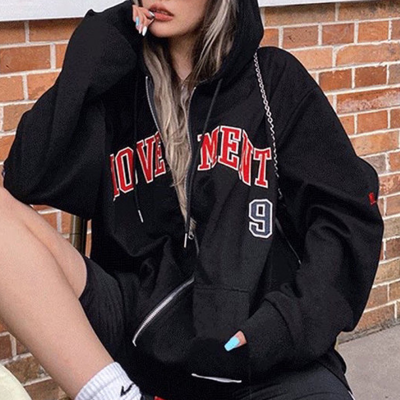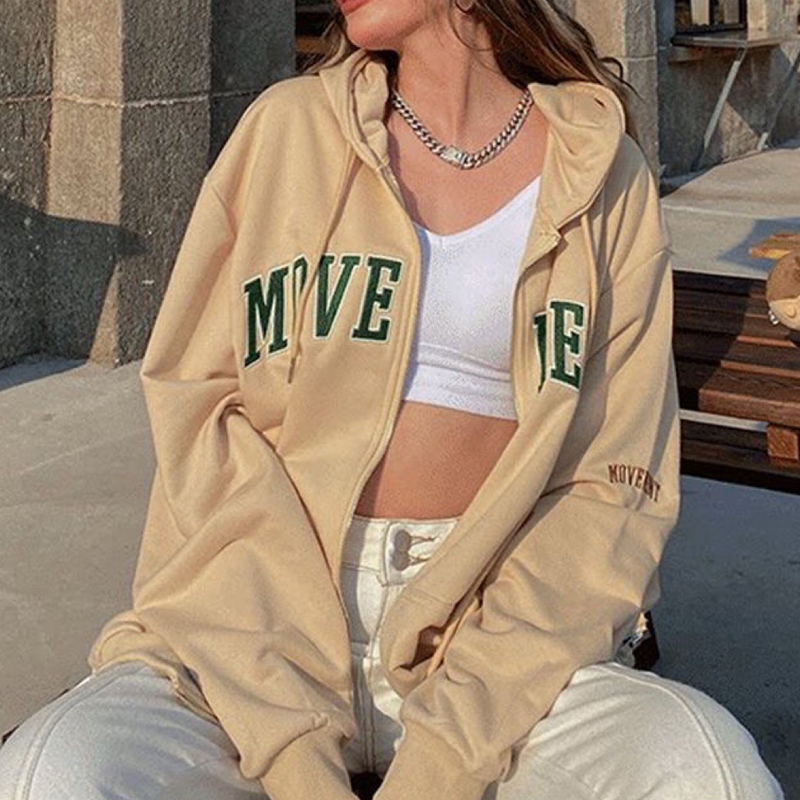Casual Movement Print Zipped Hoodie