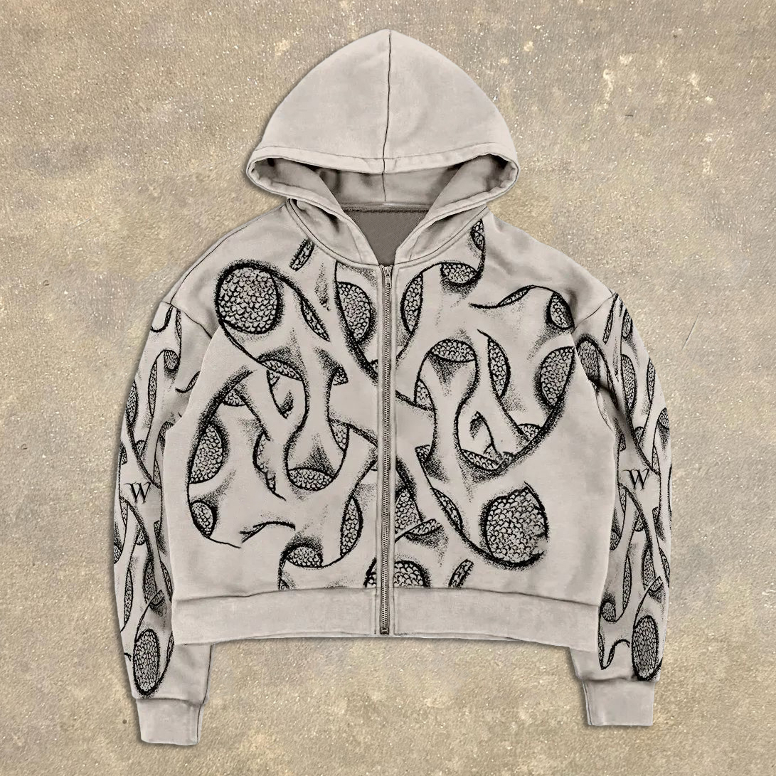 Casual Print Long Sleeve Zipper Hoodies
