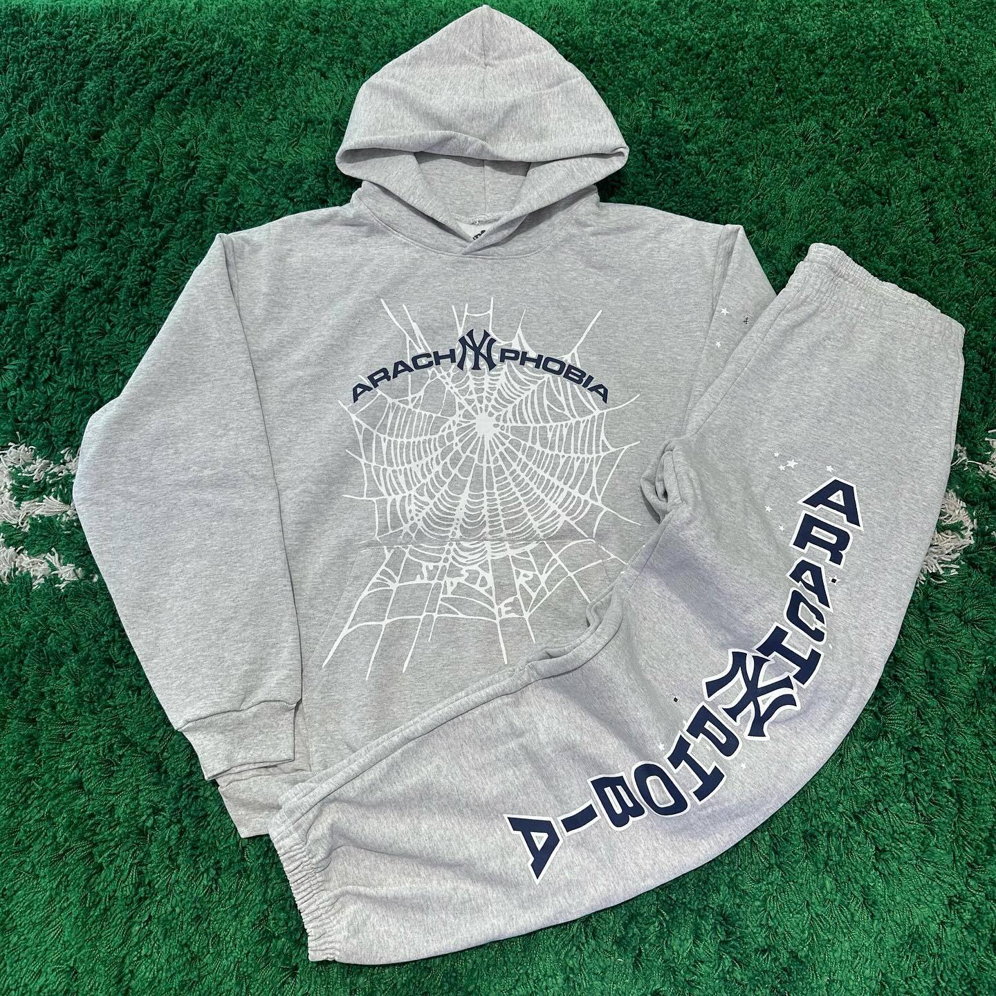 Casual retro spider print hoodie set