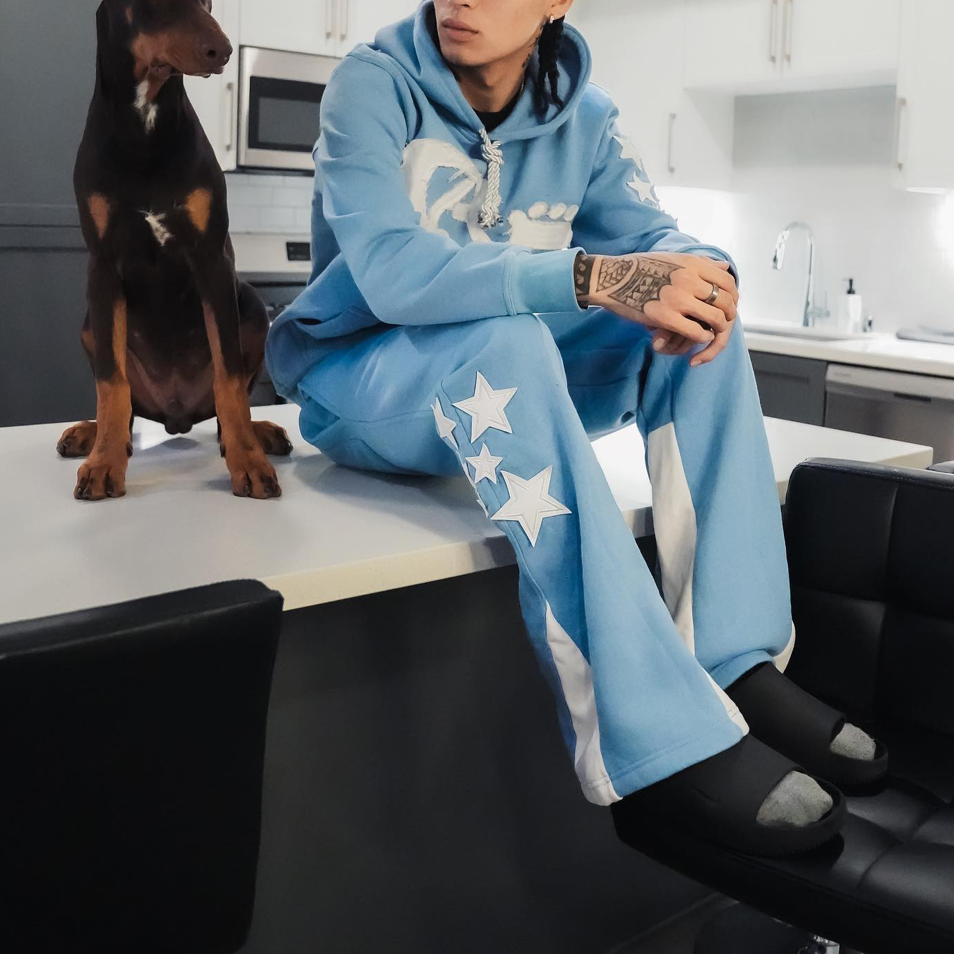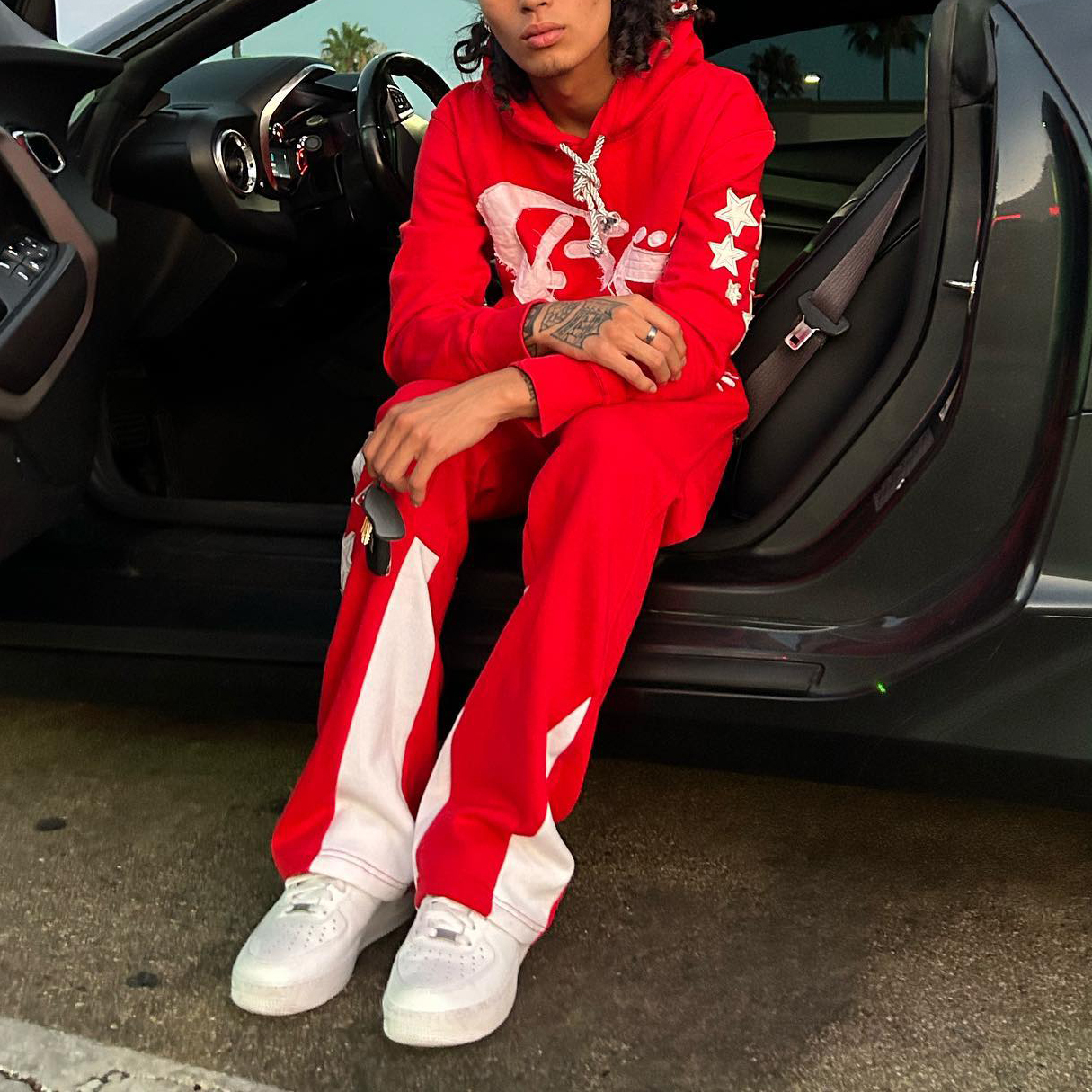 Casual retro pattern hoodie set