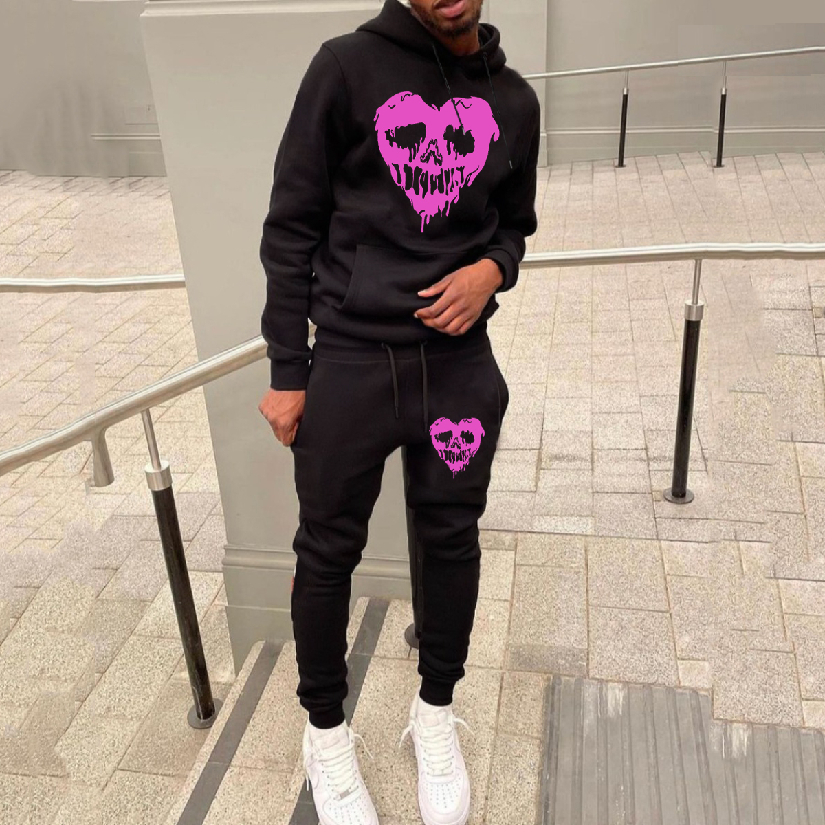 Casual Skull Heart Print Two-Piece Set