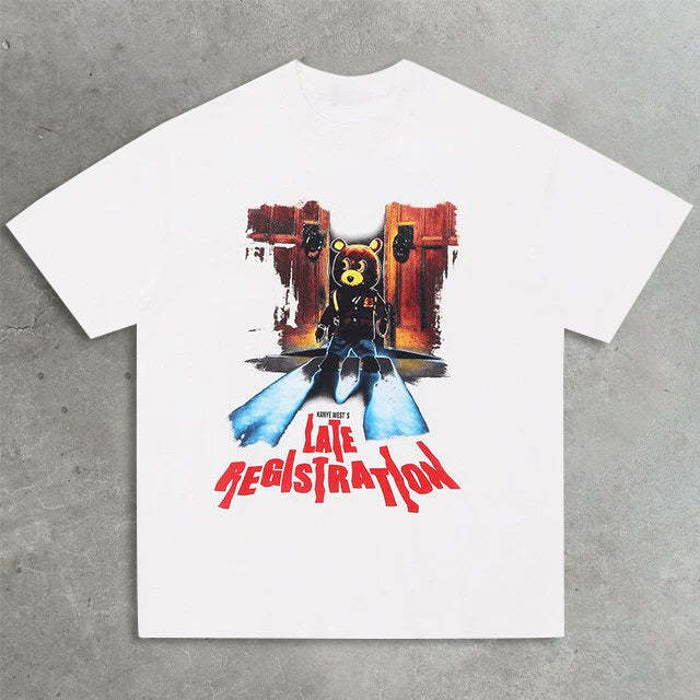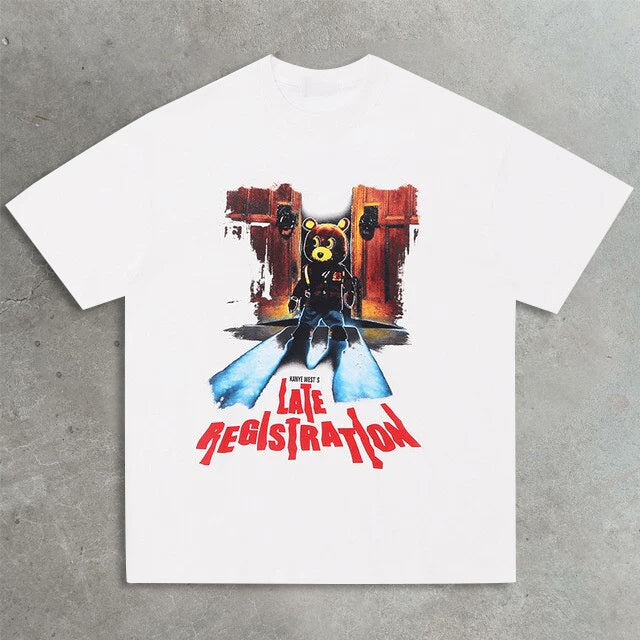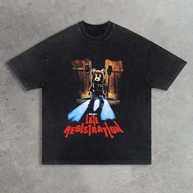 Casual street bear print T-shirt