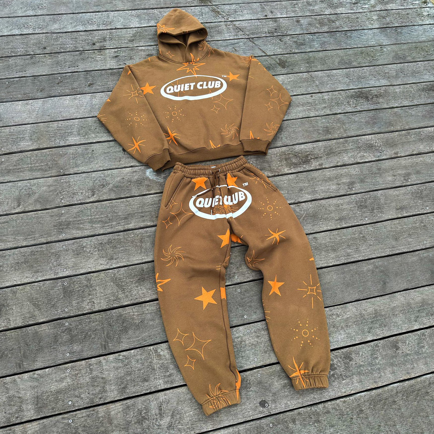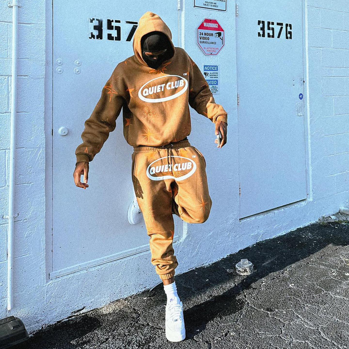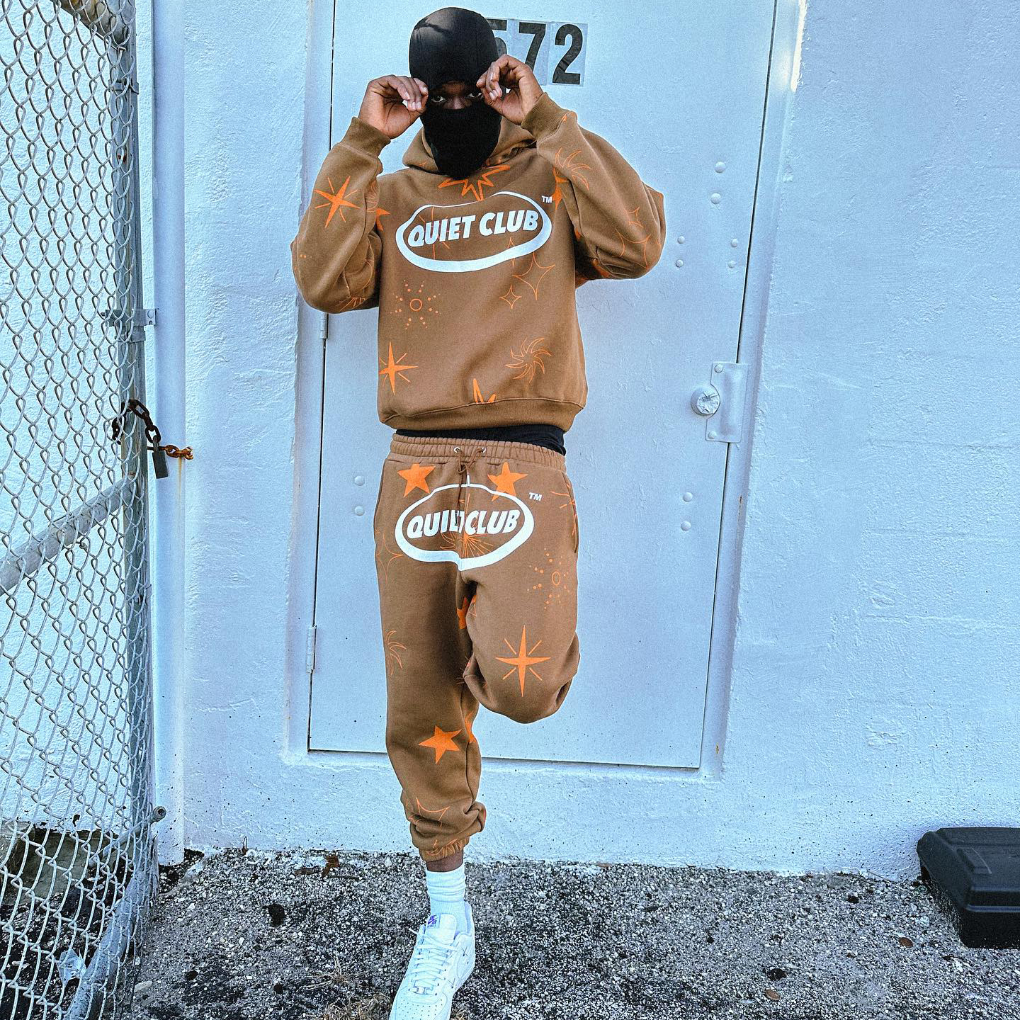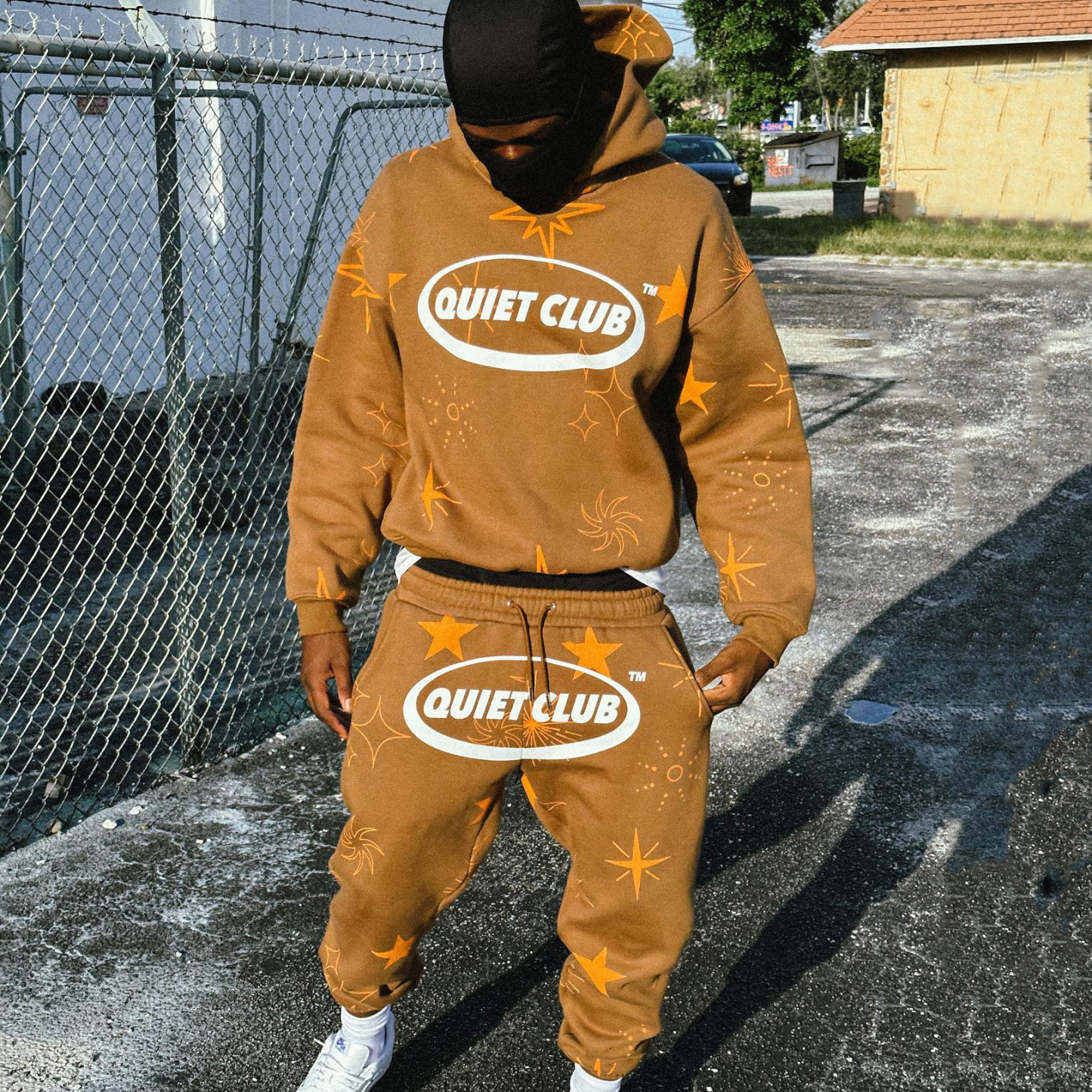Casual Street Hoodie Print Hoodie Two Piece Set