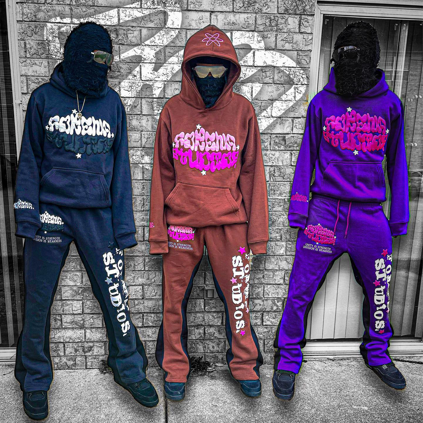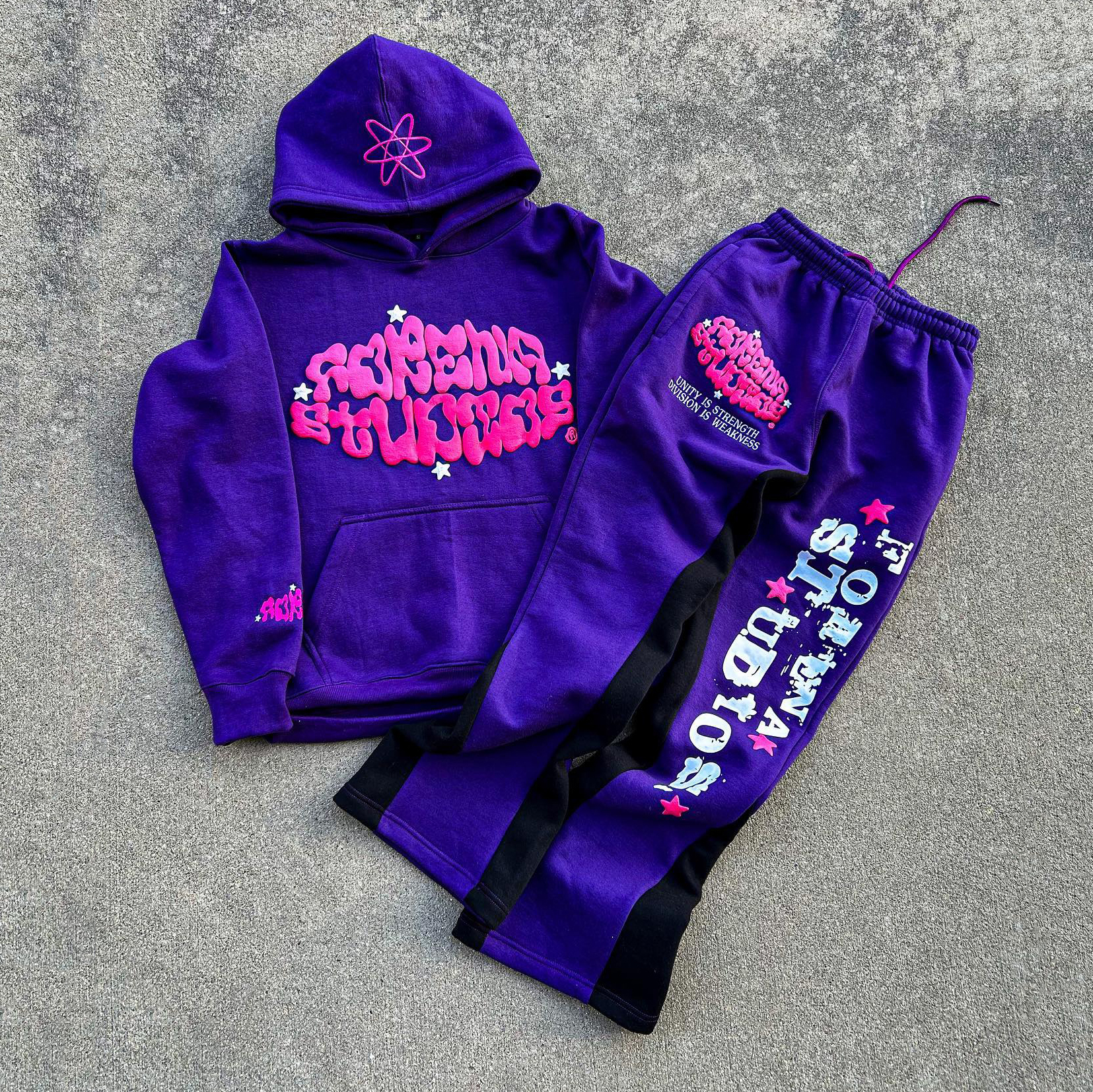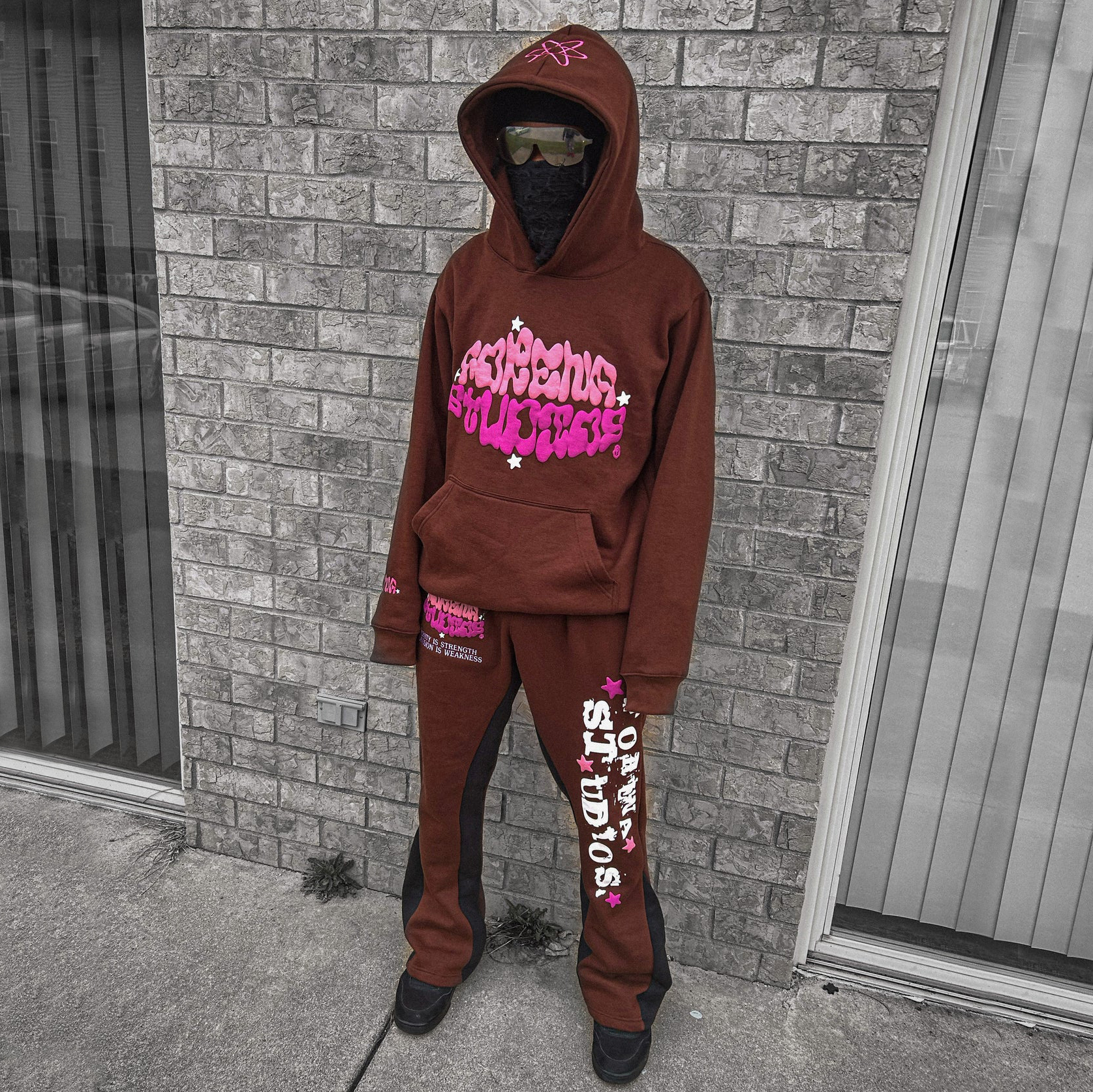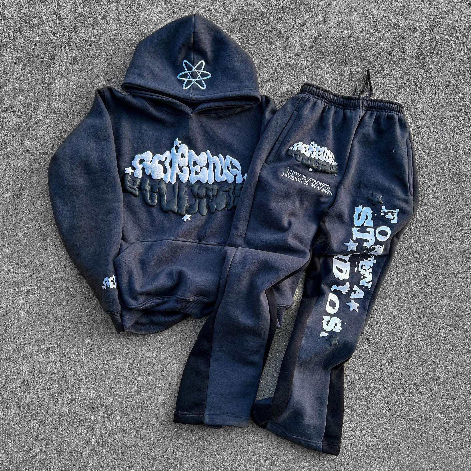 Casual street patchwork printed hoodie and trousers two-piece suit