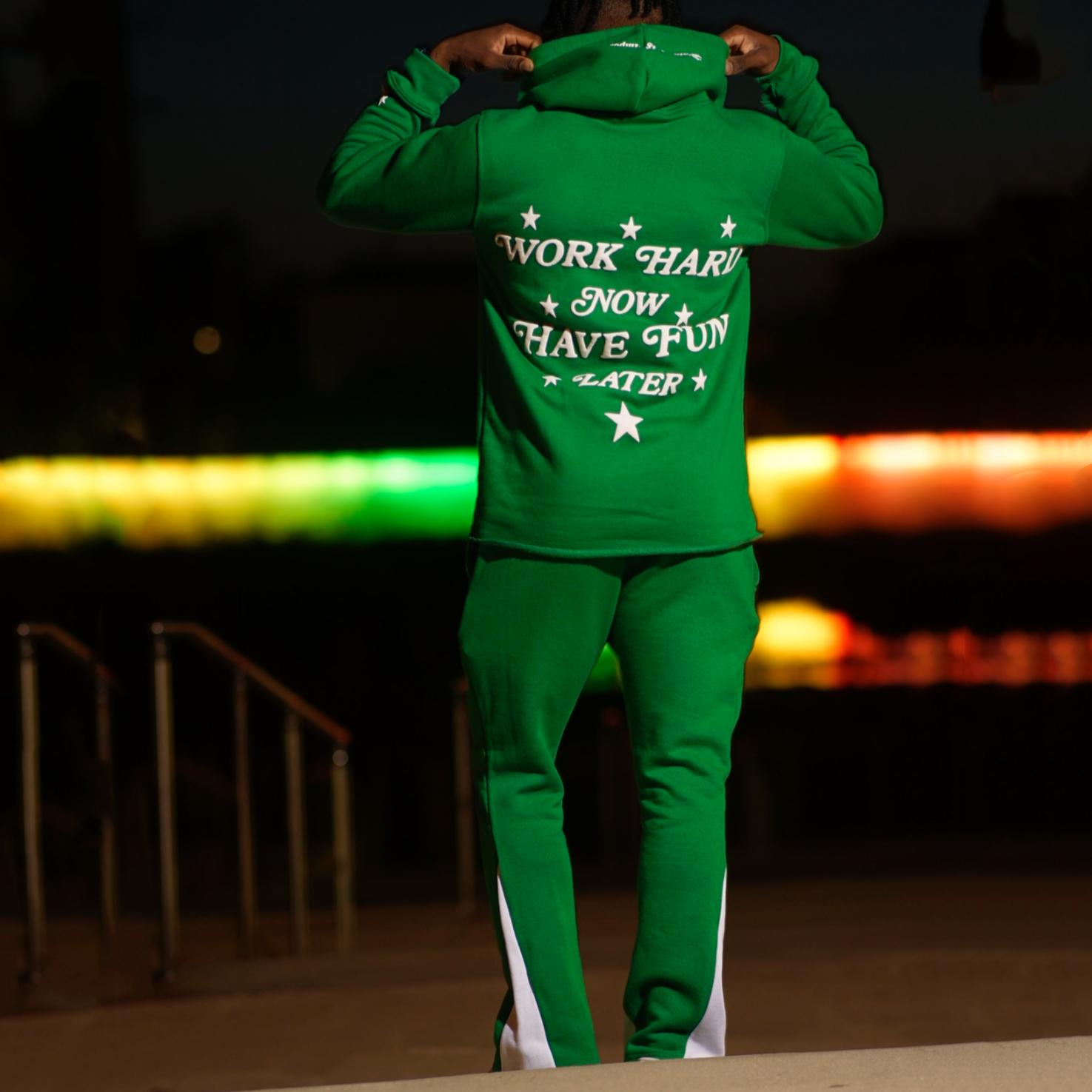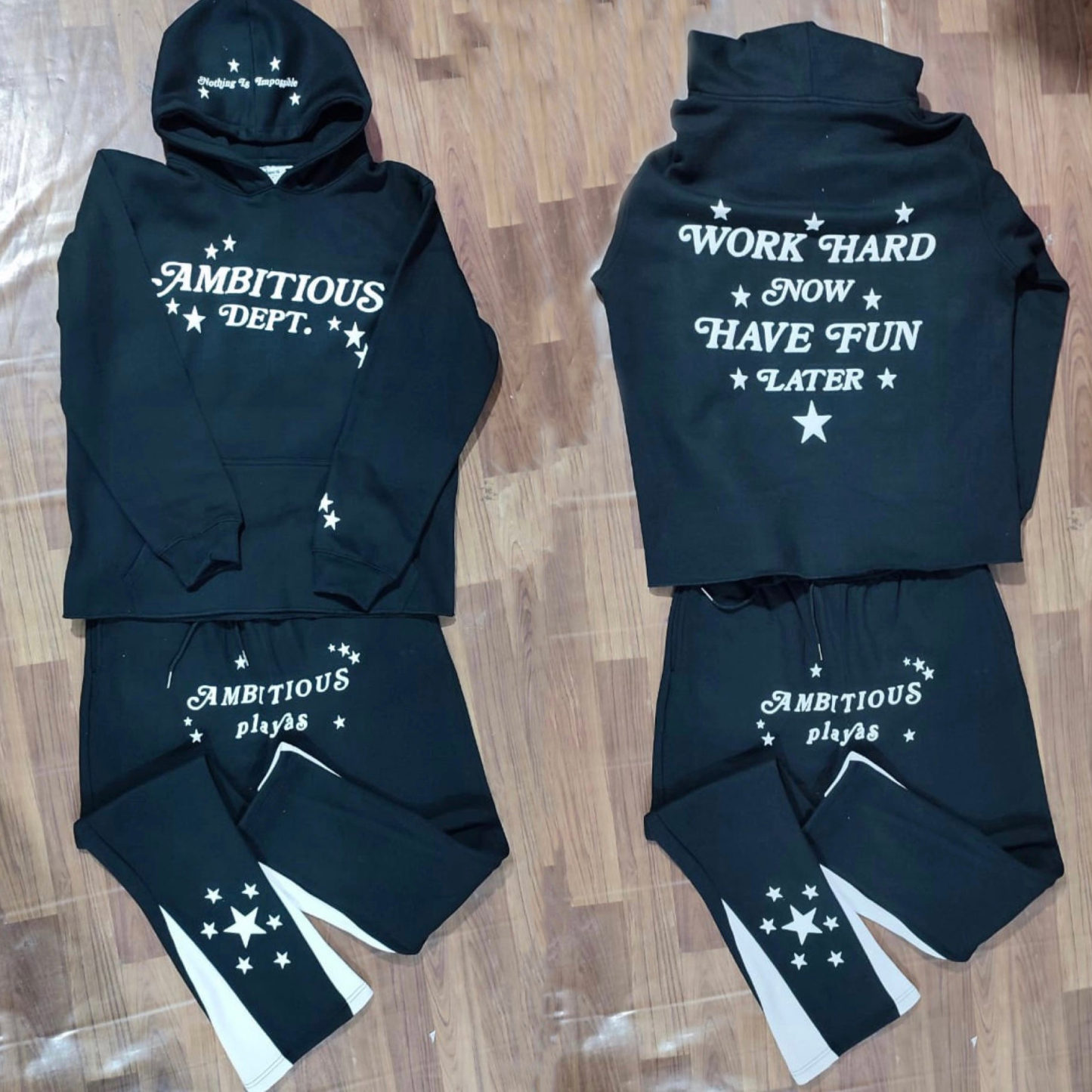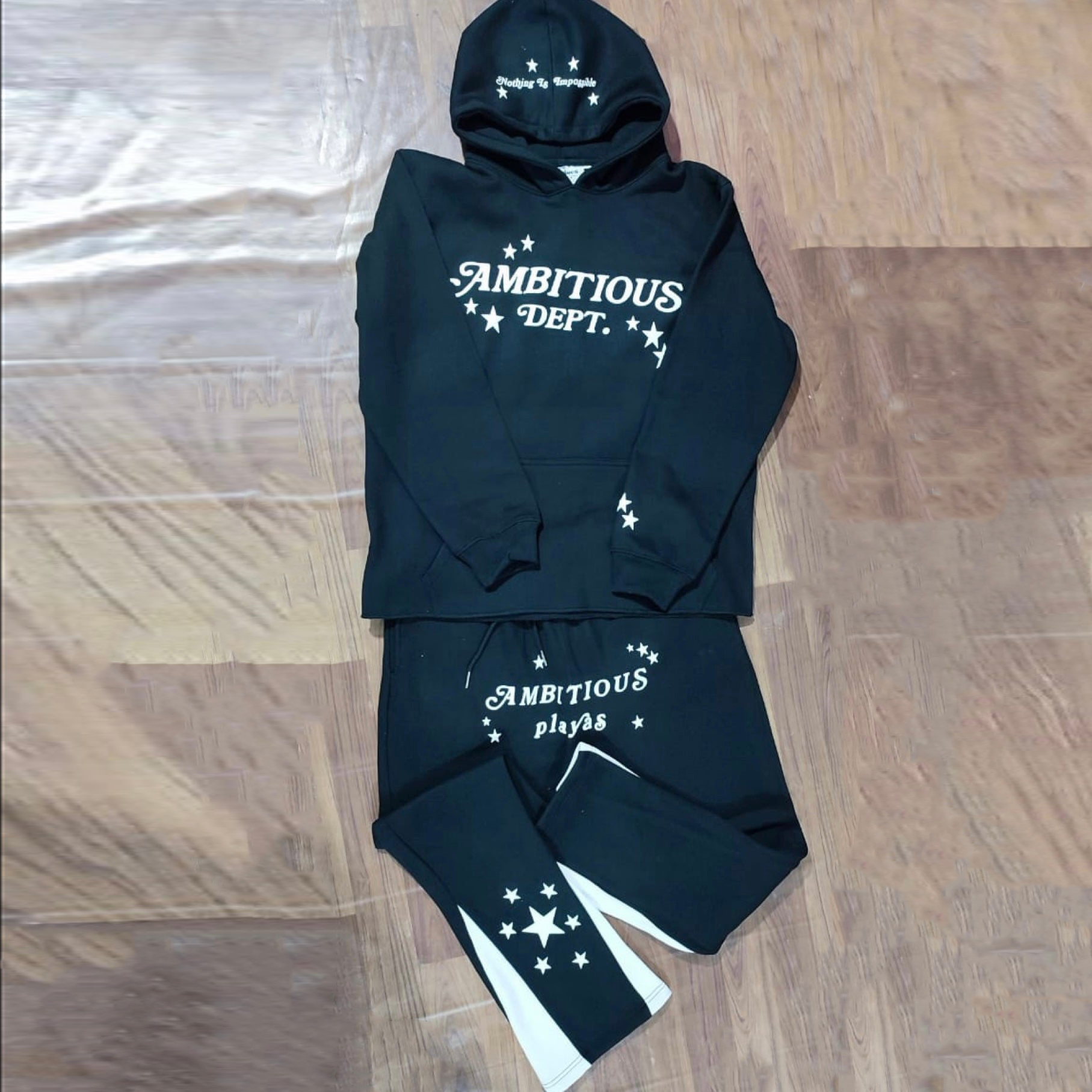 Casual street patchwork print hoodie two-piece set