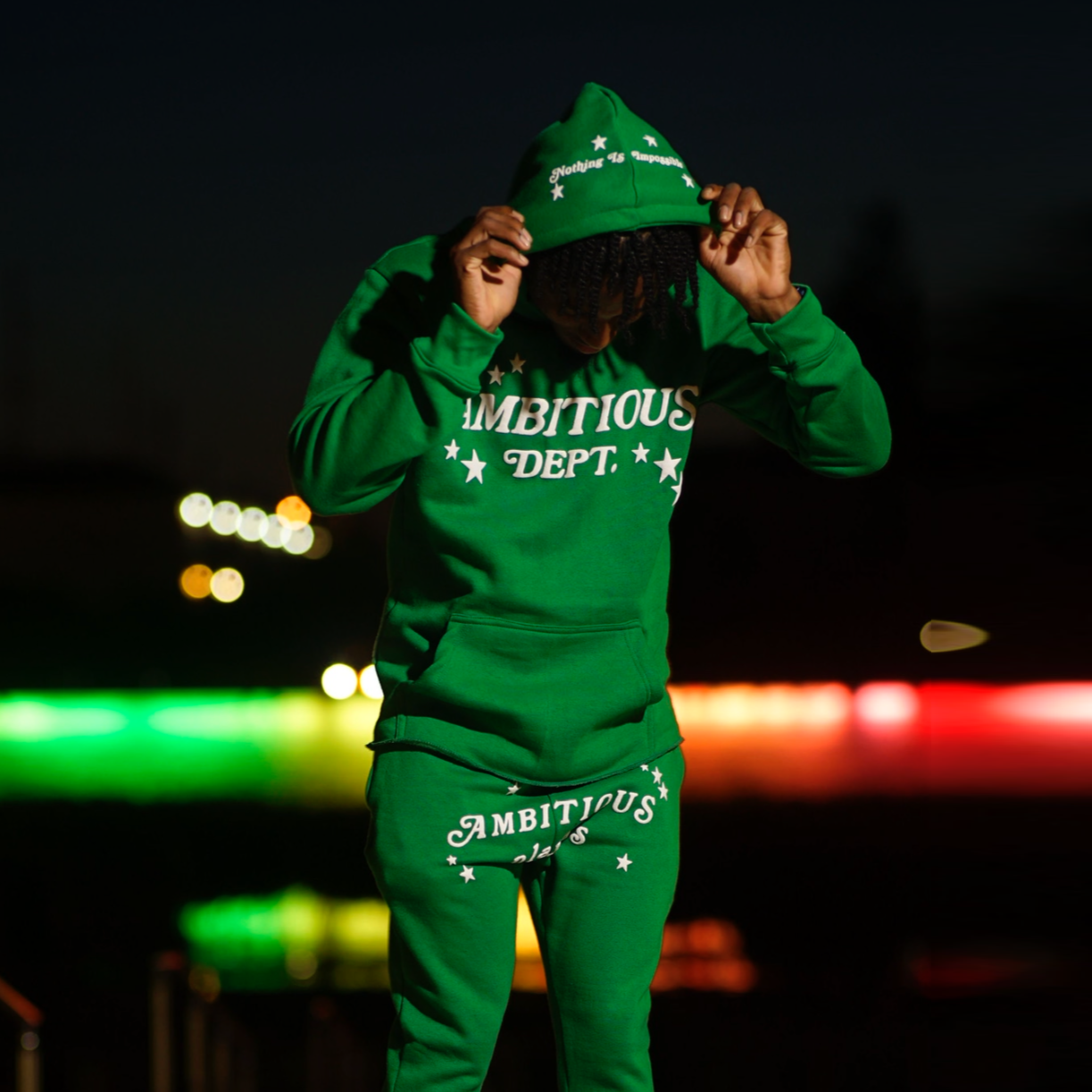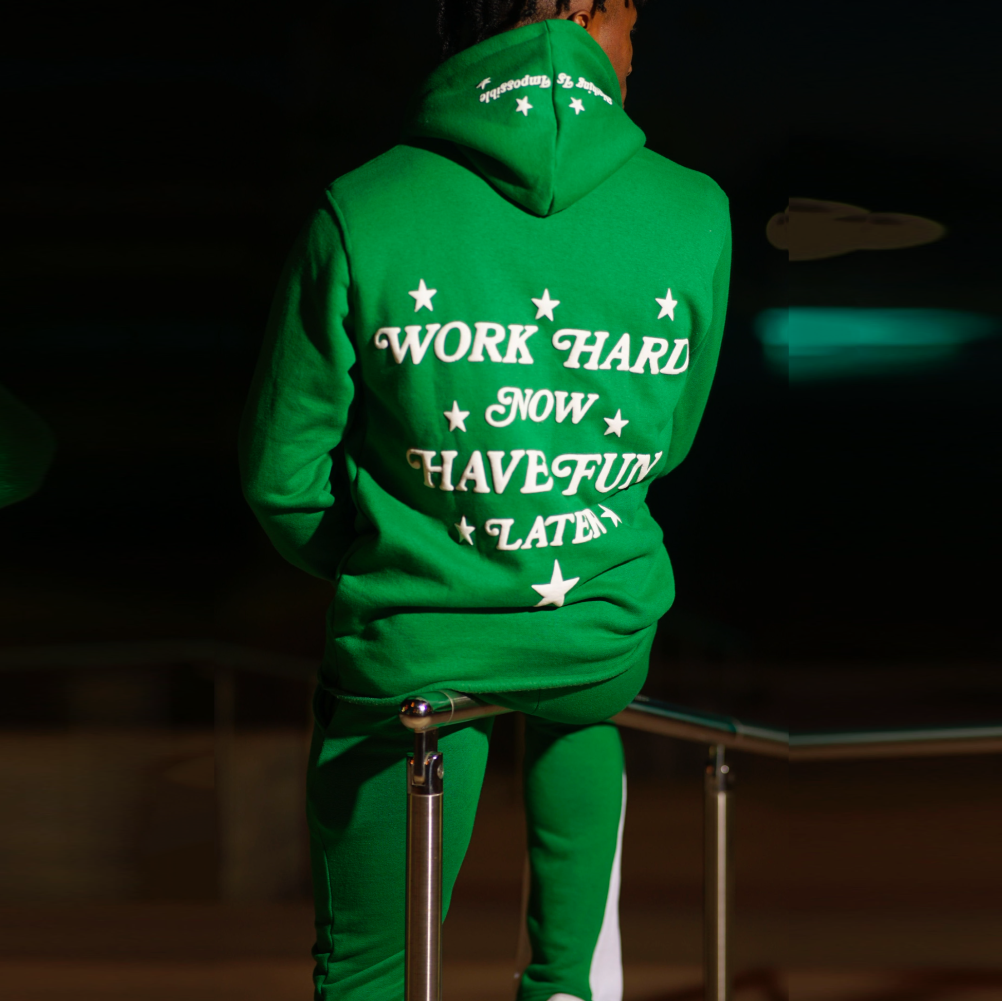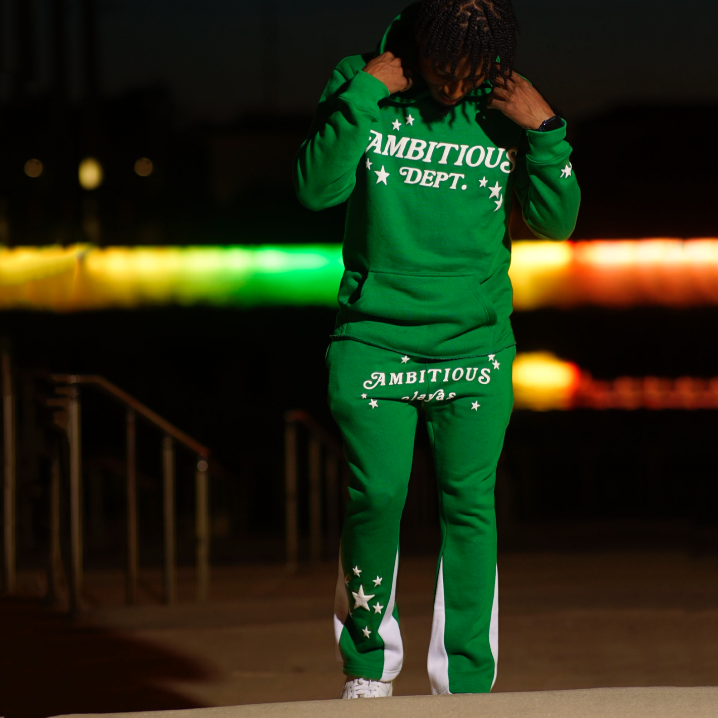 Casual street patchwork print hoodie two-piece set