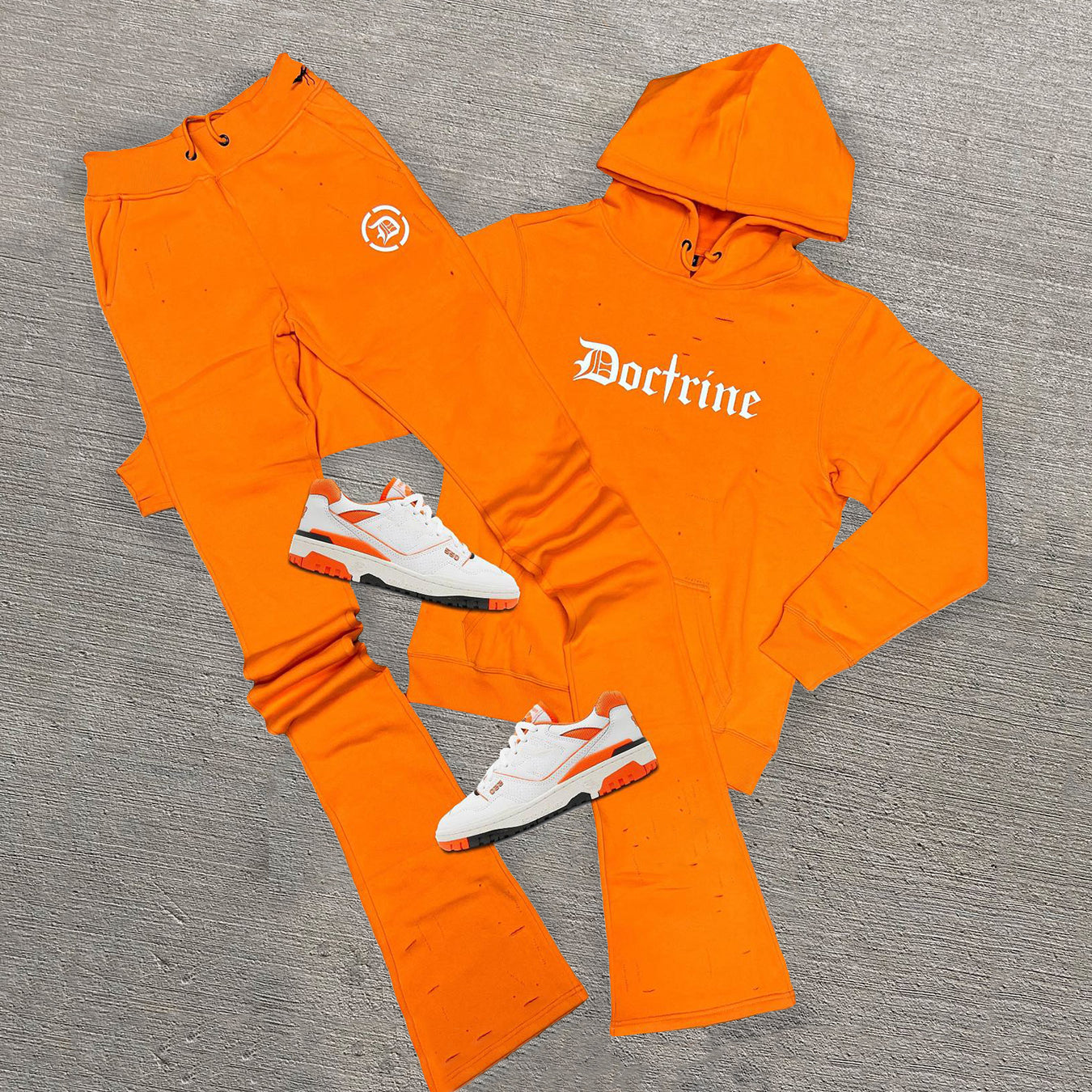 Casual street print pile pants hoodie two-piece set