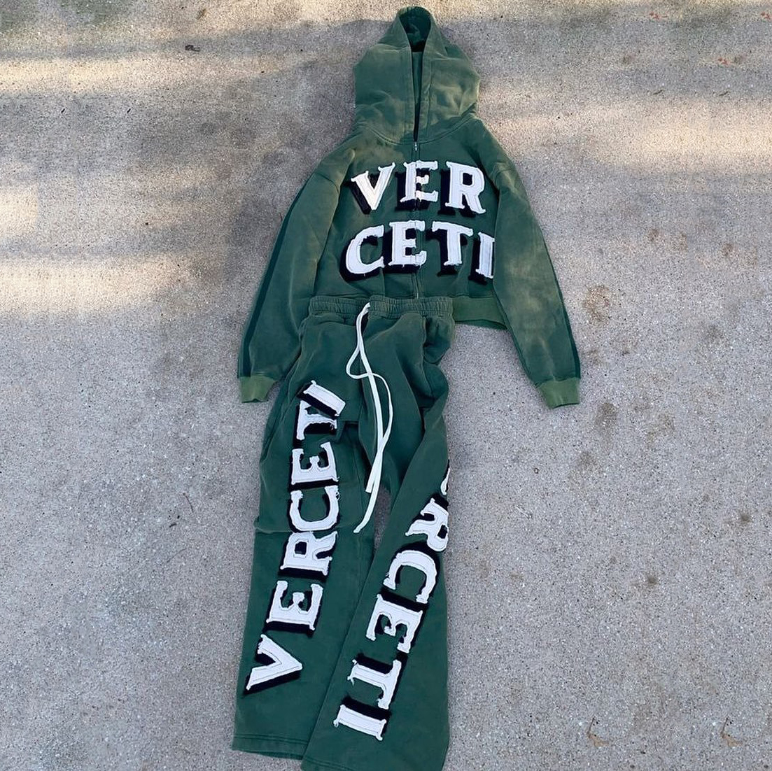 Casual Street Retro Zipper Hoodie Pants Two-Piece Set