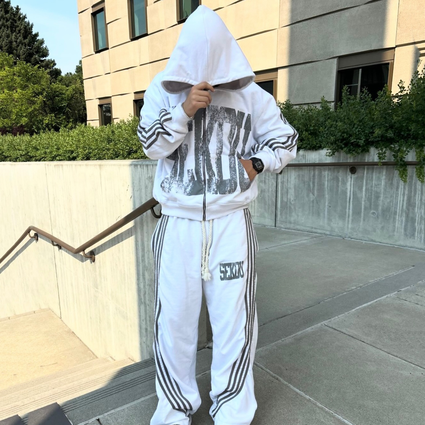 Casual Street Zip Hoodie Pants Two-Piece Set