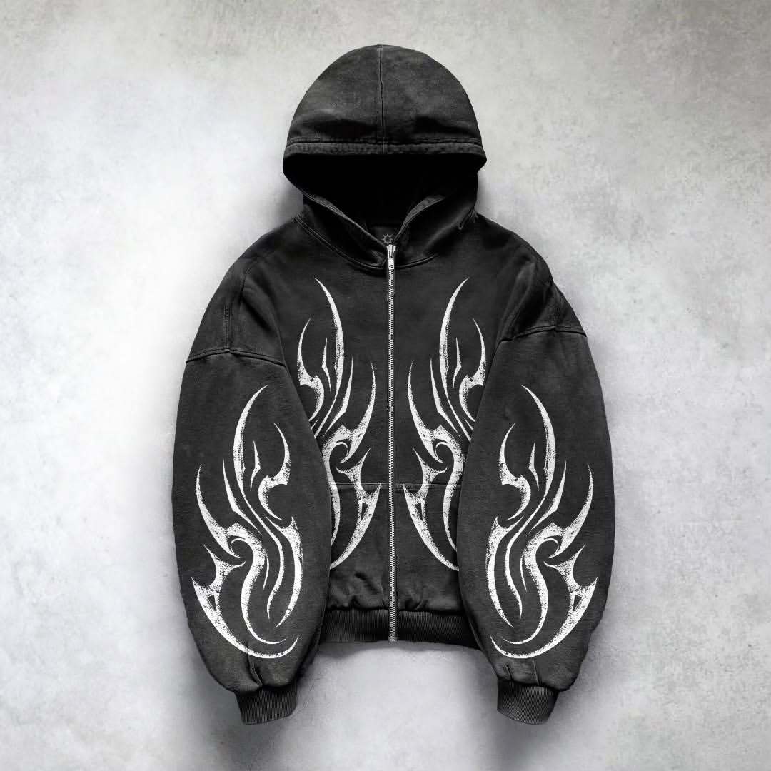 Casual Vintage Zip-Up Loose Hoodie