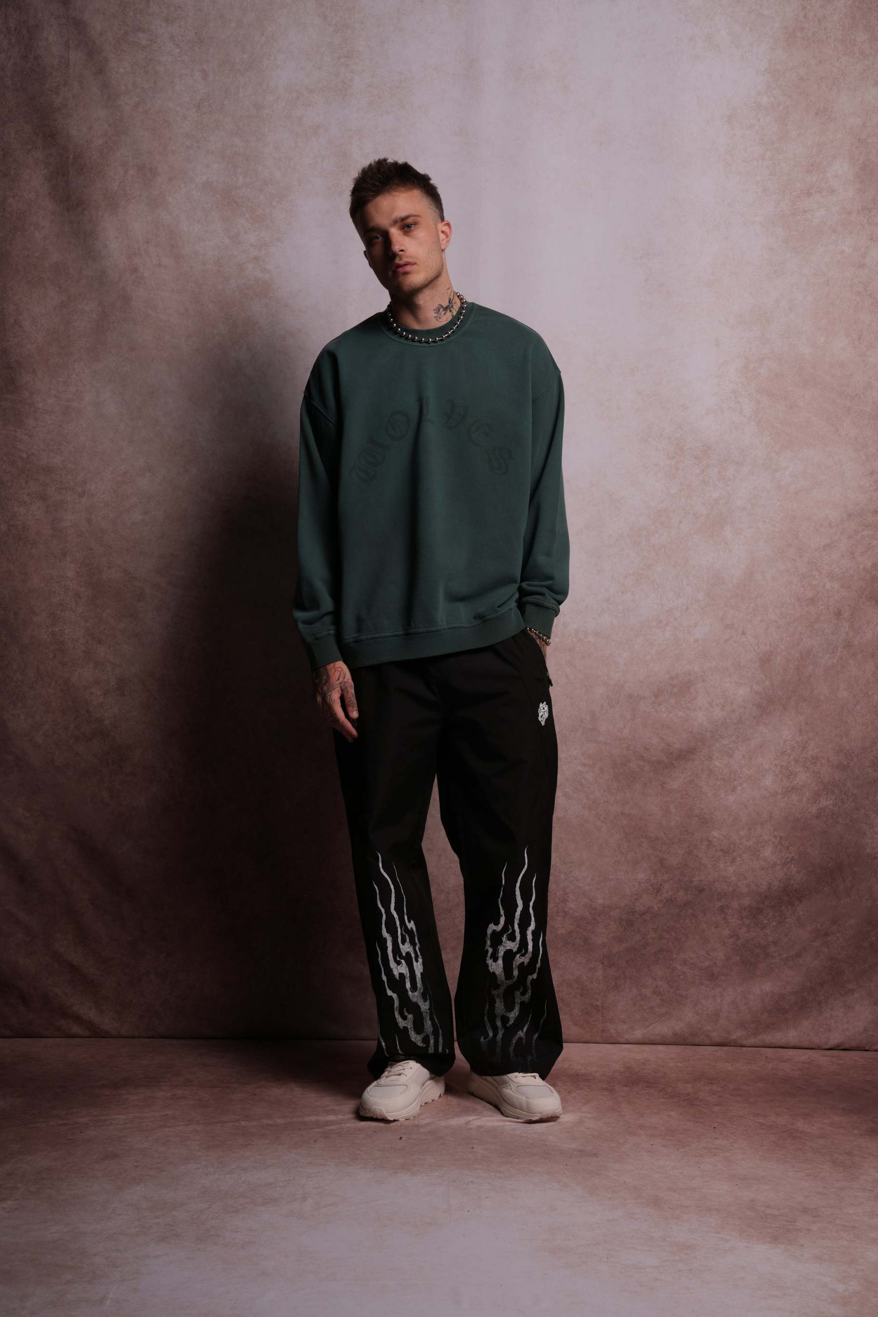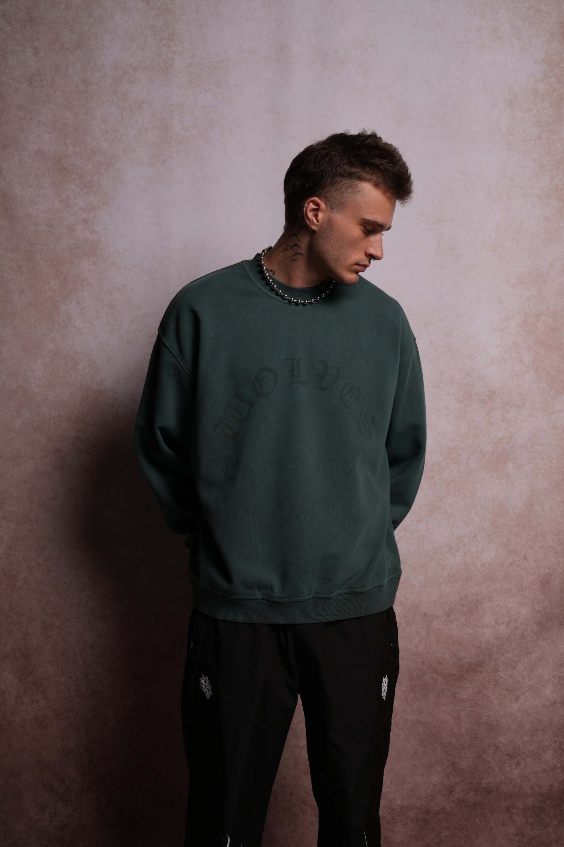 Chopper Grunge Oversized London Crewneck in Norse Green Horizon Sun Fade