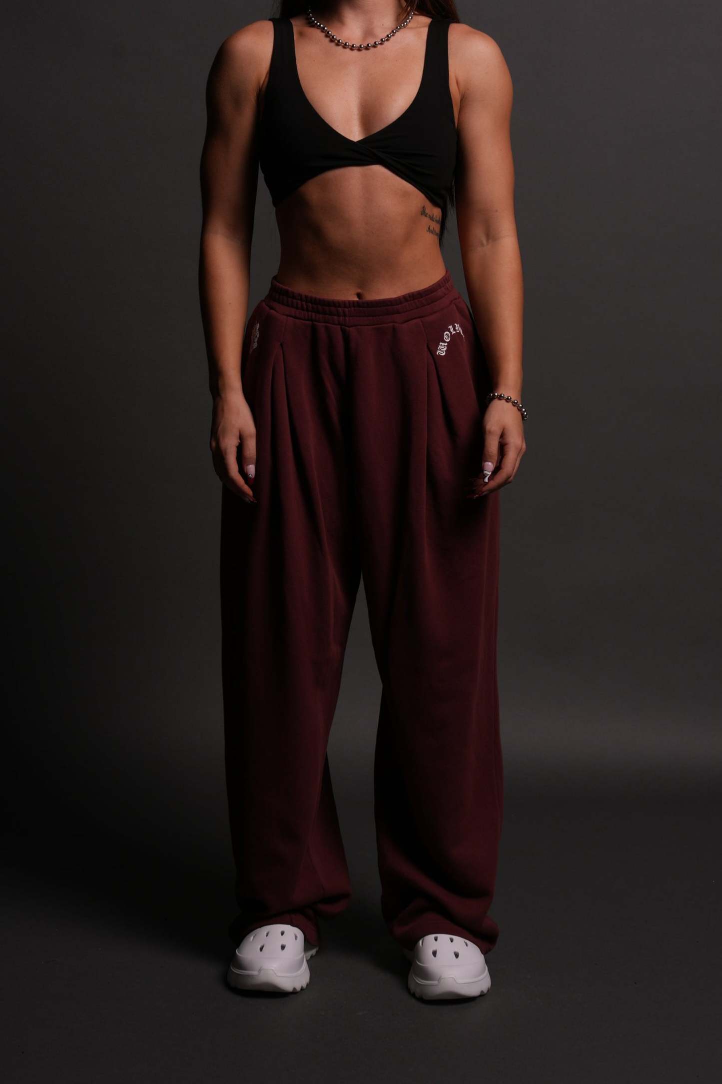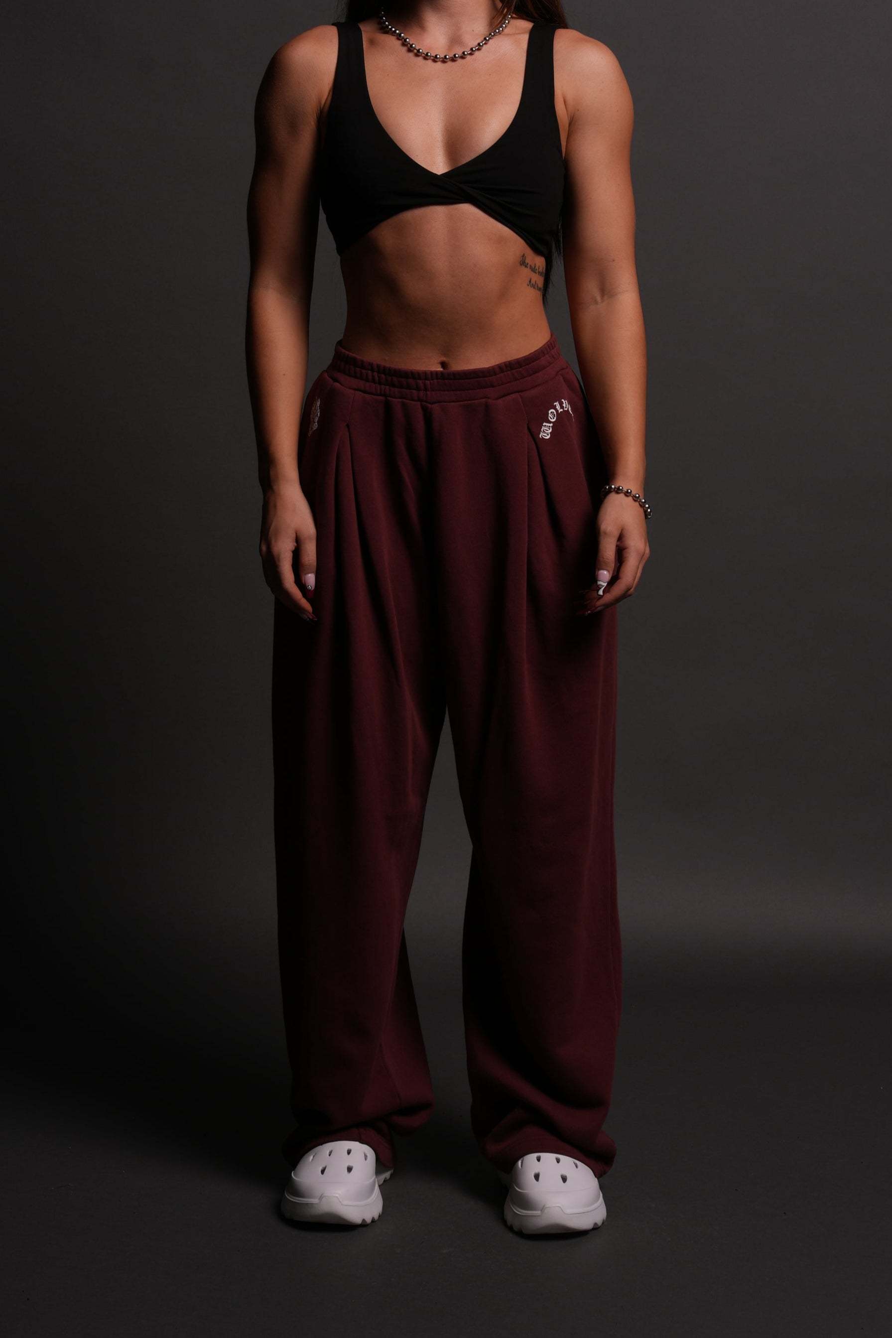 Chopper Wolf "Yara" Pleated Sweat Pants in Oxblood
