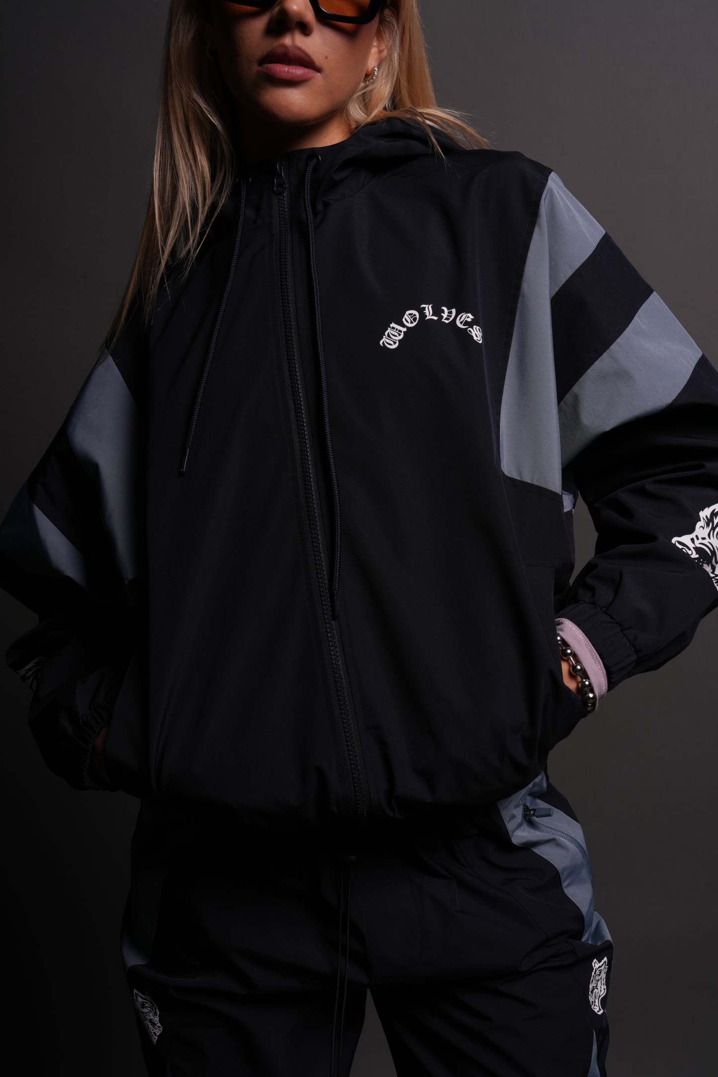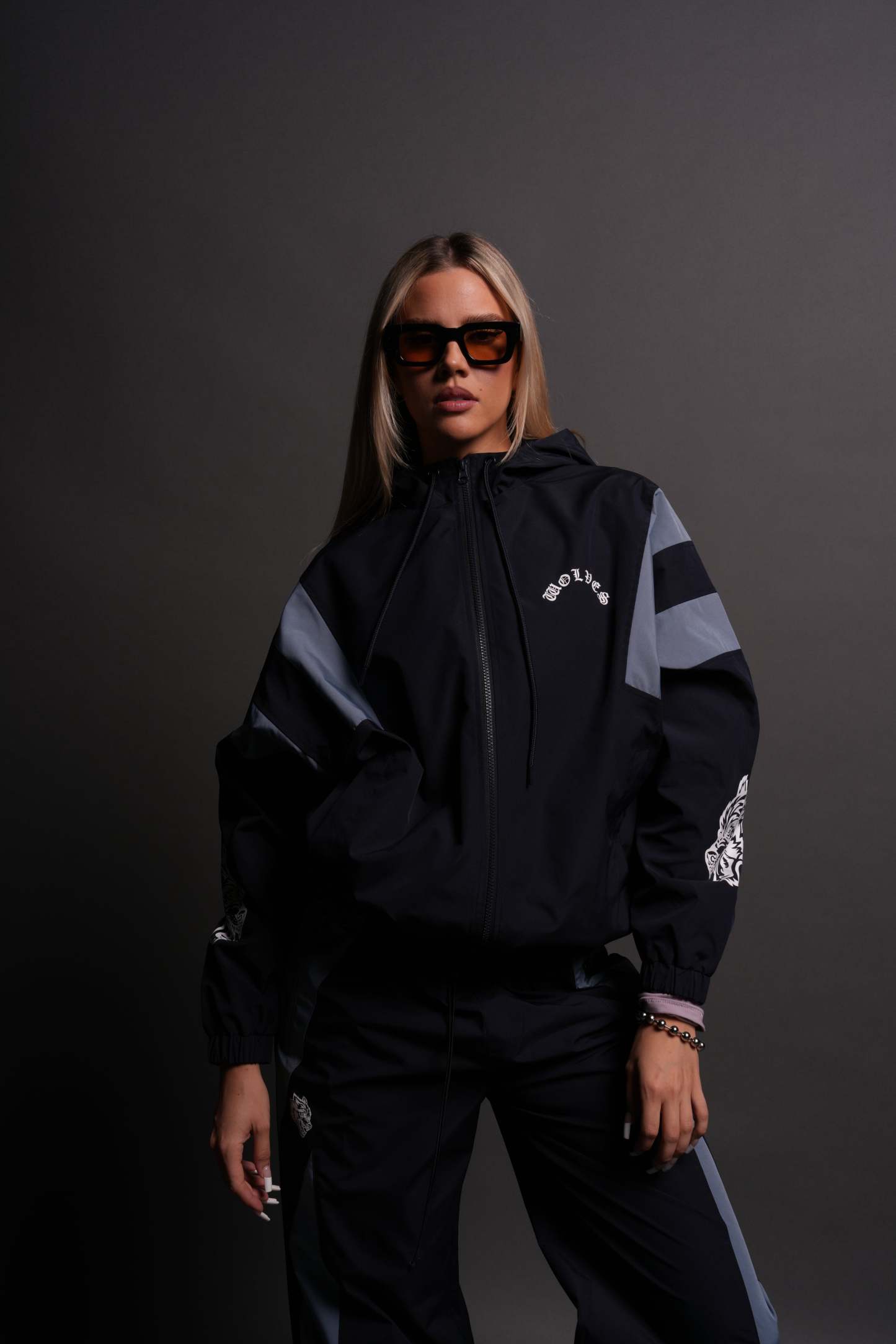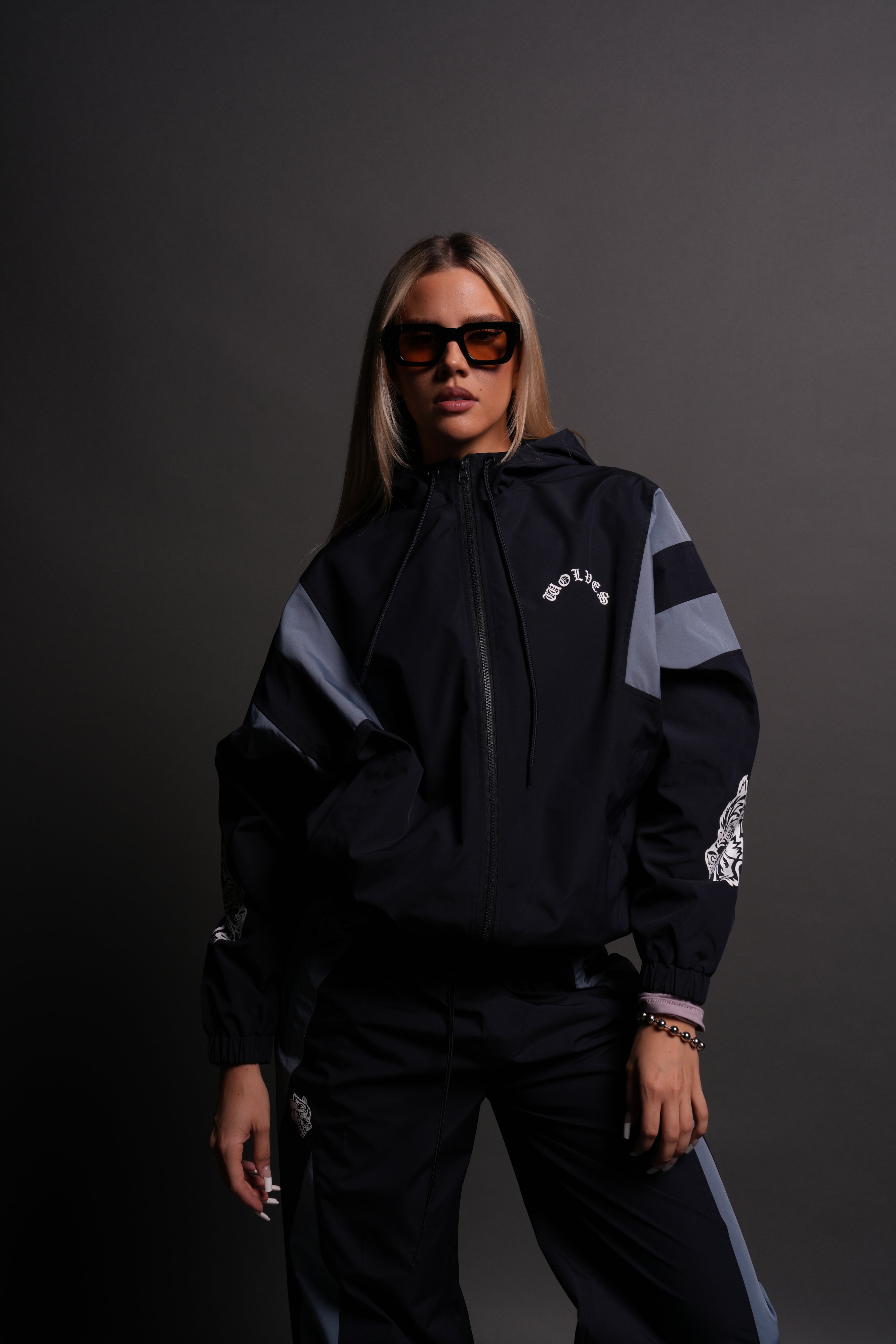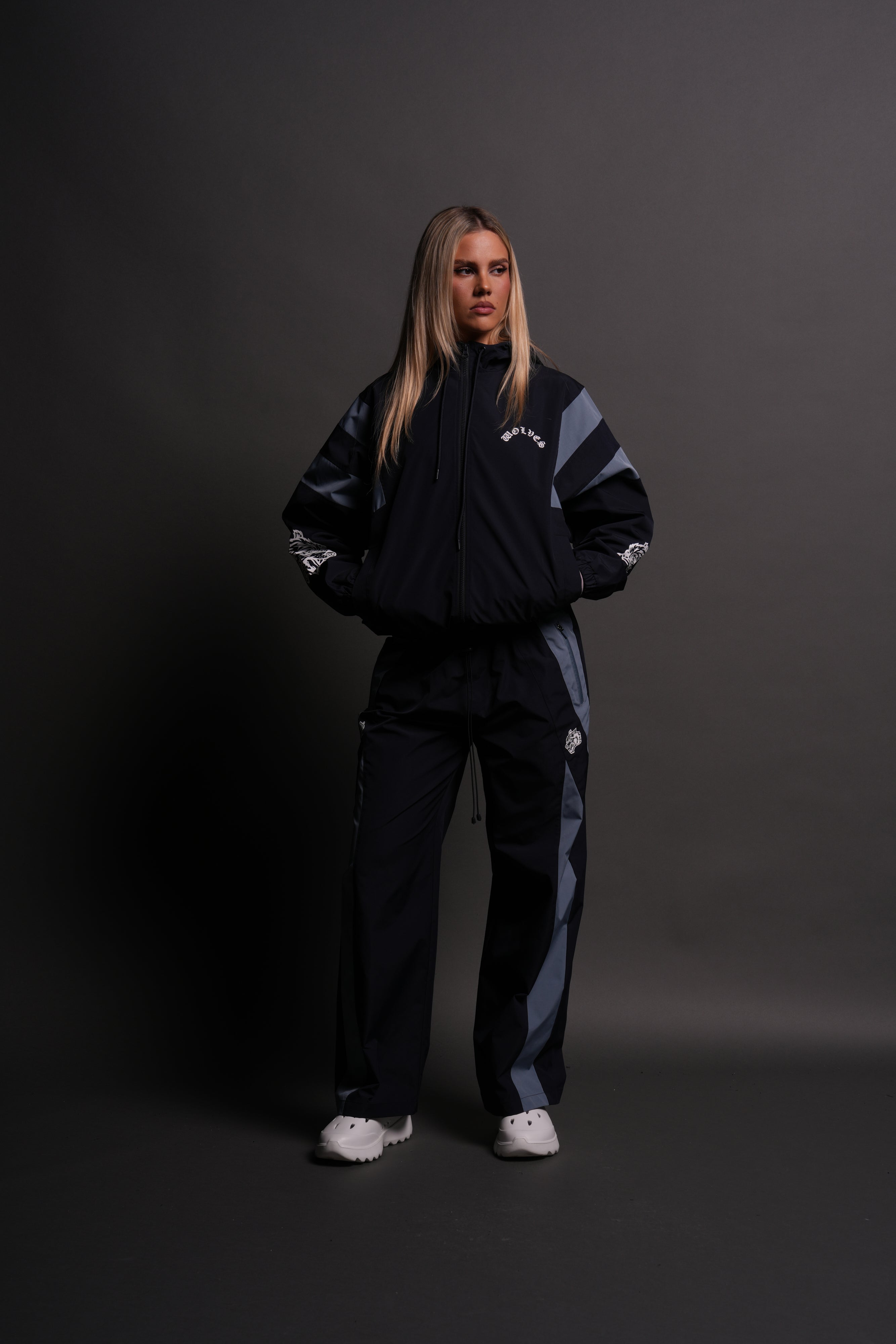 Chopper Wolves Brolic She Track Jacket in Midnight Blue/Denim