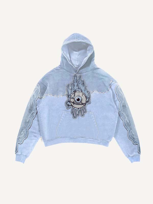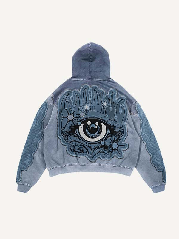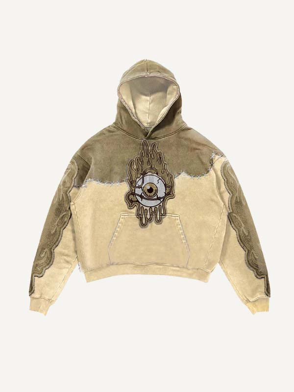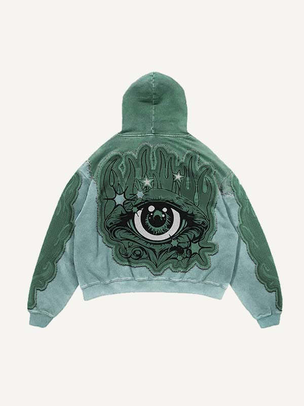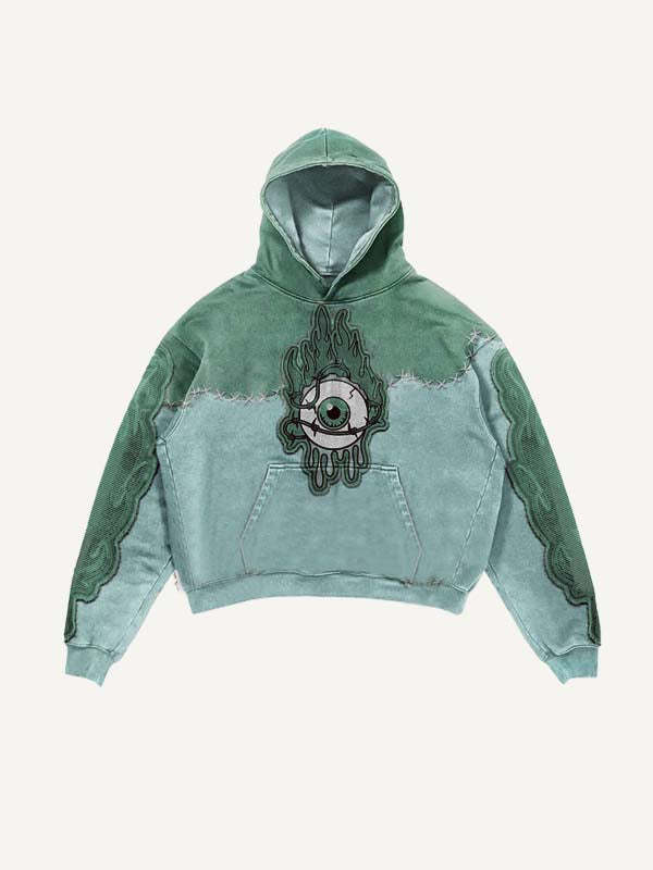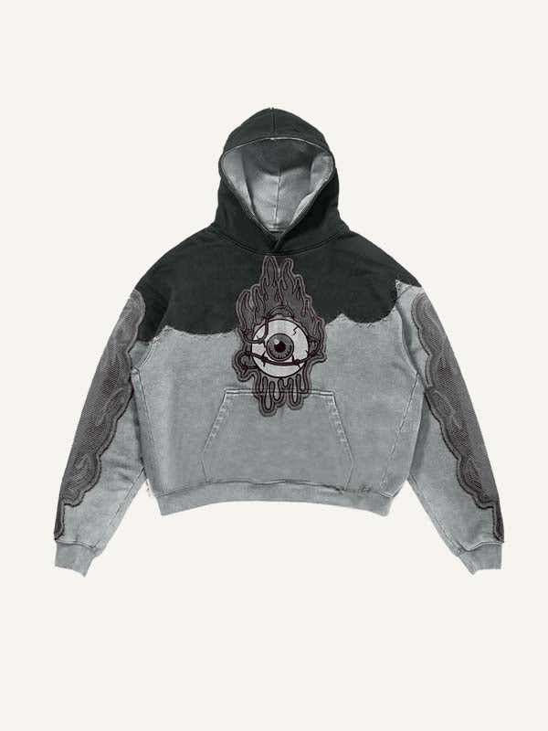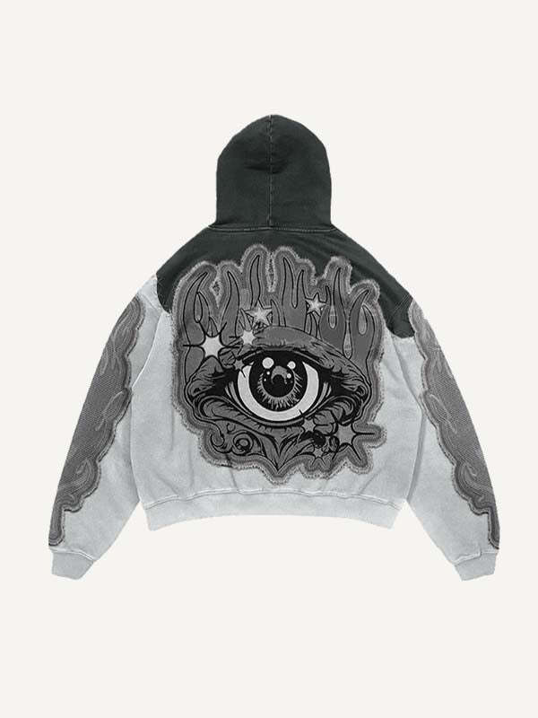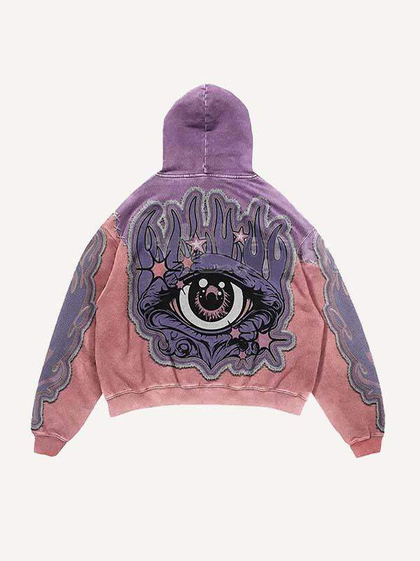 Colorblock Eye Faux Decal Print Slant Pockets Hoodie