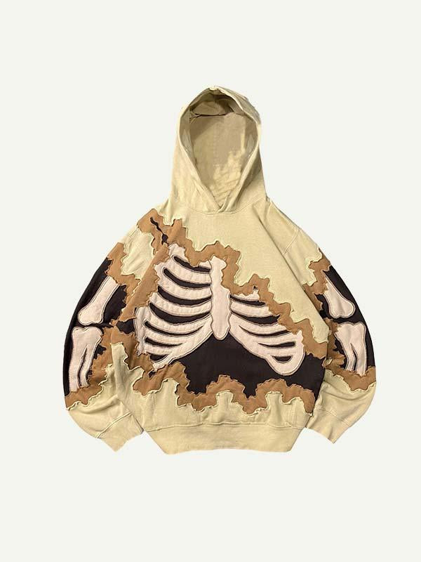 Colorblock Skeleton Faux Decal Print Slant Pockets Hoodie
