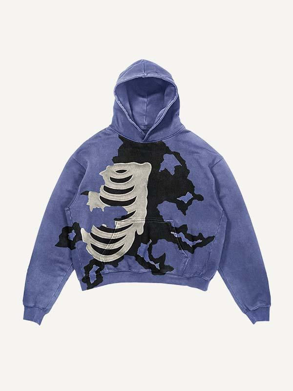 Colorblock Skeleton Print Slant Pockets Hoodie