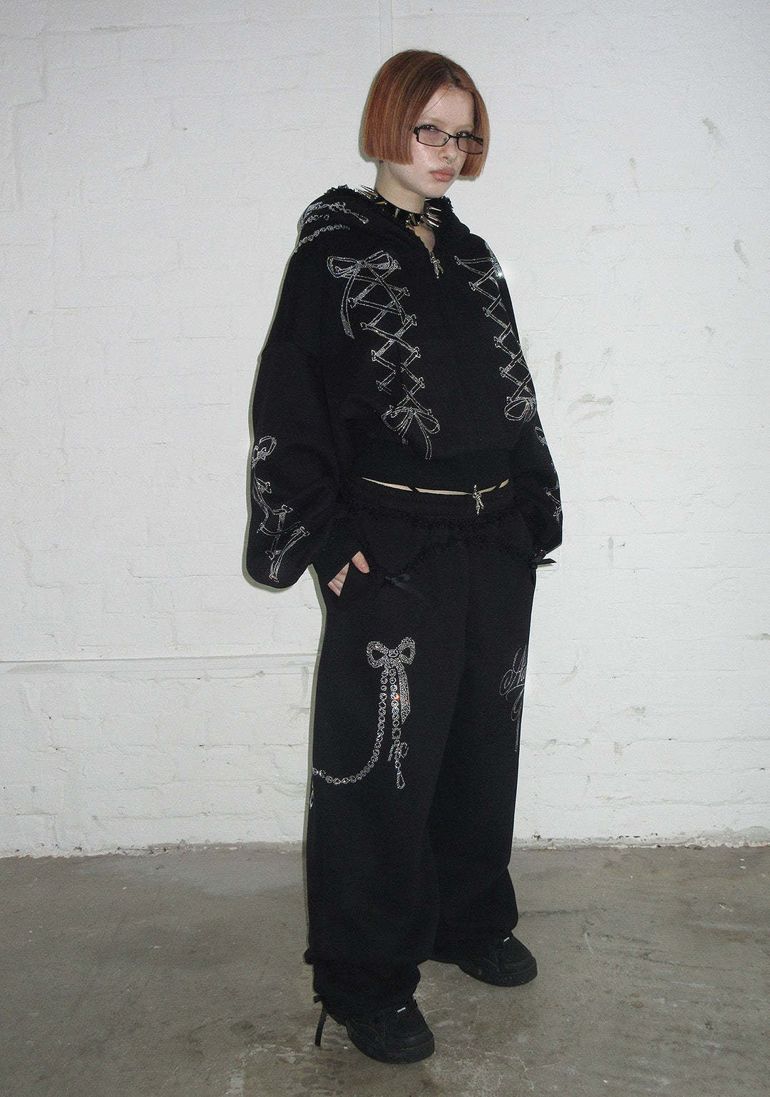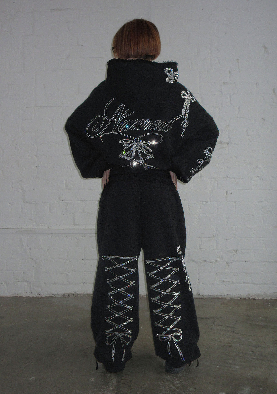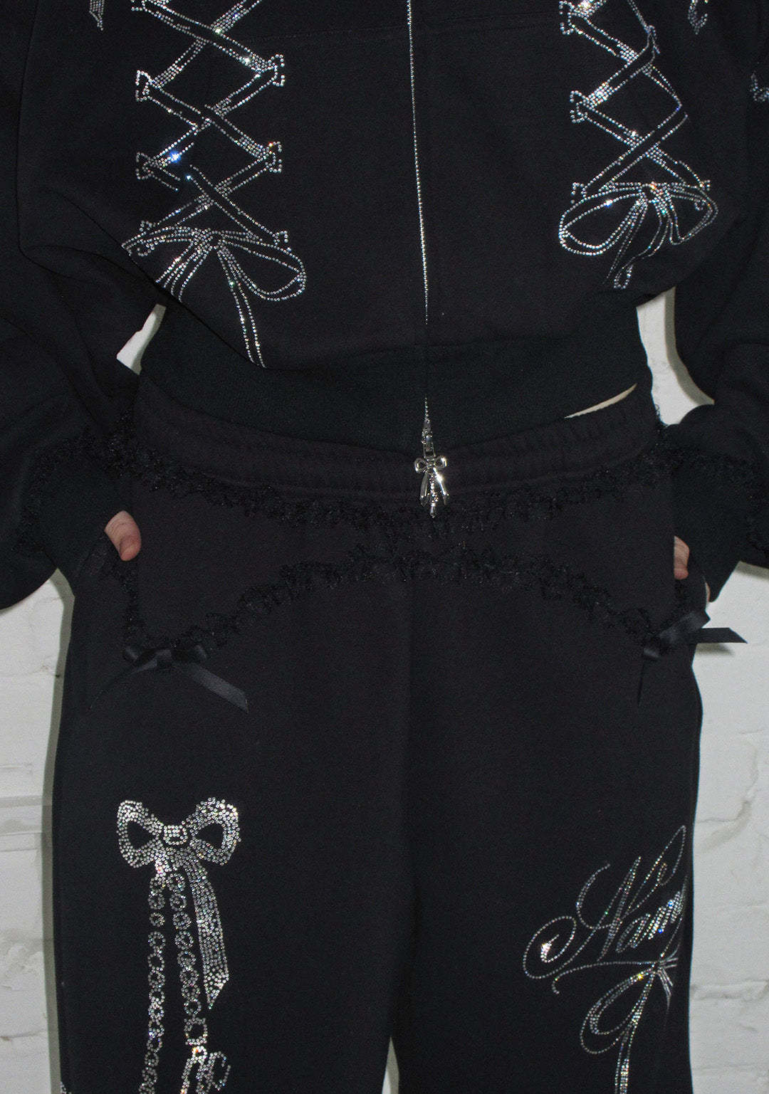 CONFESSIONS RHINESTONE OVERSIZED SWEATPANTS BLACK