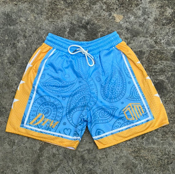 Contrast Color Paisley Print Mesh Pocket Shorts