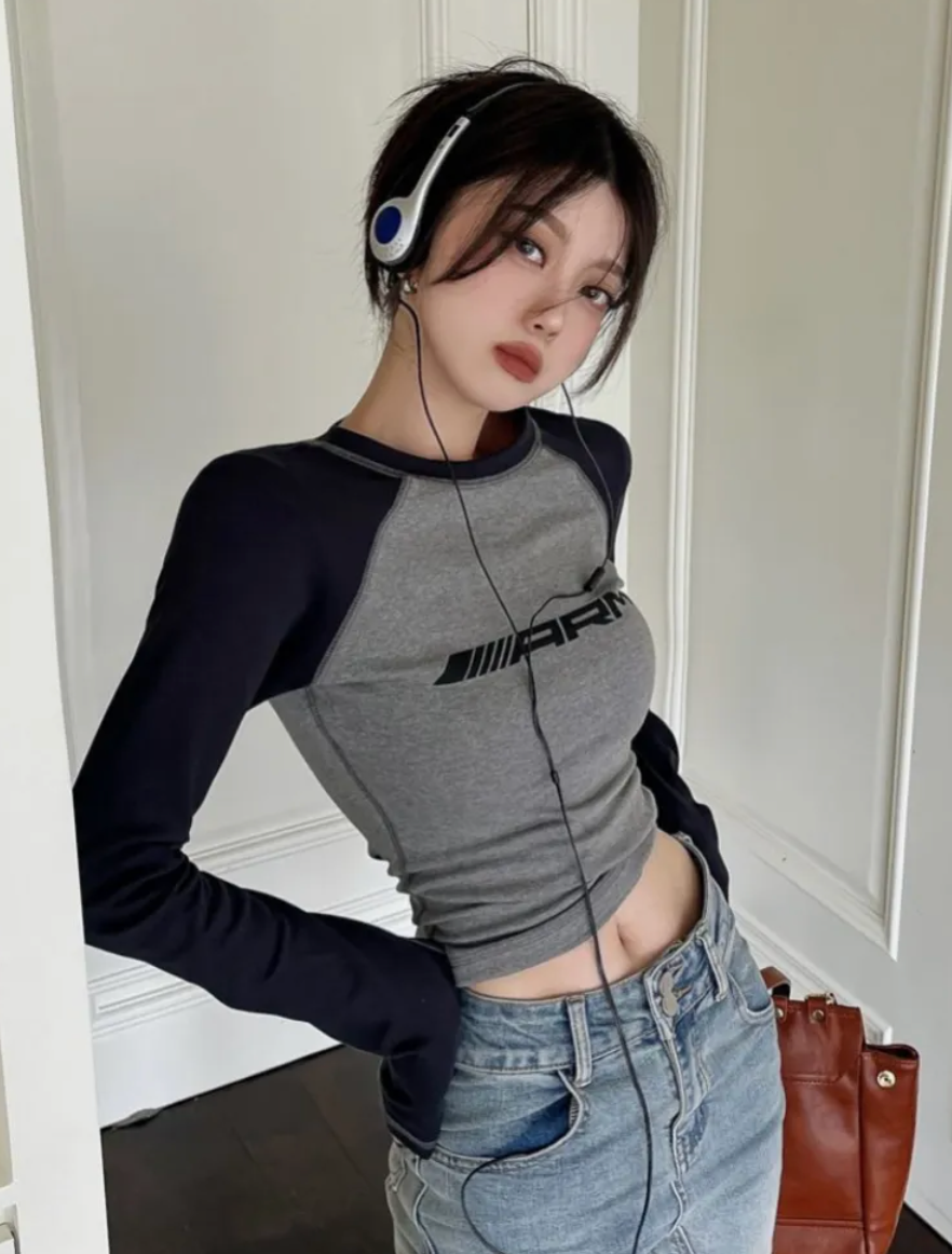 Contrast Color Slim Long Sleeve Tee