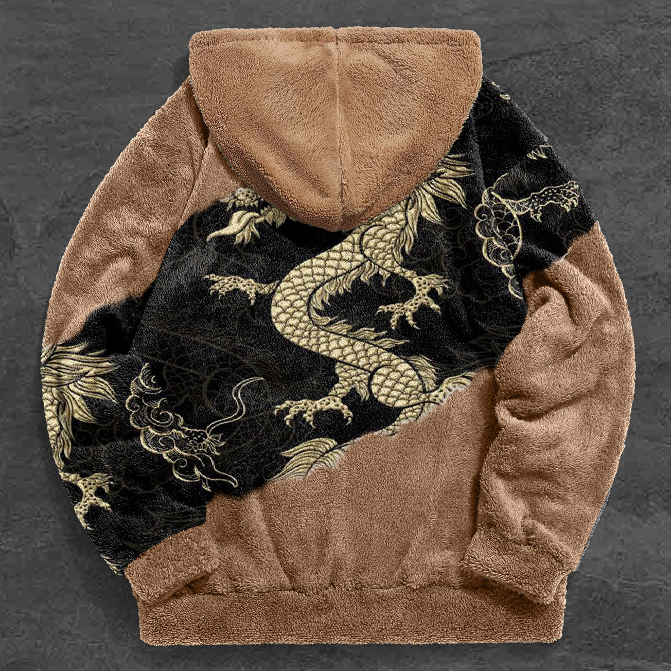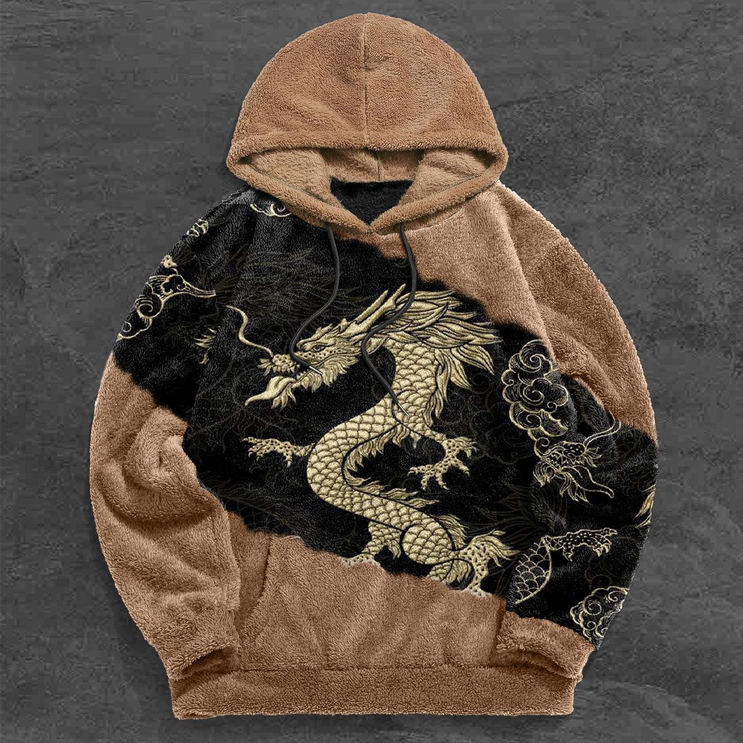 Contrast Fashion Dragon Print Vintage Plush Hoodies