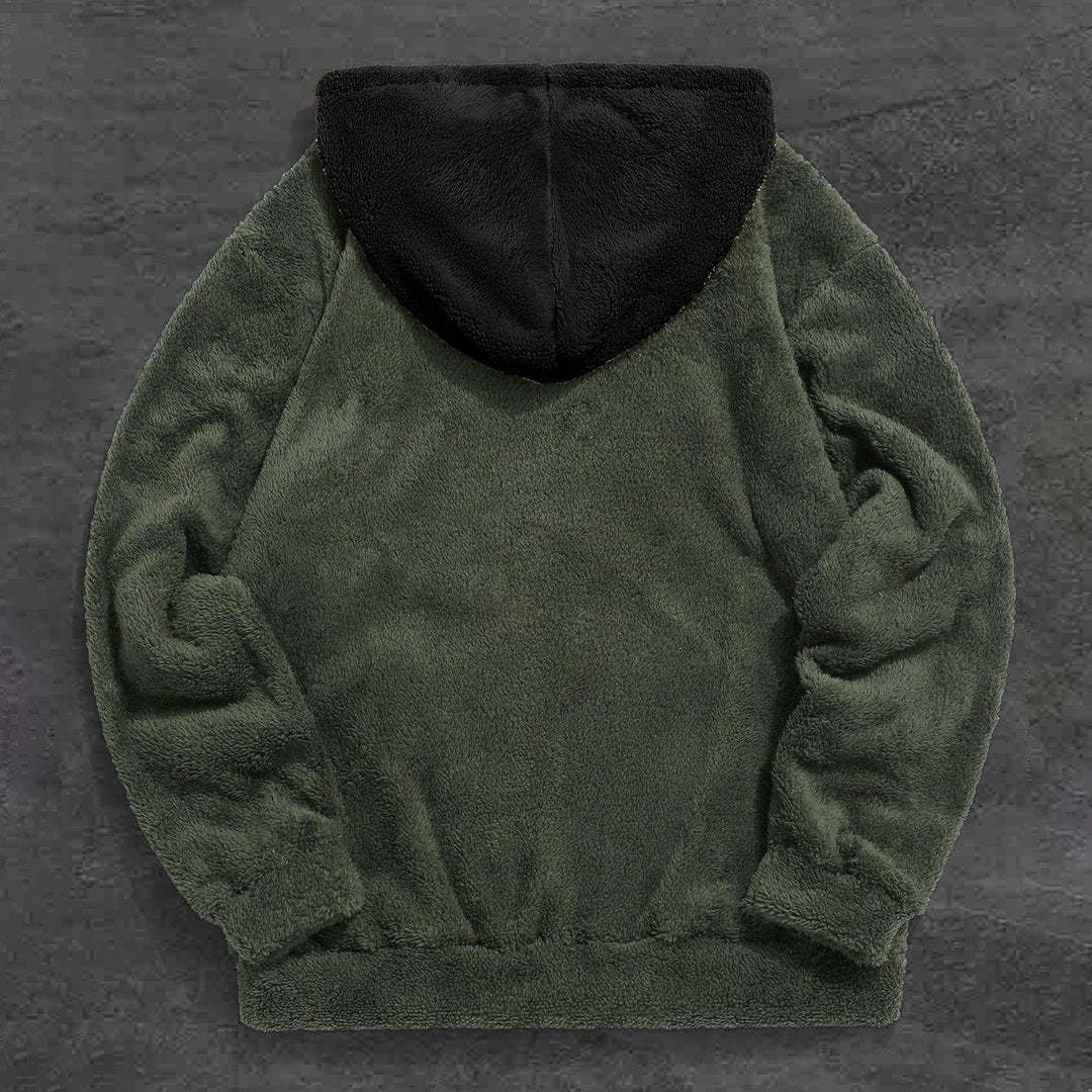 Contrast Patchwork Print Chic Plush Hoodie