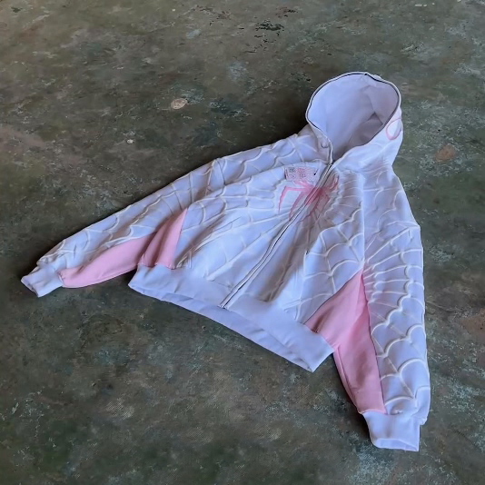 Contrast spider print zip-up hoodie