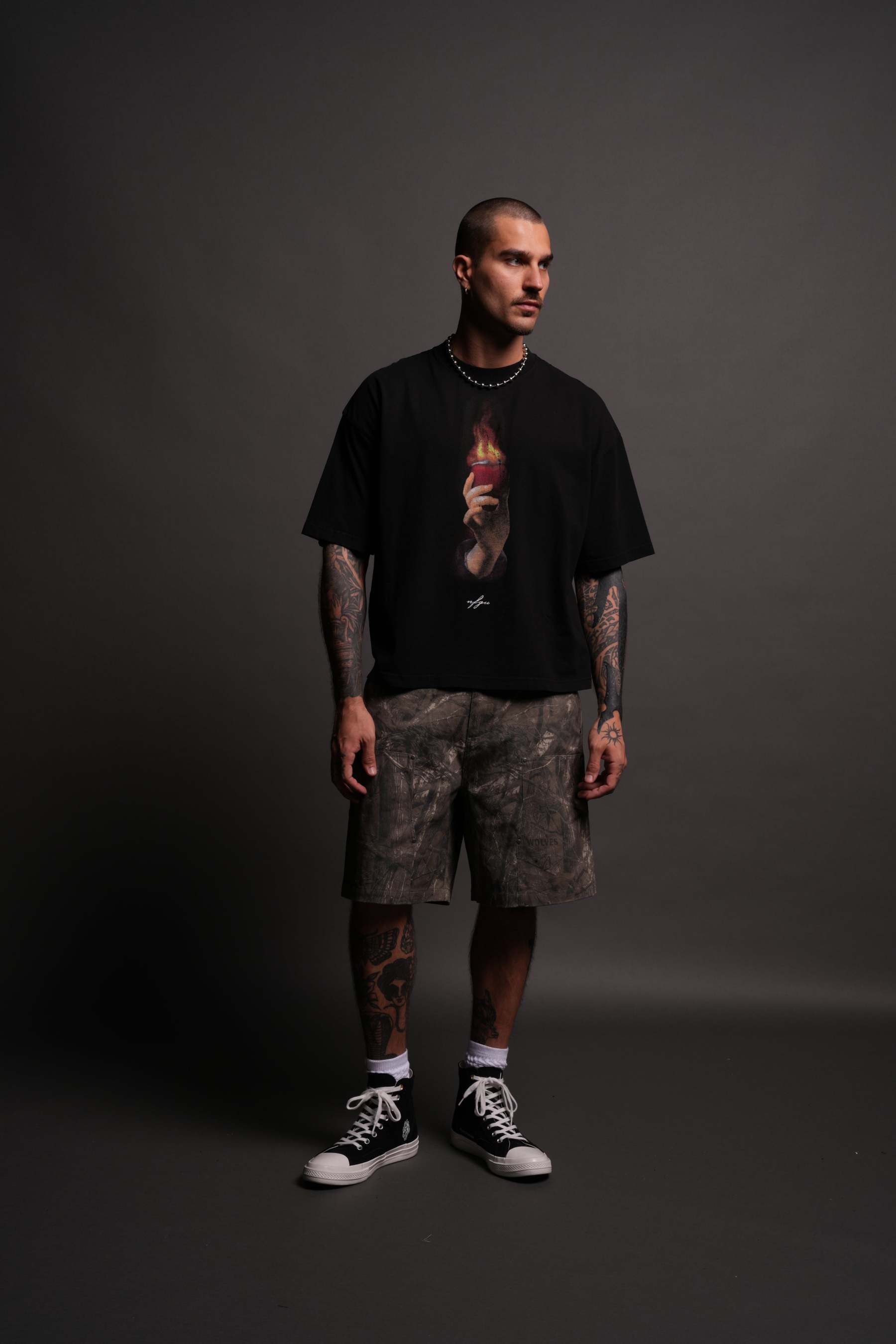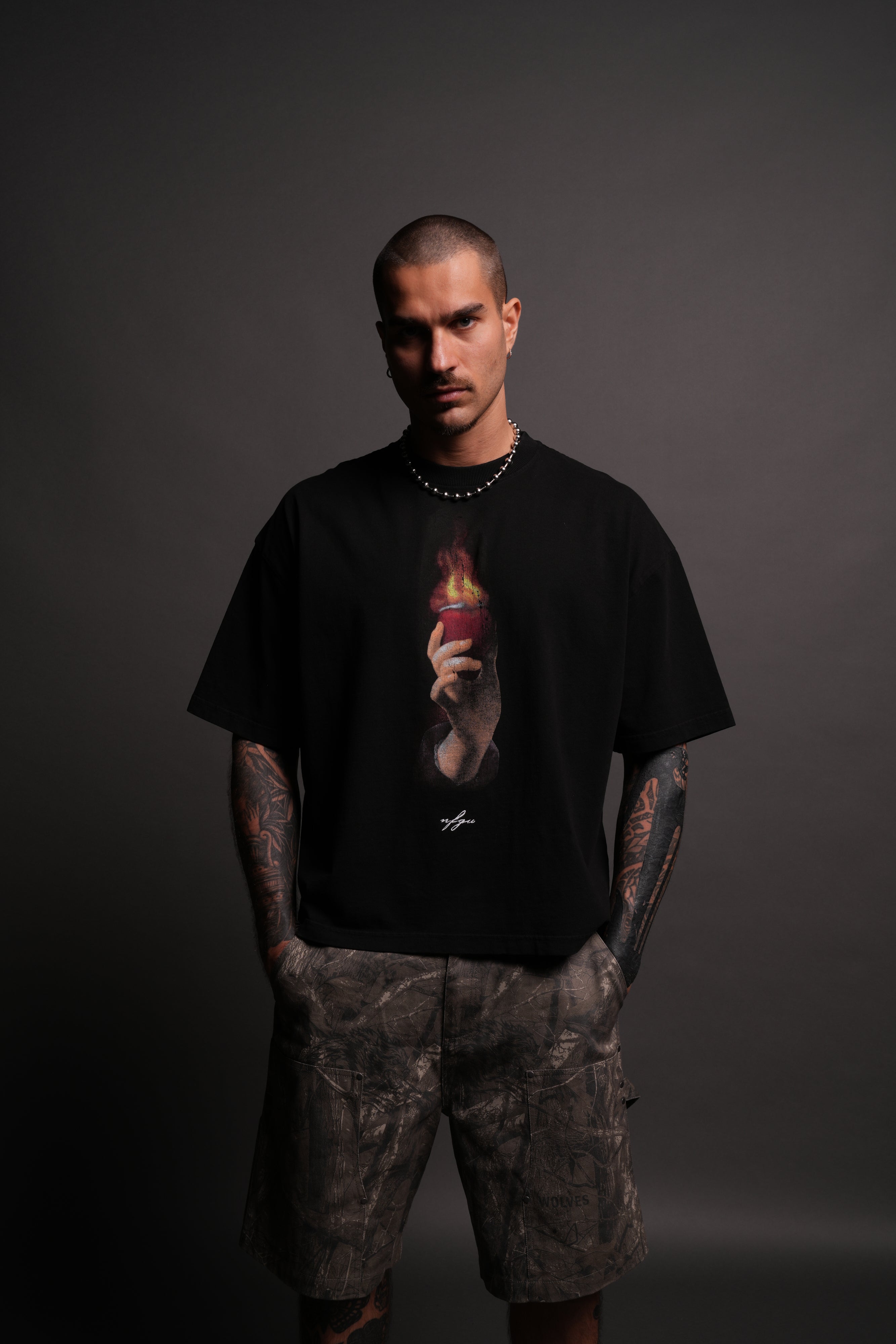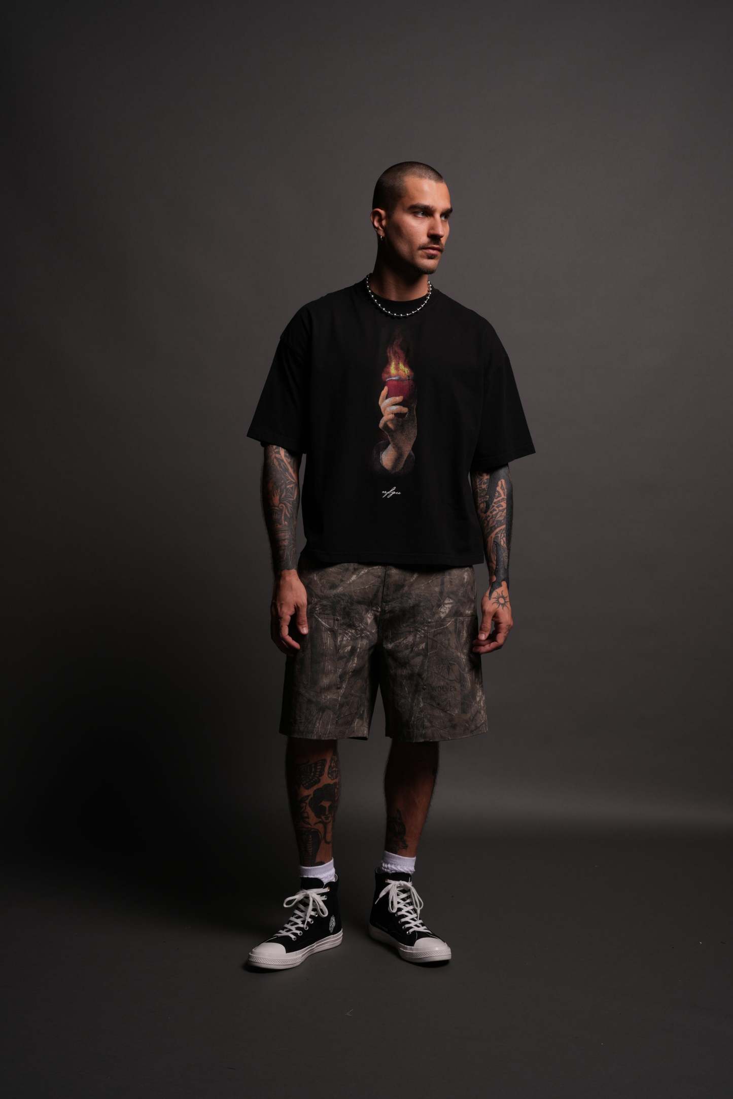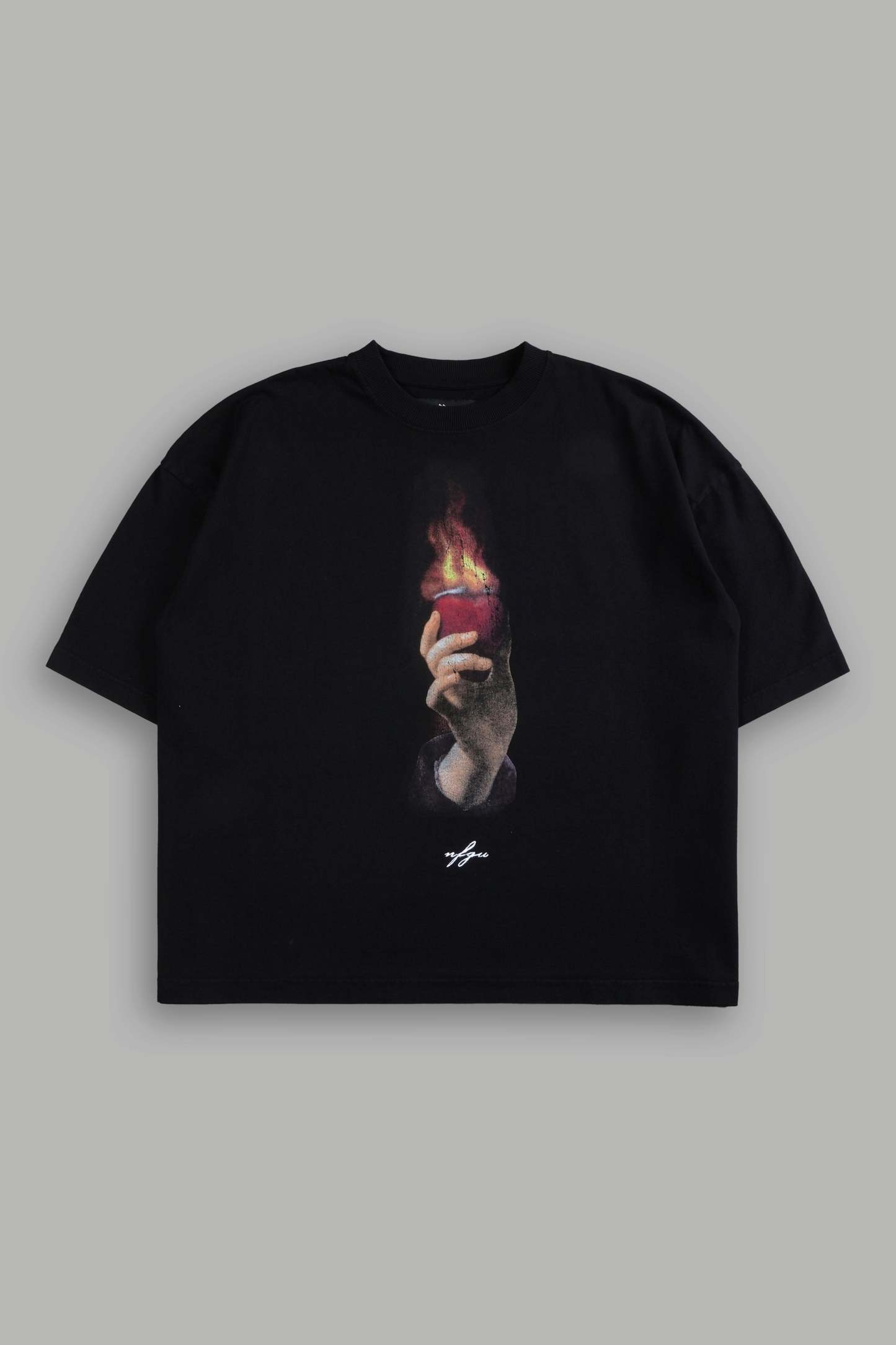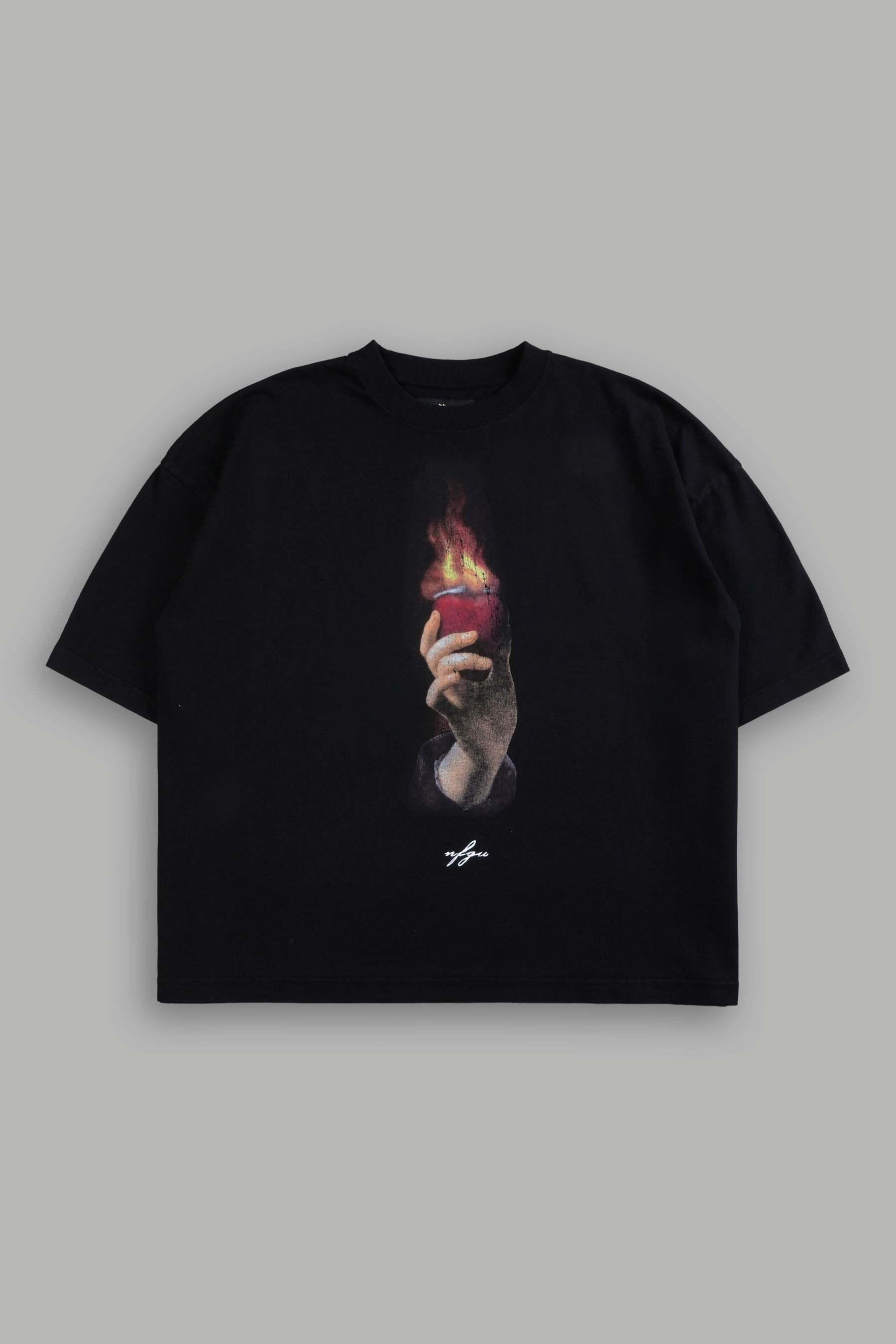 Corazon Sagrado Grunge "Box Cut" Tee in Black