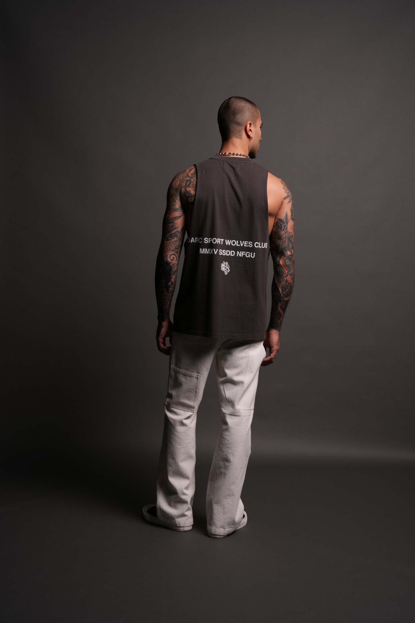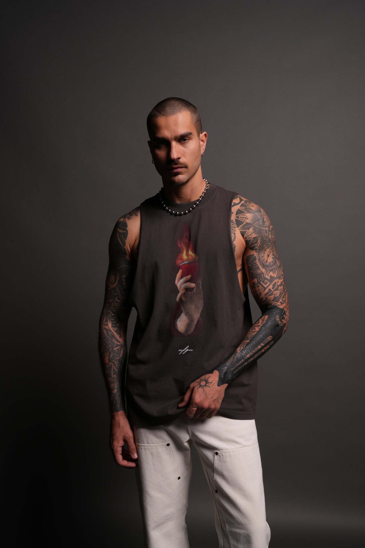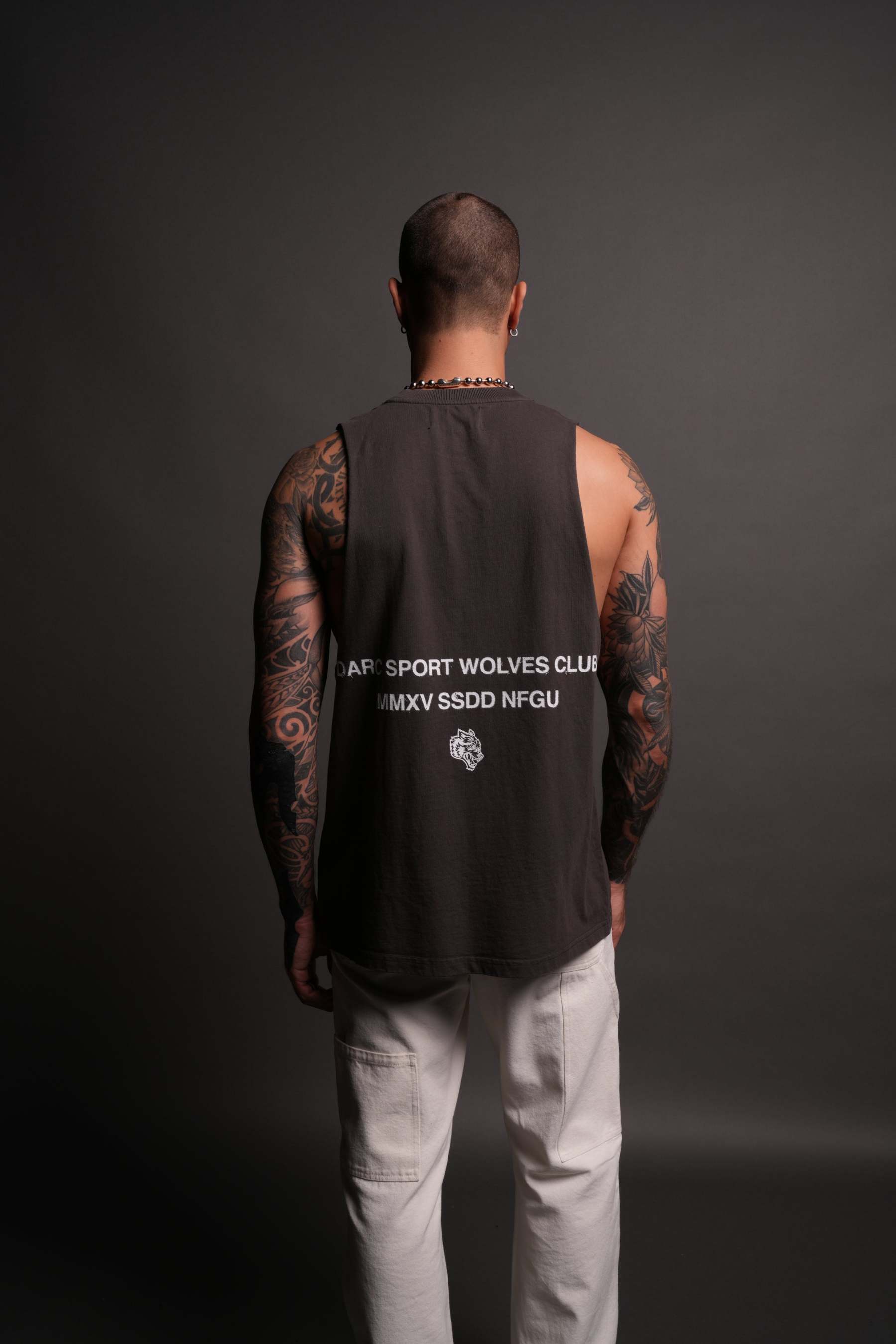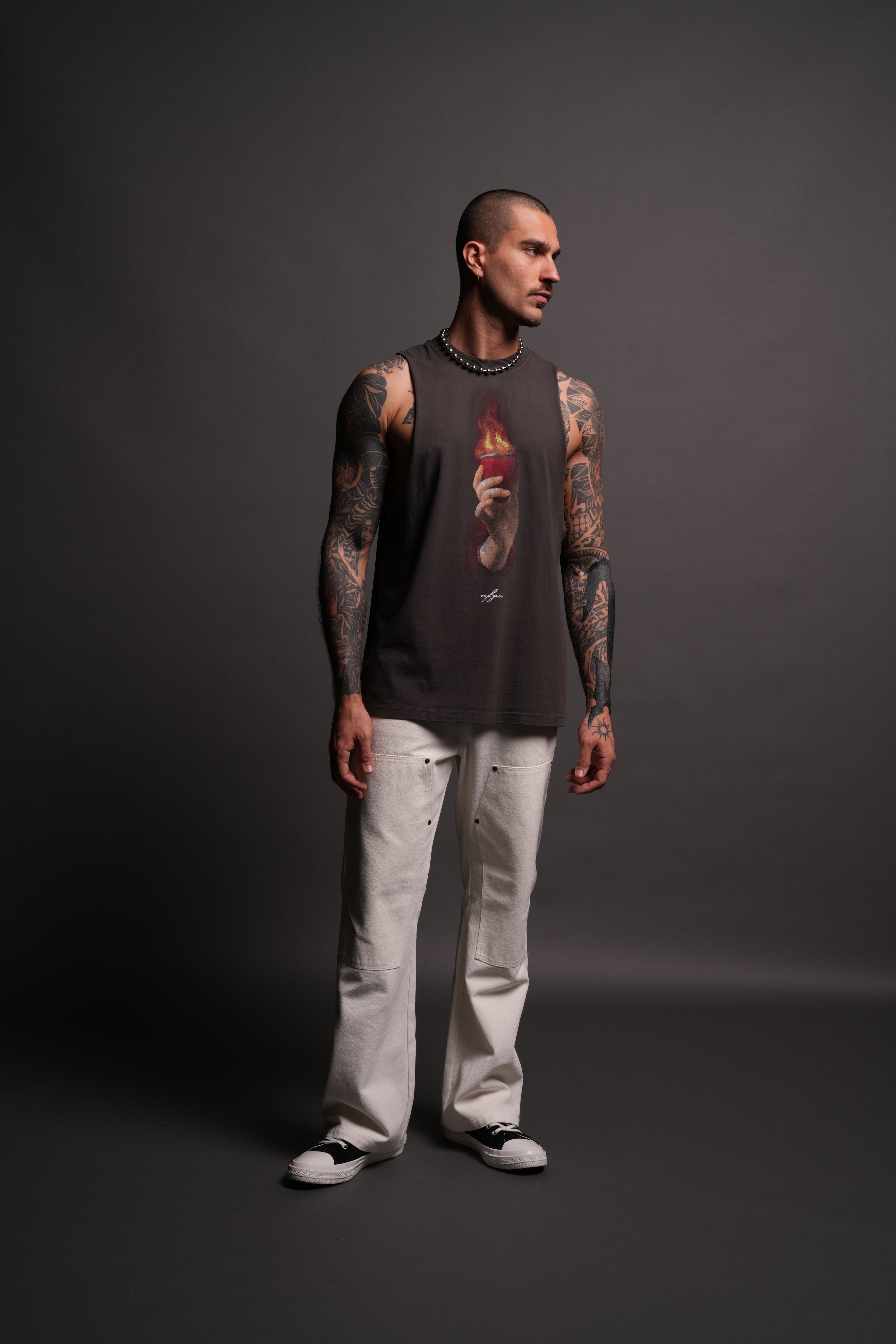 Corazon Sagrado Grunge "Tommy" Muscle Tee in Wolf Gray
