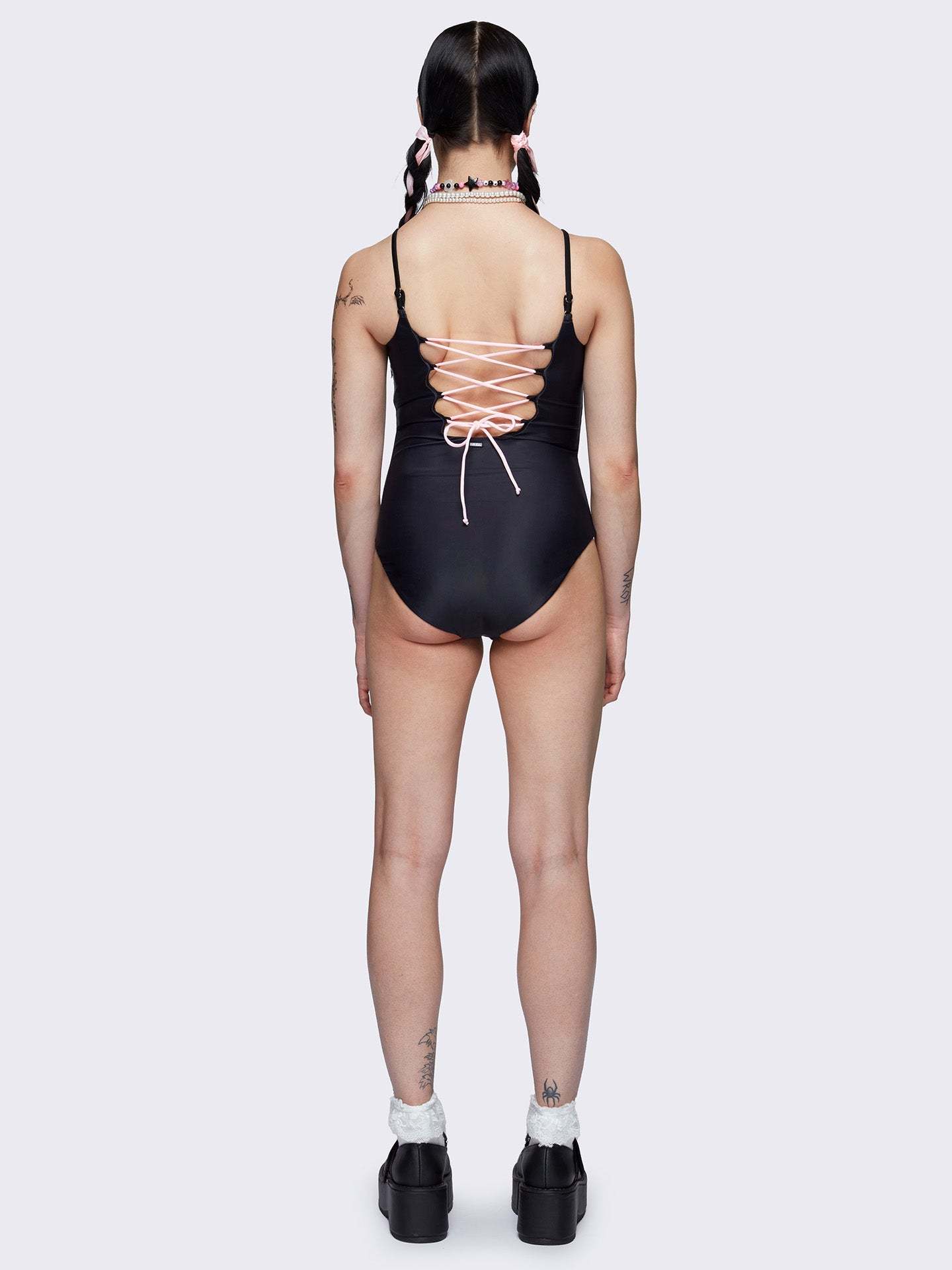 Corsage Cuteness Lace-Up Swimsuit