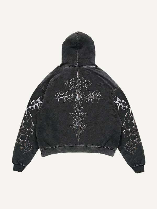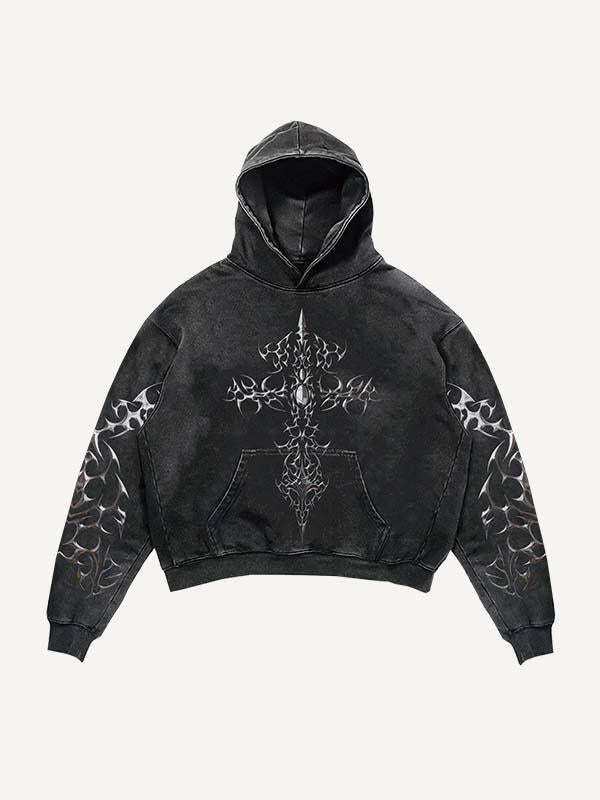 Cross&Graphic Print Slant Pockets Hoodie