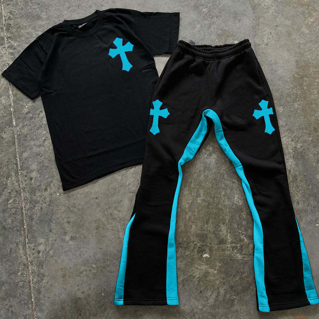 Cross Print T-Shirt Trousers Two-Piece Set