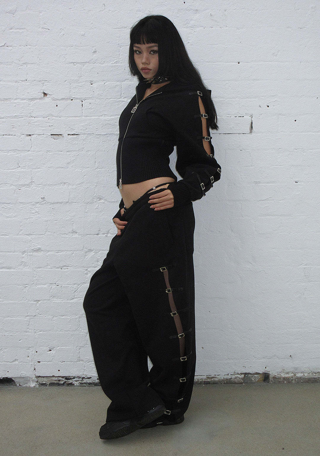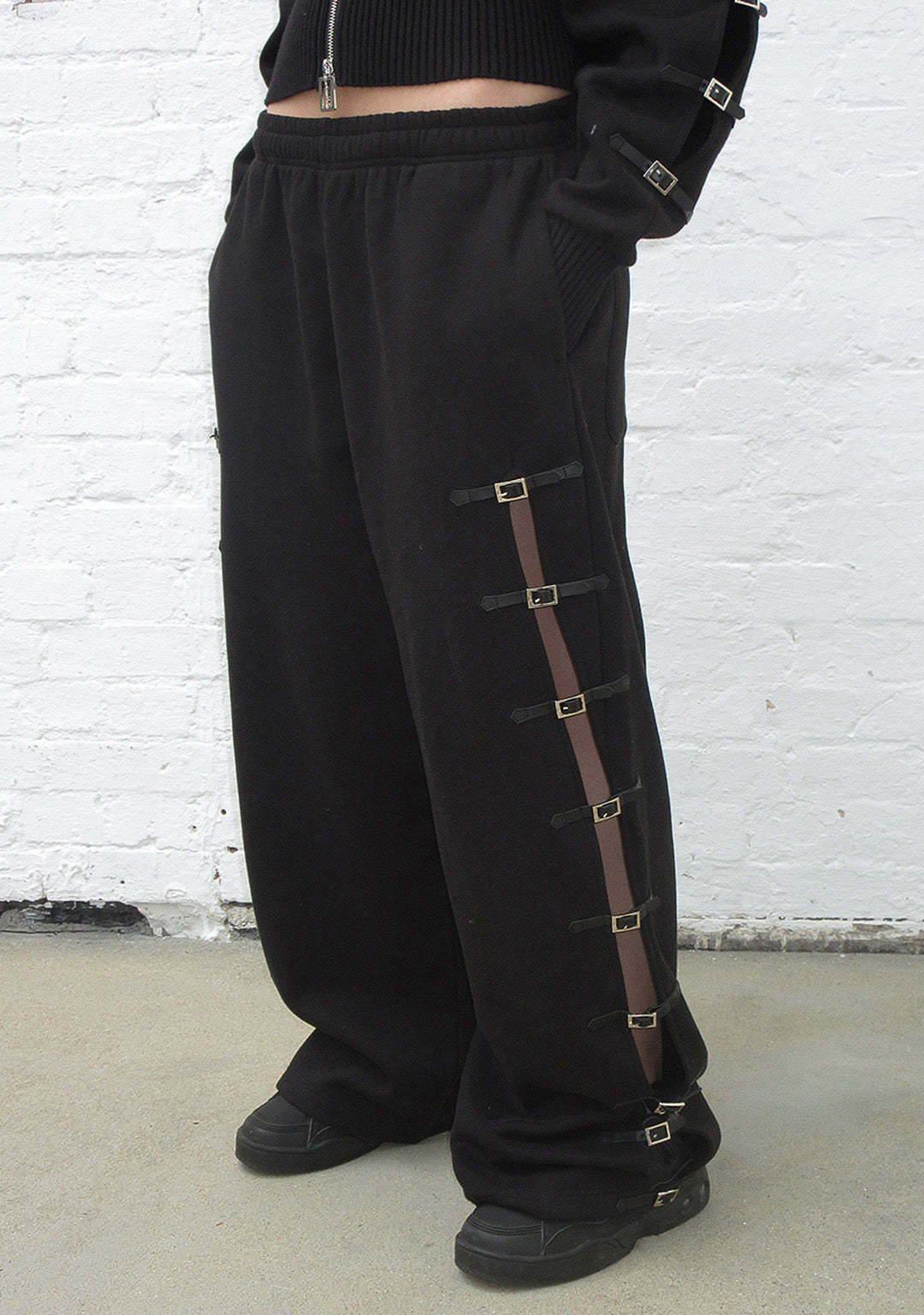 CRUSH BUCKLE OVERSIZED SWEATPANTS BLACK