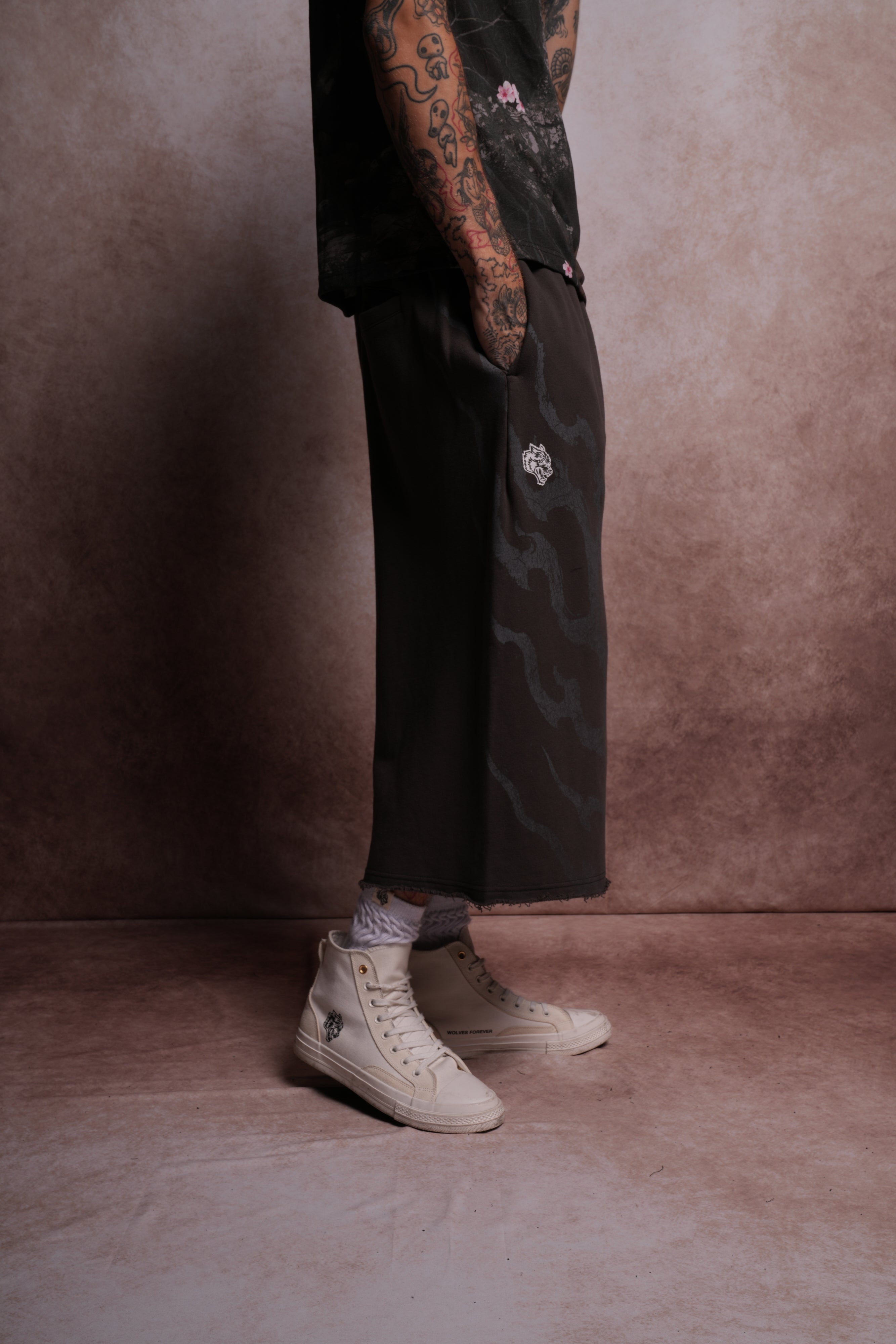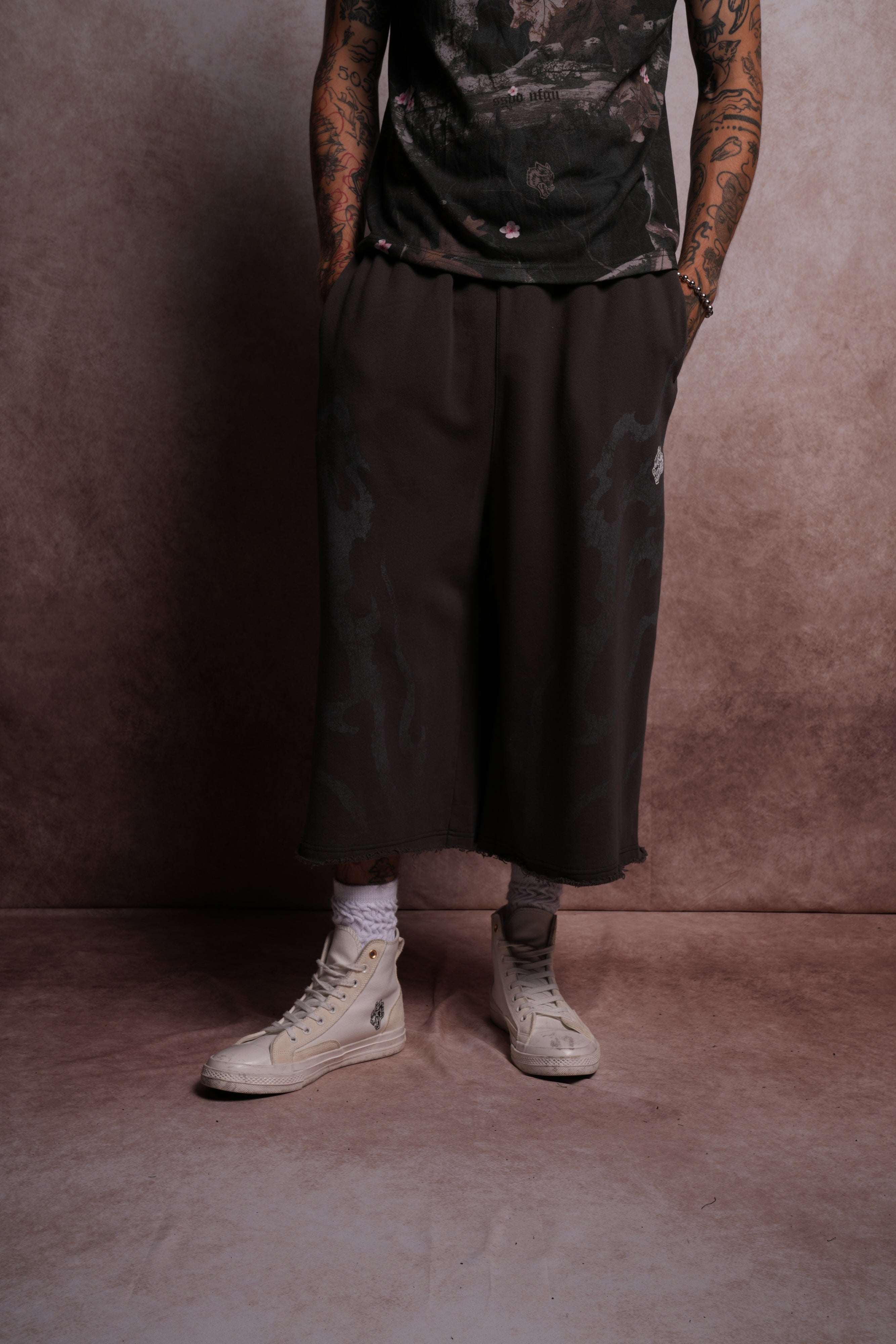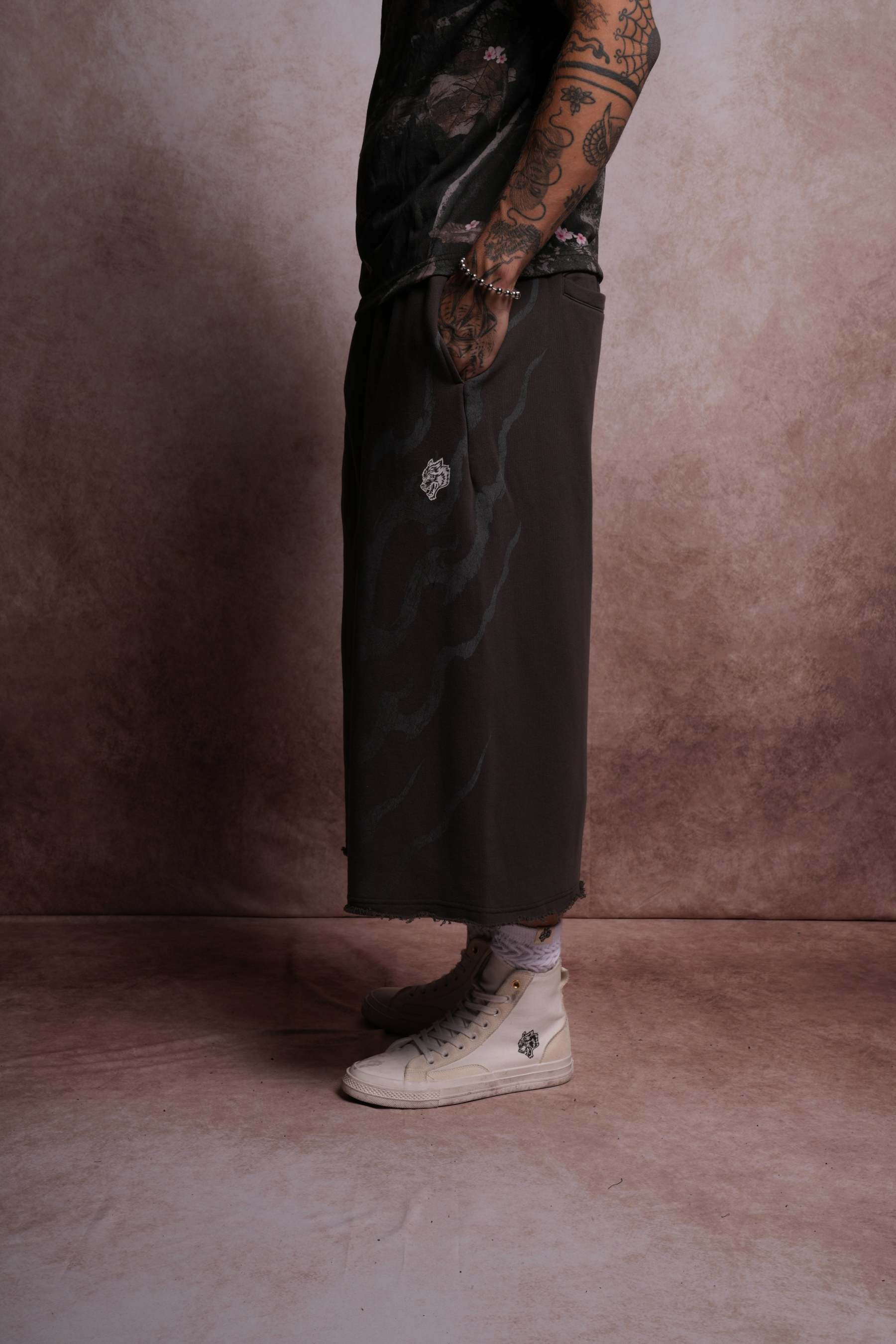 Darc Infernal Oversized Omen Cropped Sweat Pants in Wolf Gray