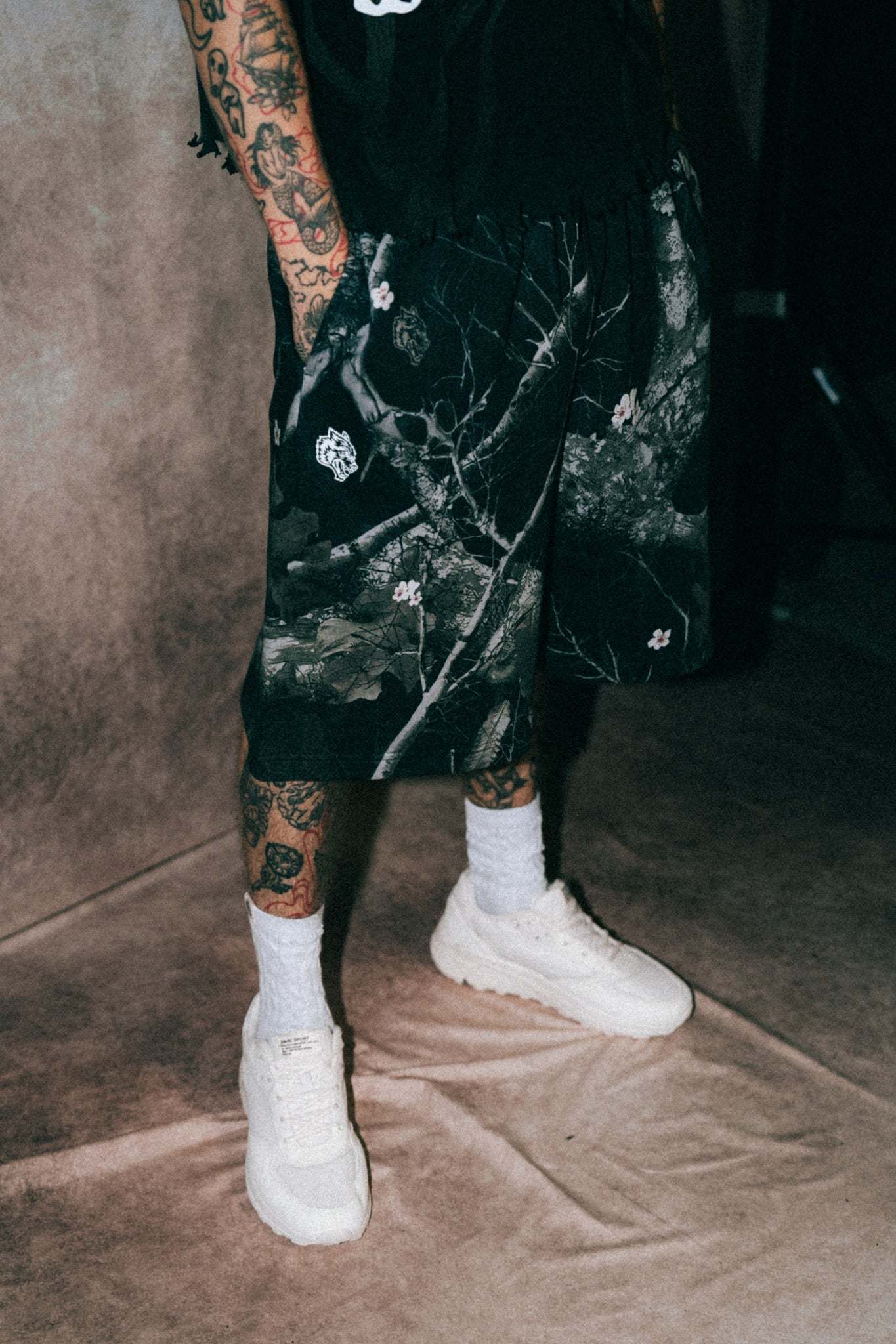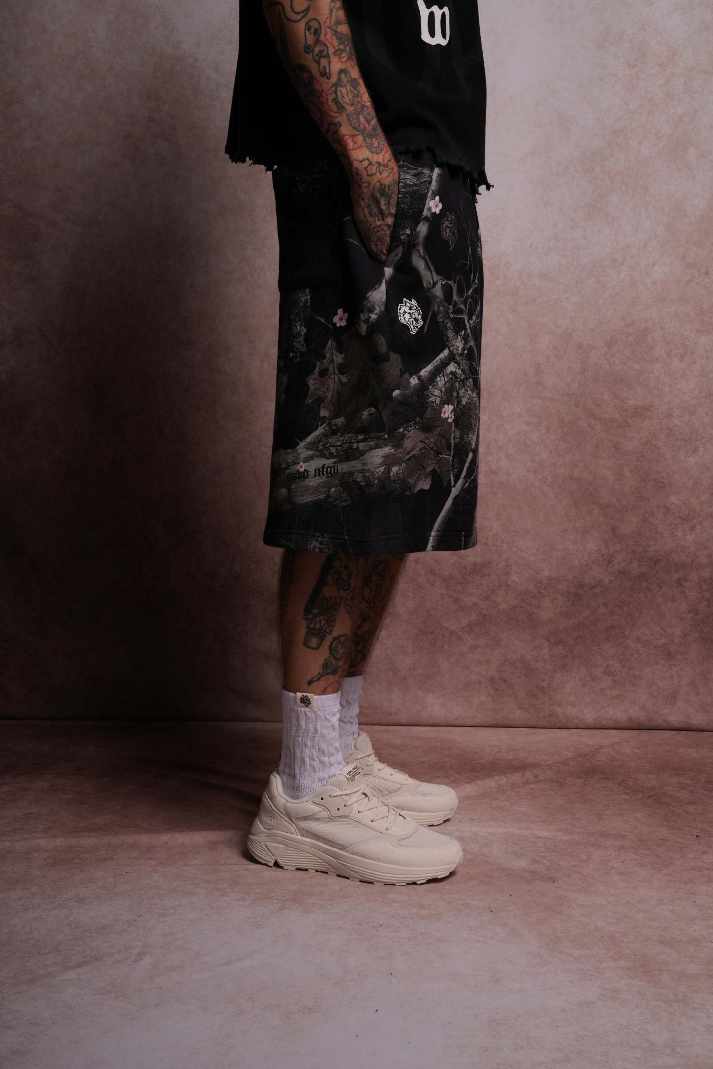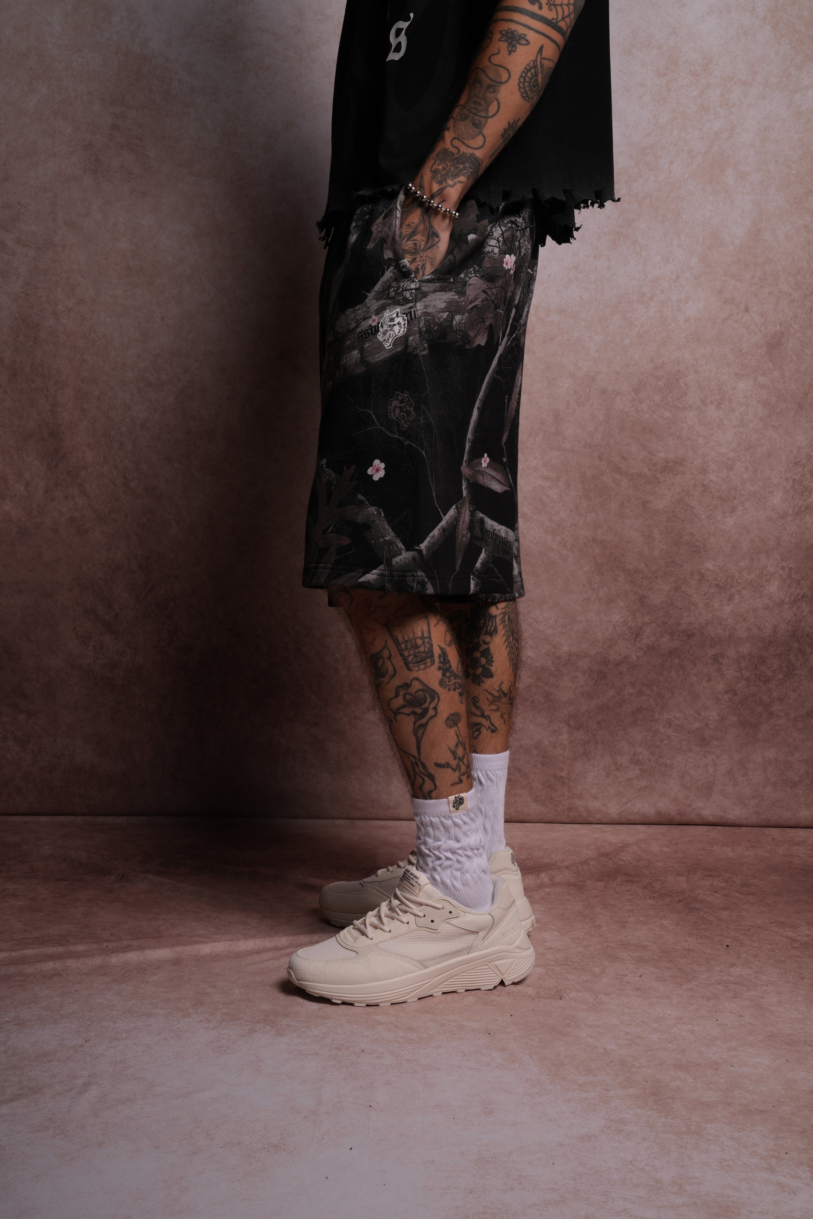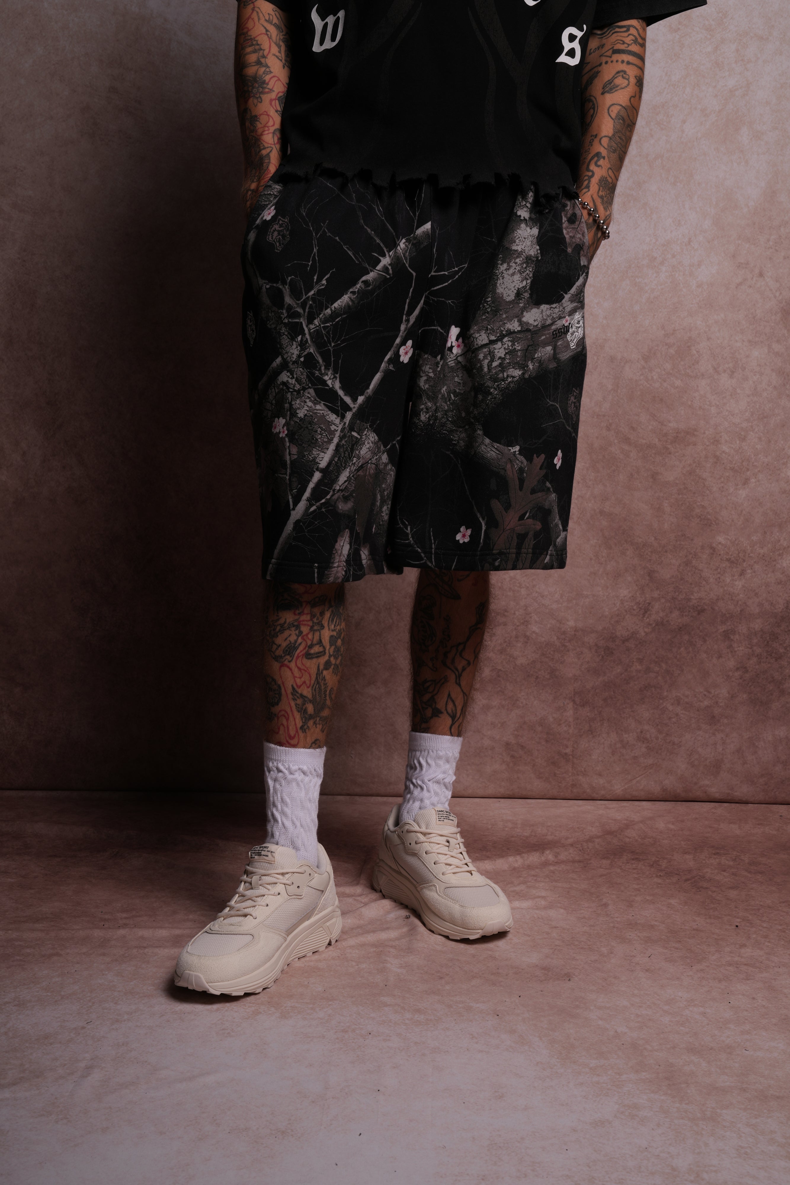 Darc Infernal Oversized Osiris Sweat Shorts in Darc Blossom Woodland Camo