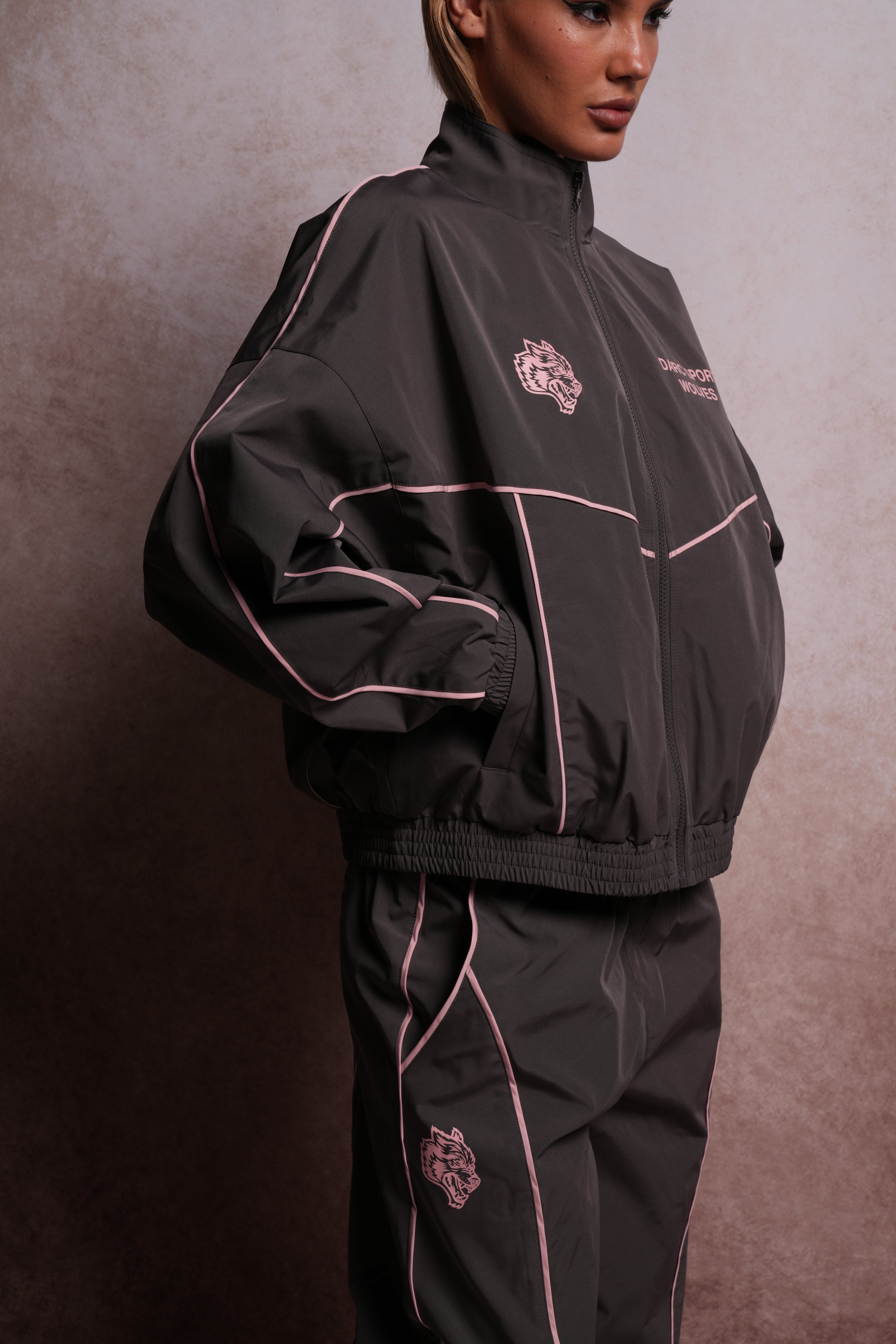 Darc Sport Wolves Quinn Track Jacket in Wolf Gray/Cherry Blossom