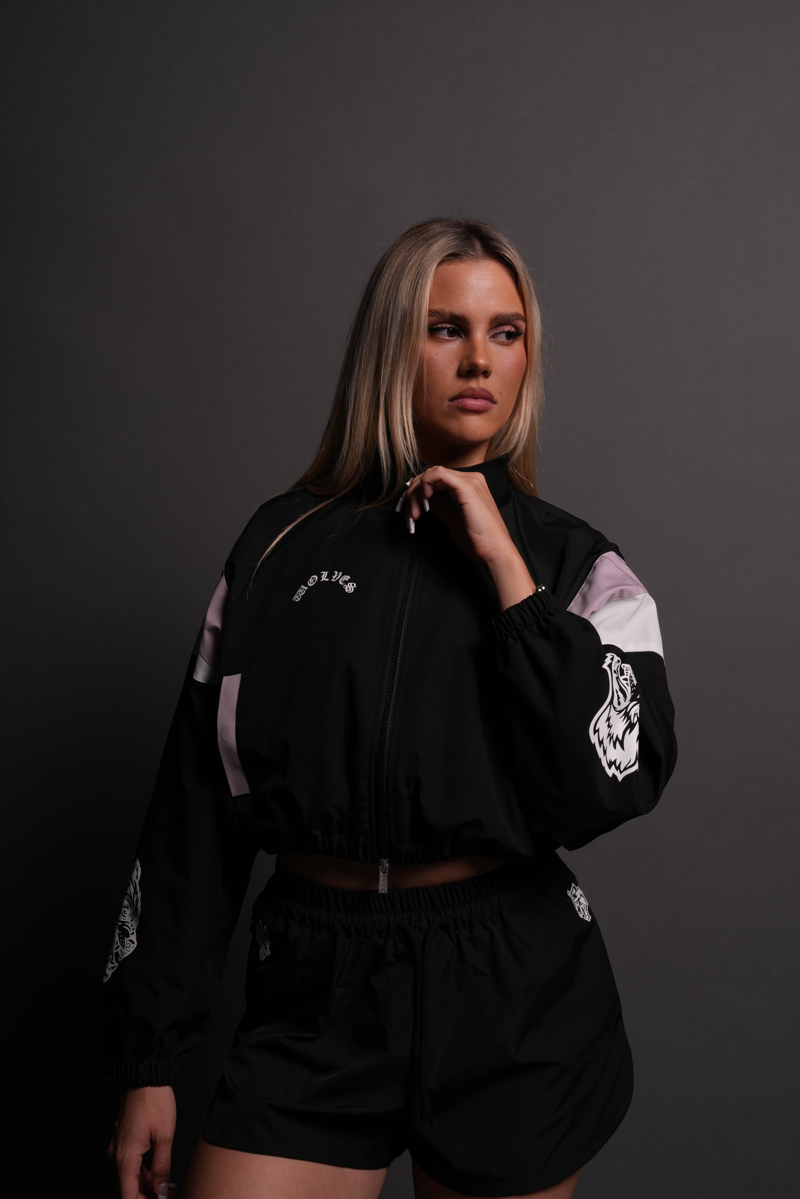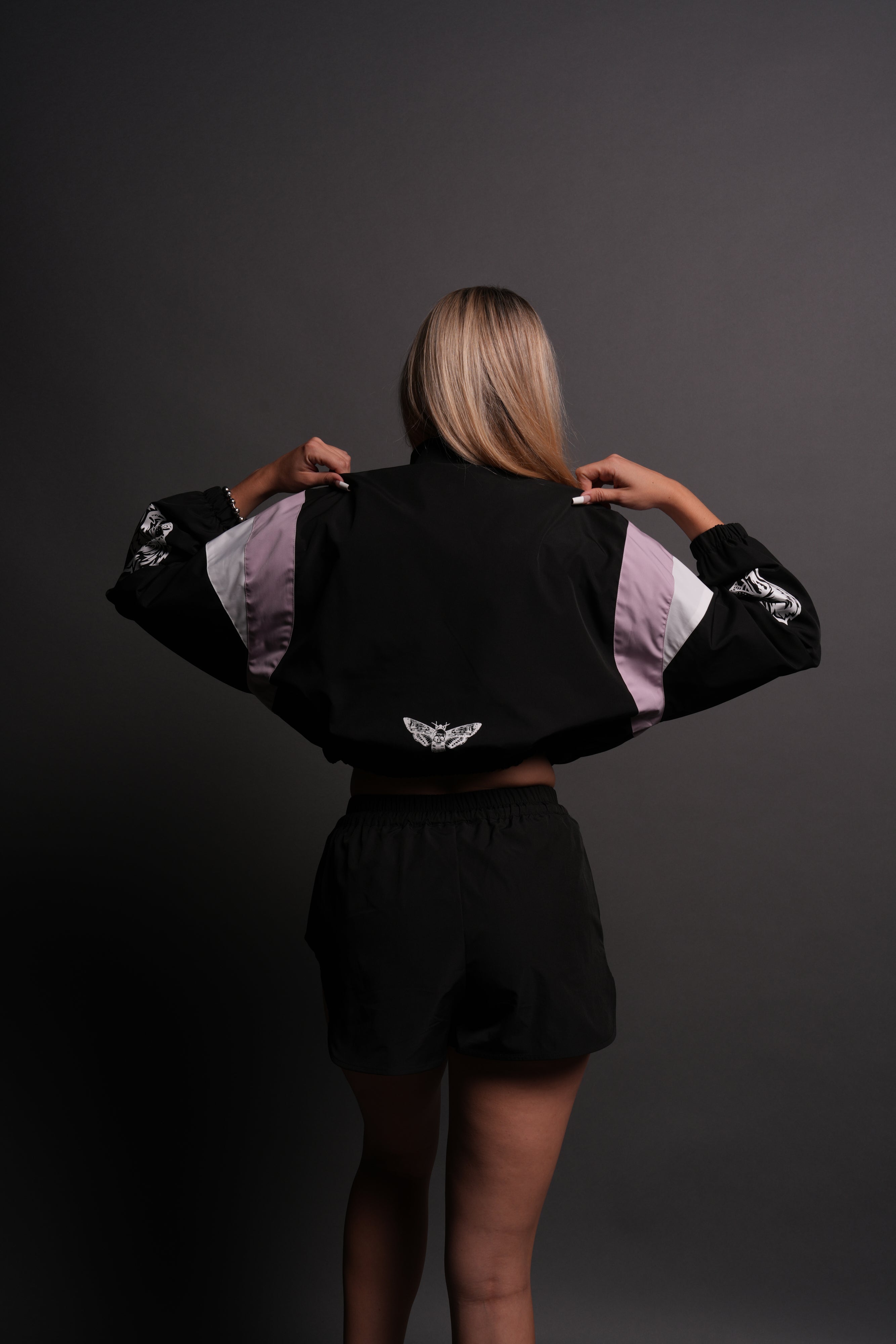 Death Becomes Her Nadia Track Jacket in Black/Purple Smoke/White