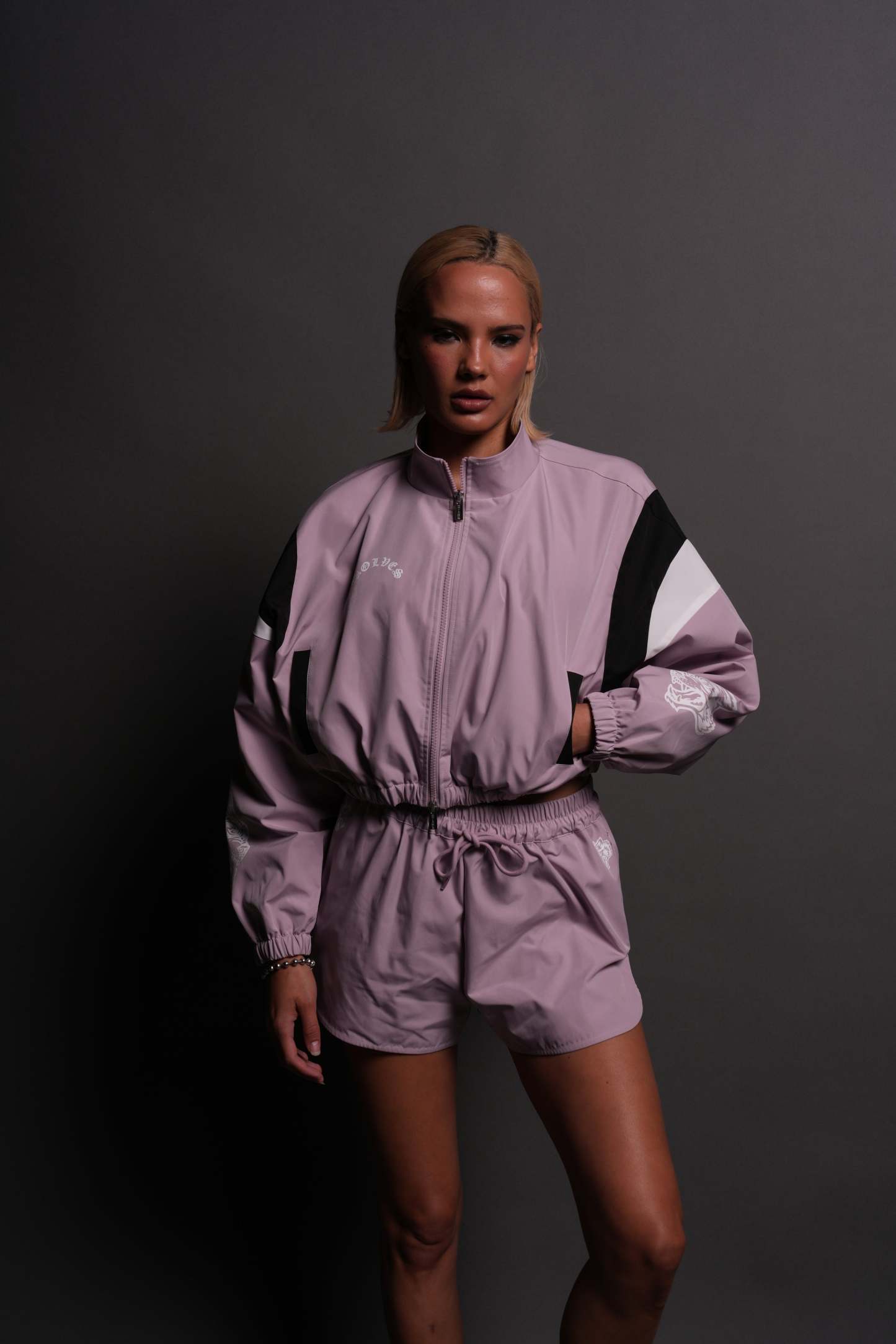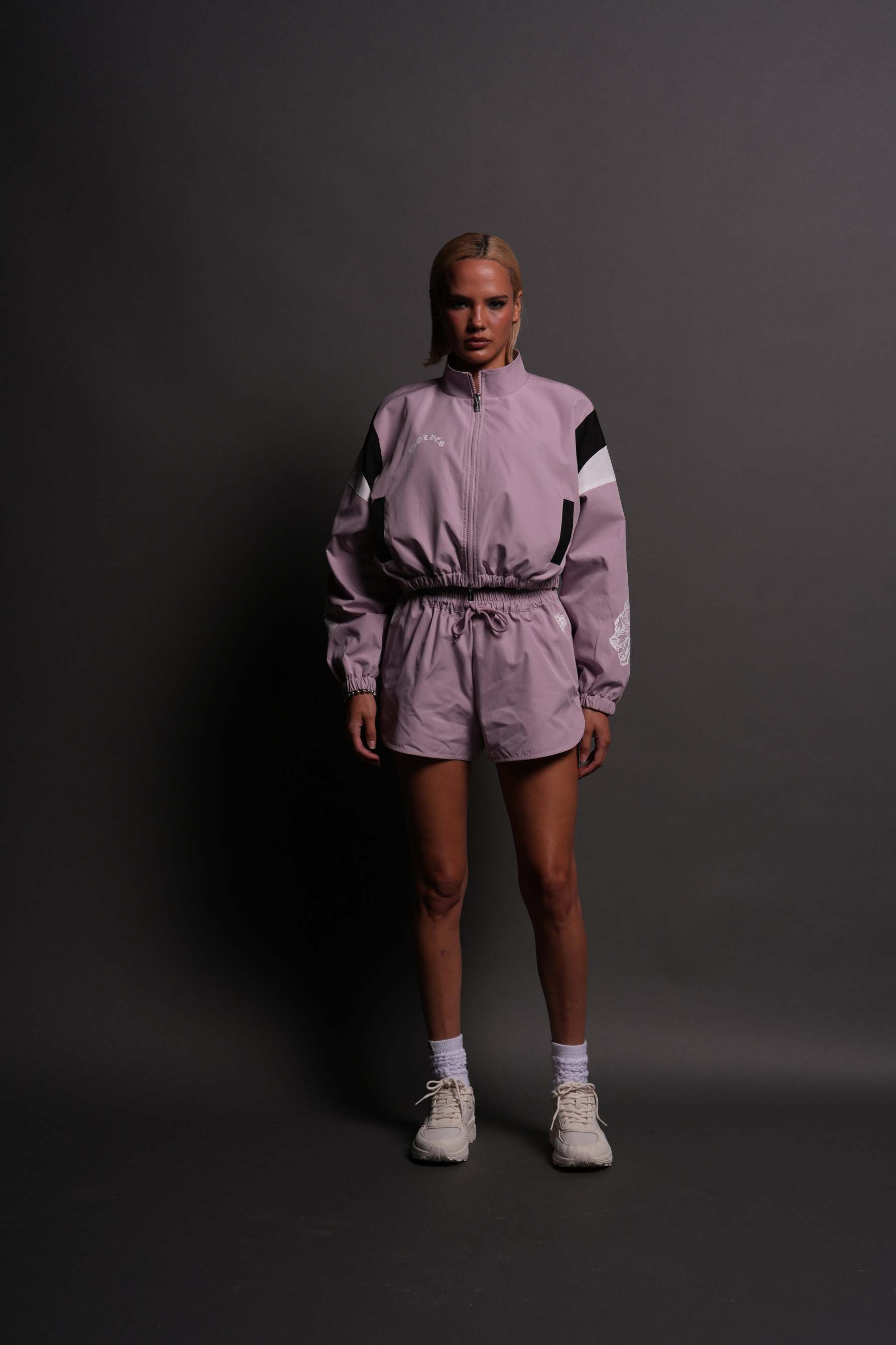Death Becomes Her Nadia Track Jacket in Purple Smoke/Black/White