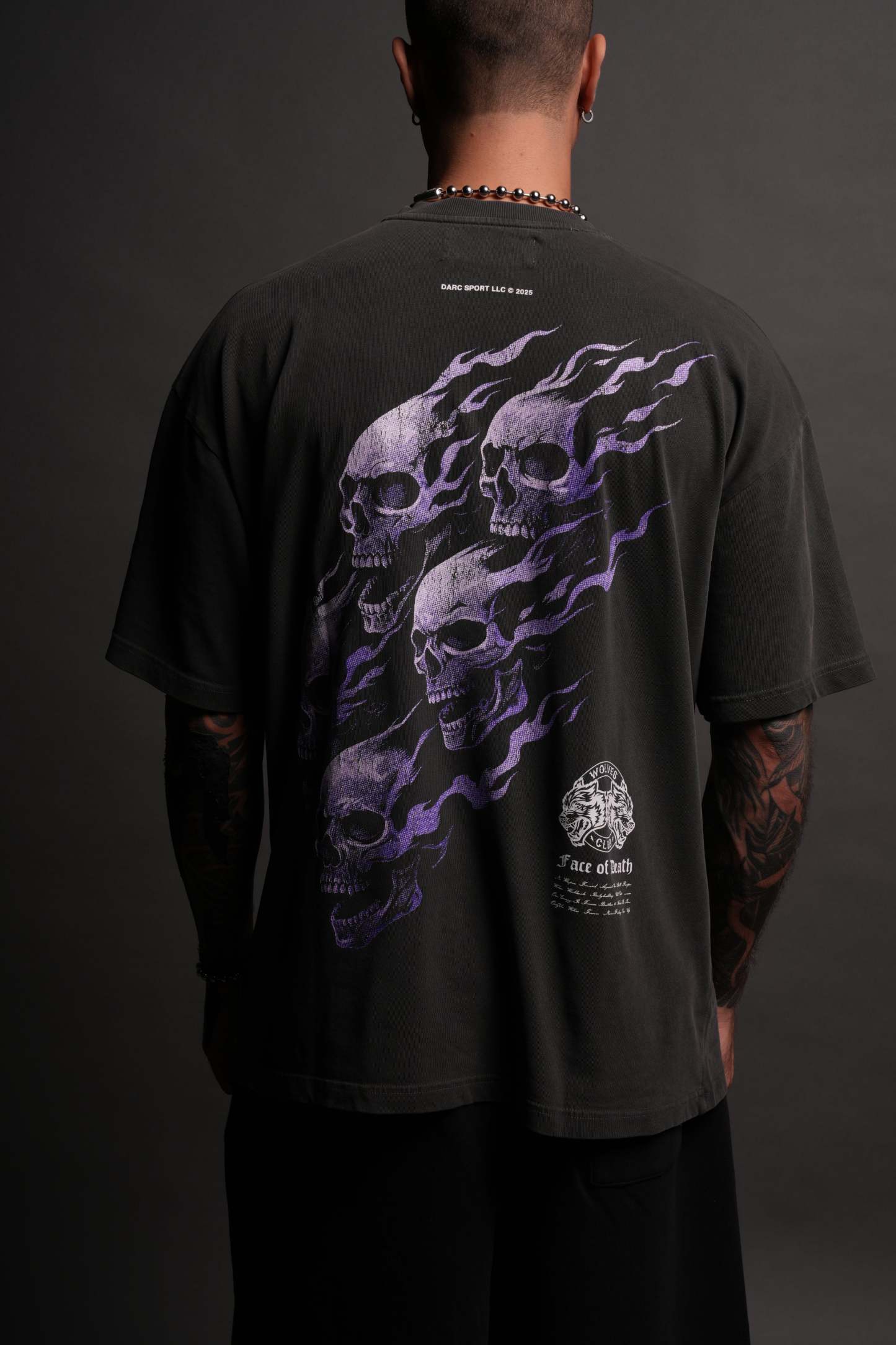 Death Face "Premium" Oversized Tee in Wolf Gray