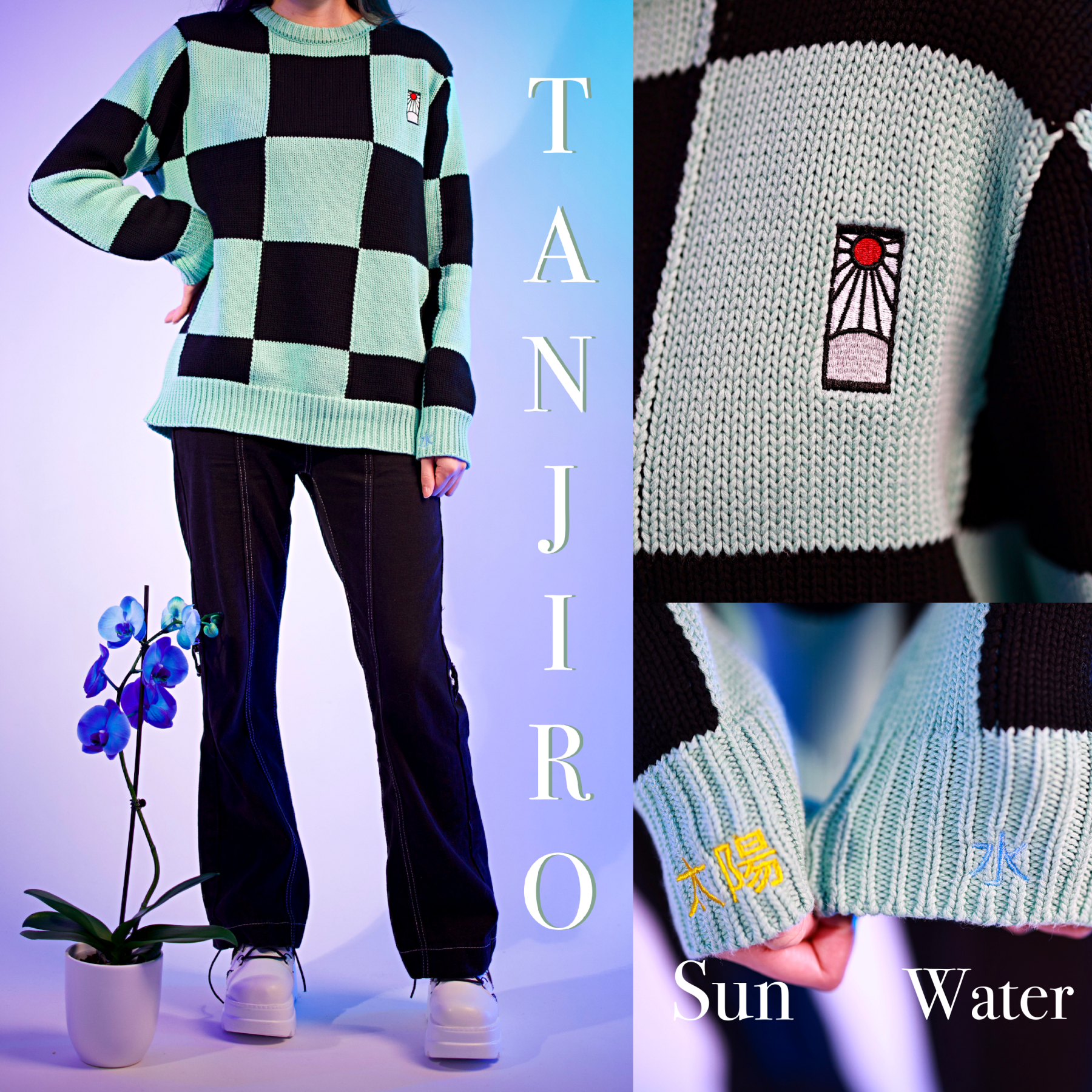 These cardigans are made from the highest quality 100% cotton yarns and feature very special design elements inspired by the favorite Demon Slayer characters. Each design does not only feature jacquard knitted patterns but also luxurious embroidered elements & custom rust free buttons. The sweaters are some of the most special items we ever made because they are made with the intarsia knitting technique that is creating the hand-crochet look and feel.