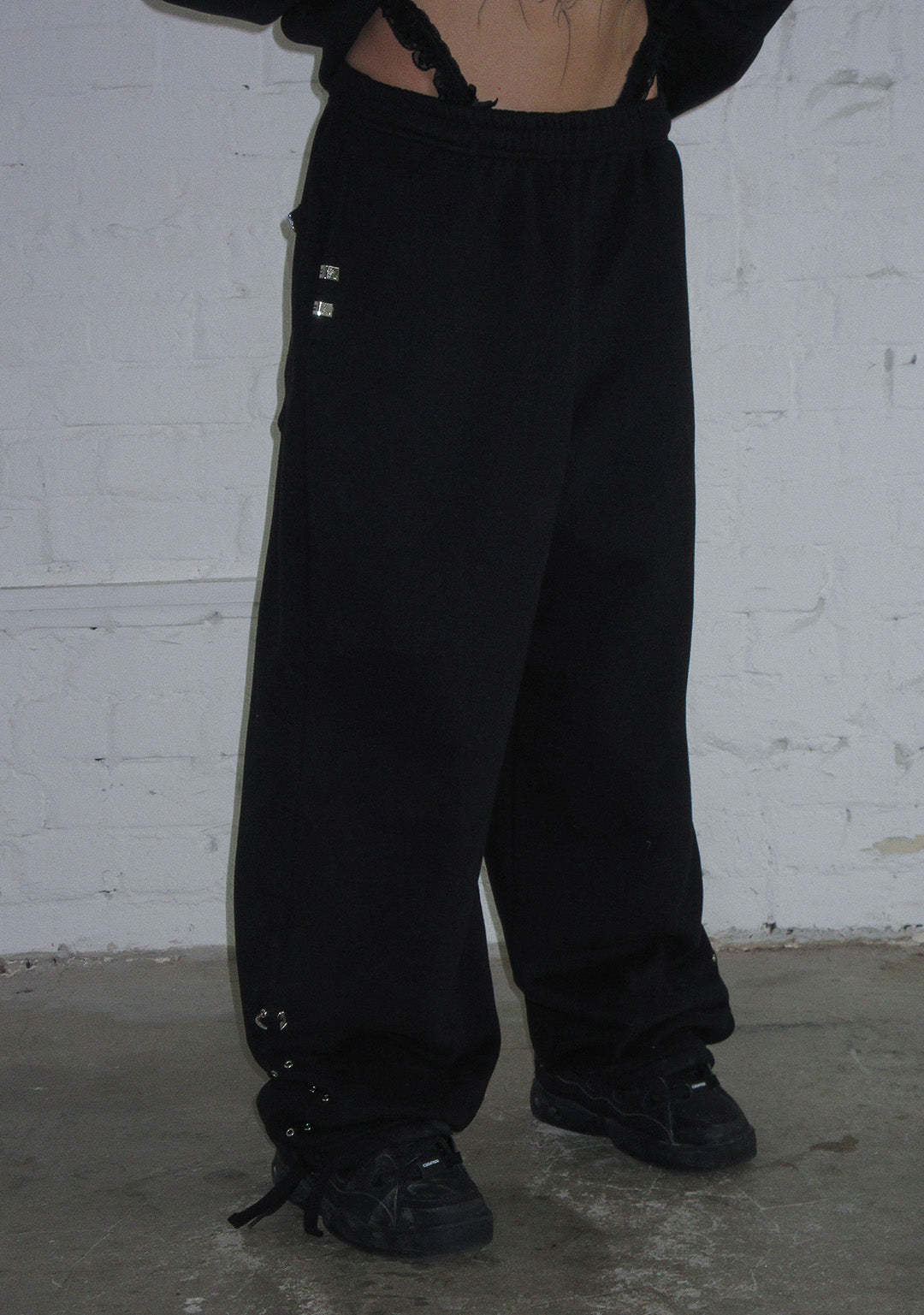 DESTROY CHROME PIERCED OVERSIZED SWEATPANTS BLACK