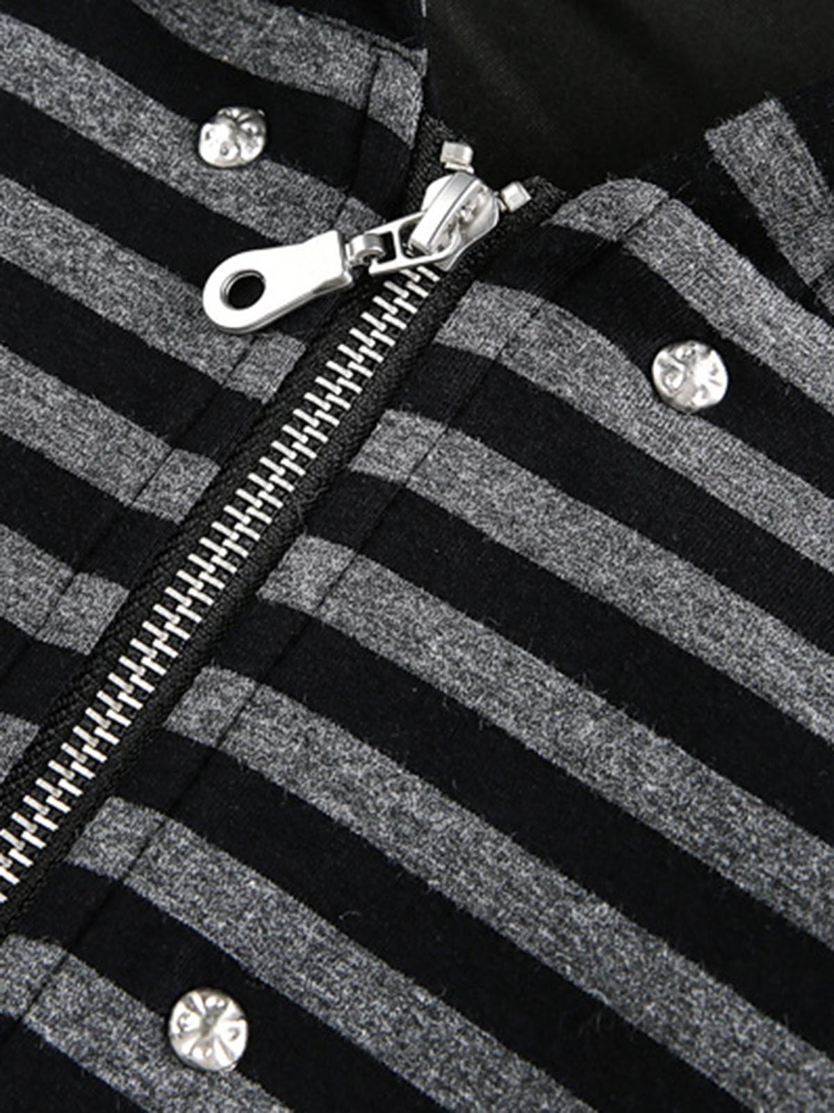Detachable Fur Collar Striped Zip Up Hoodie