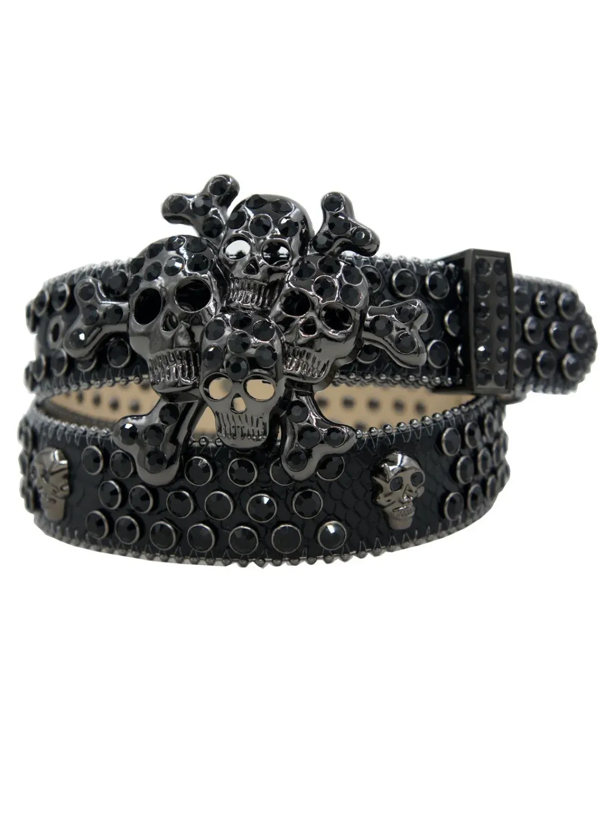 Skull - Black Leather Black Stones And Mini Skulls - 546