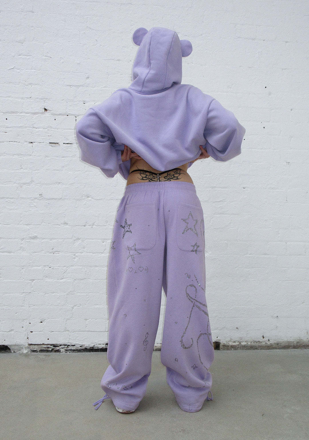 DREAMER RHINESTONE TEDDY PULLOVER HOODIE LILAC