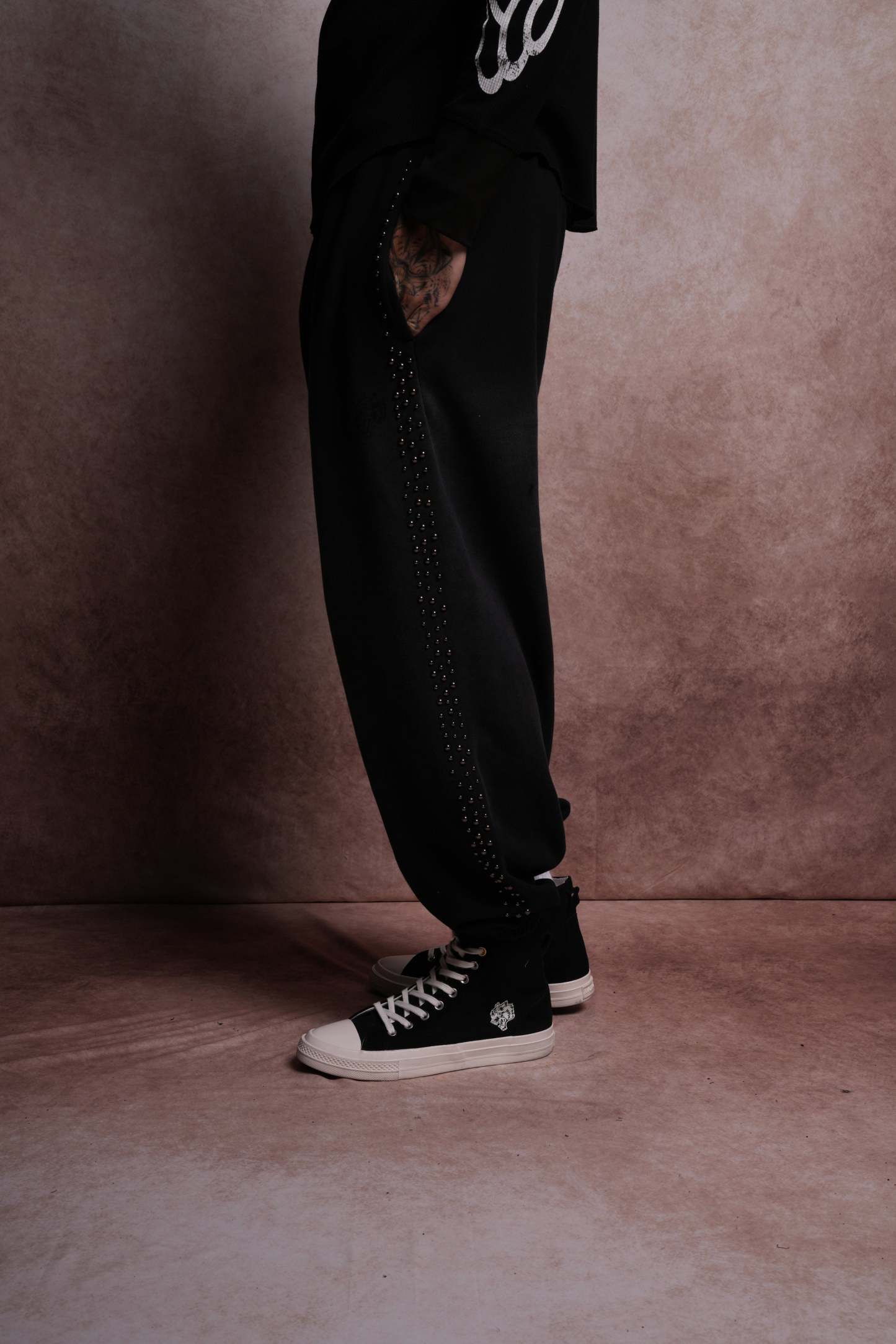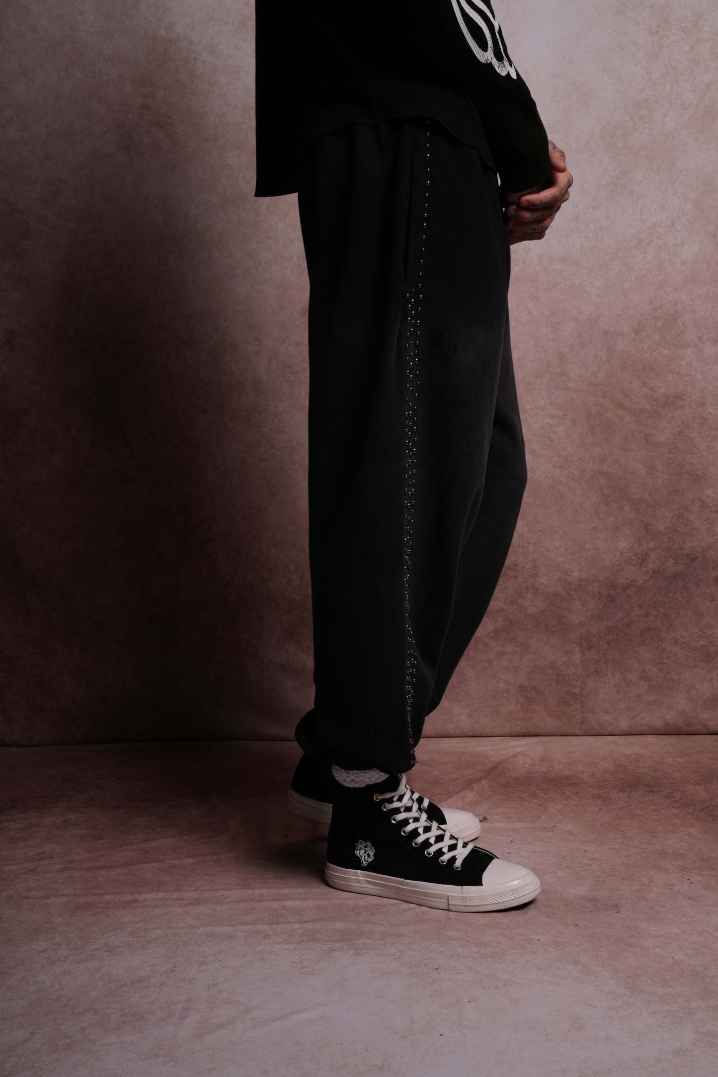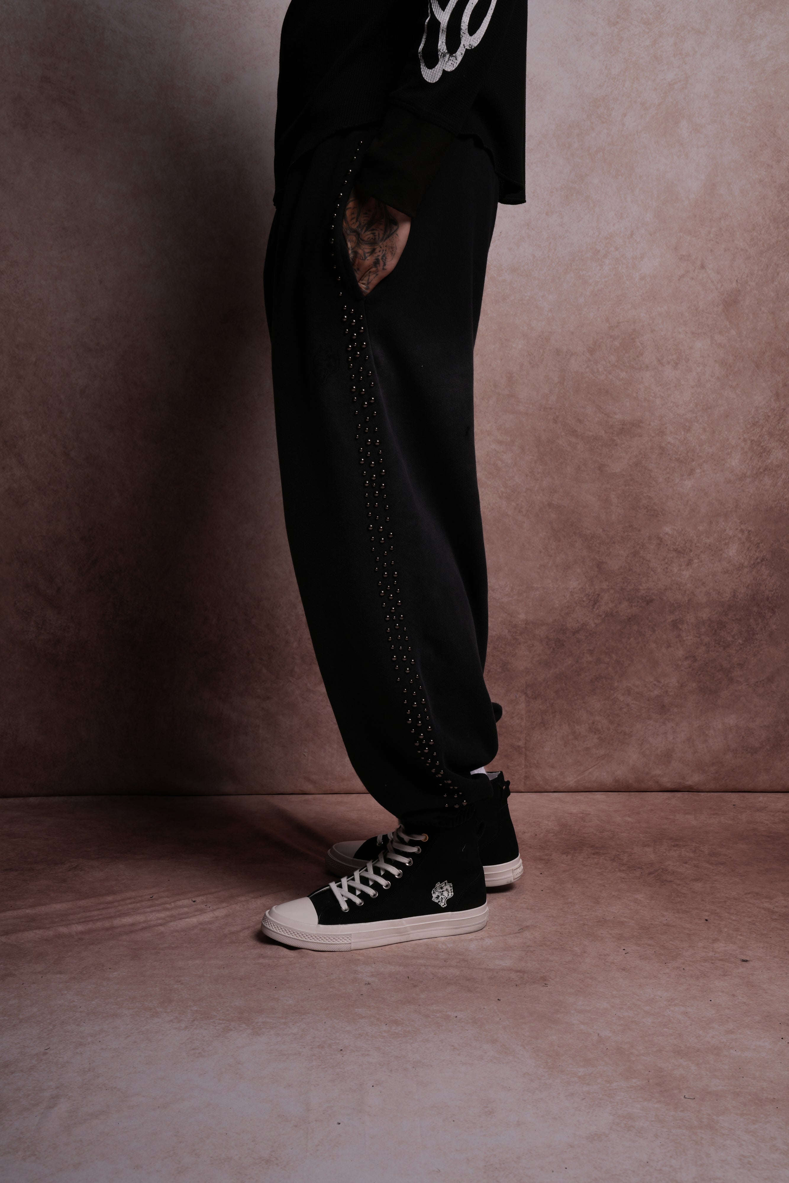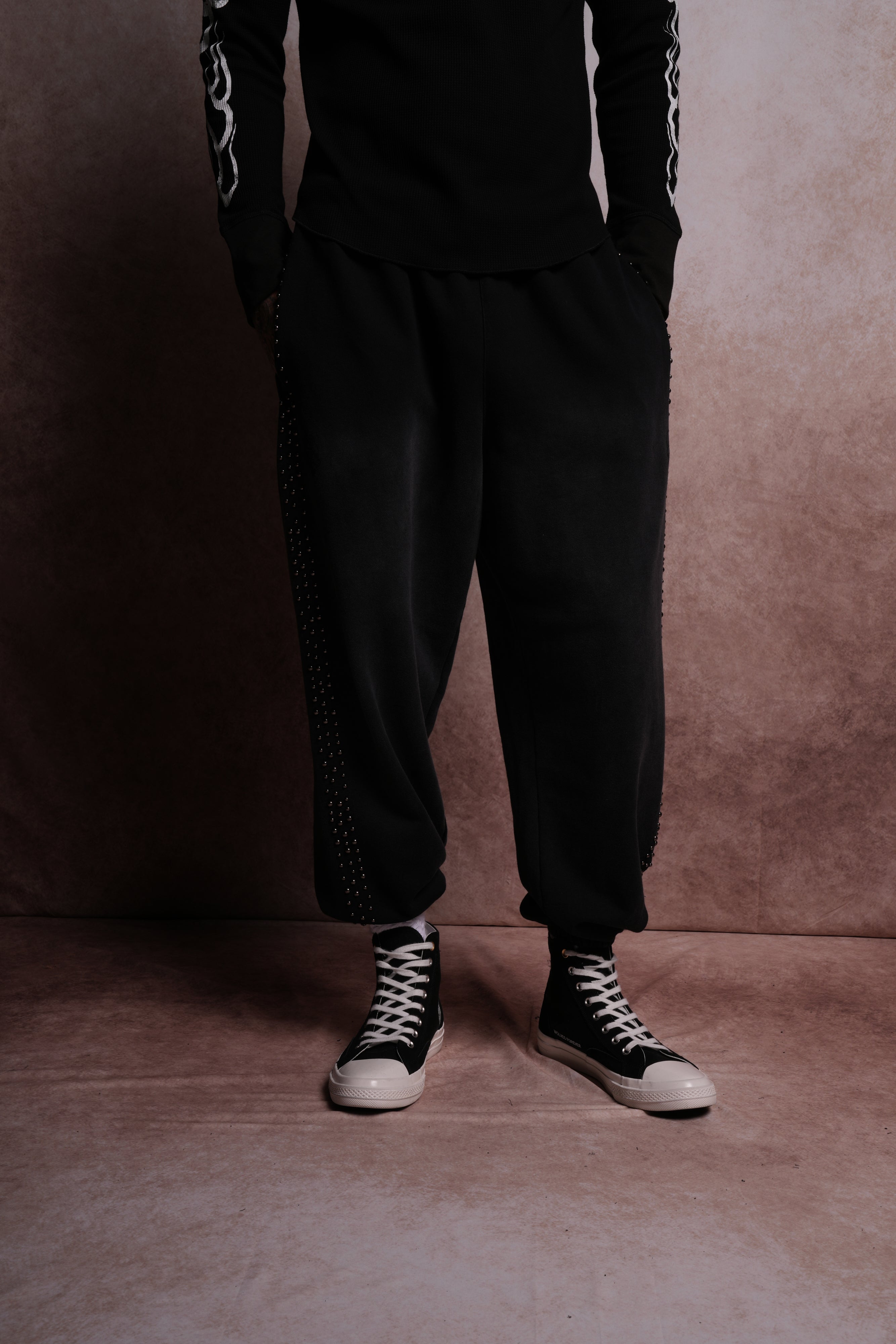 Dual Stud Lounger Sweat Pants in Black Horizon Sun Fade
