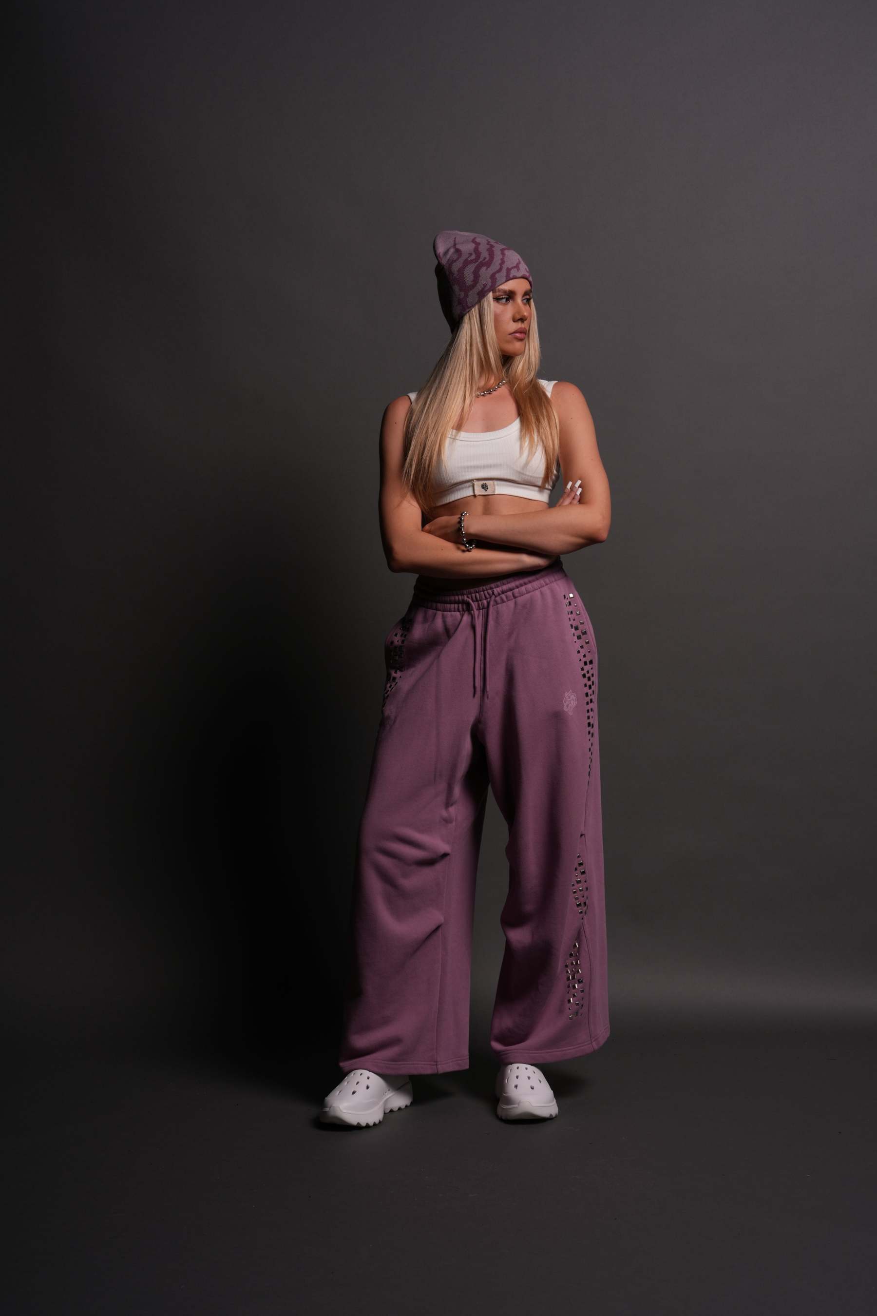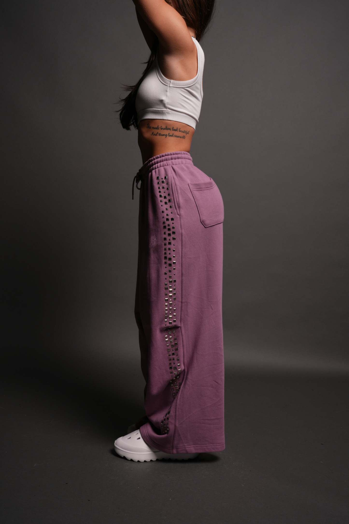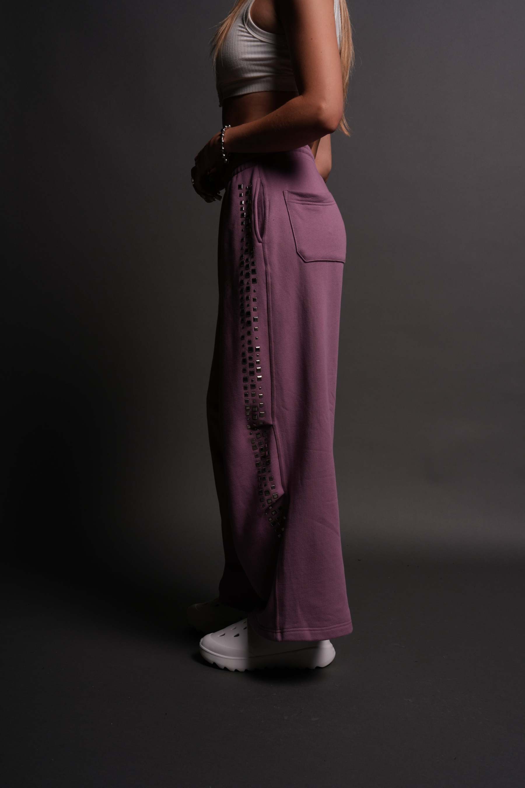 Dual Stud Mia Sweat Pants in Pink Smoke