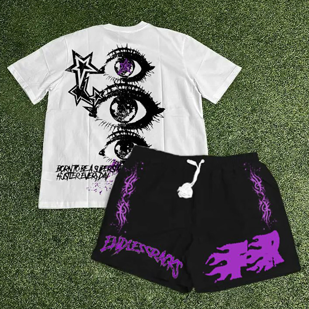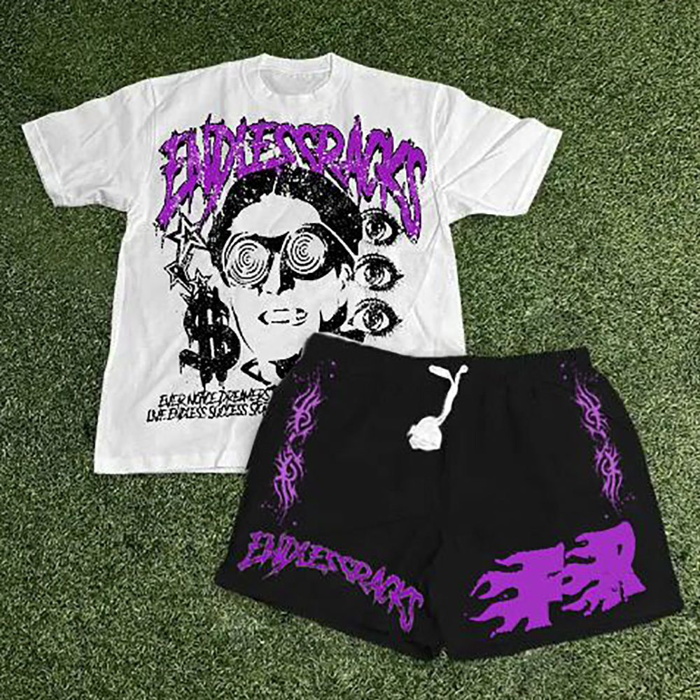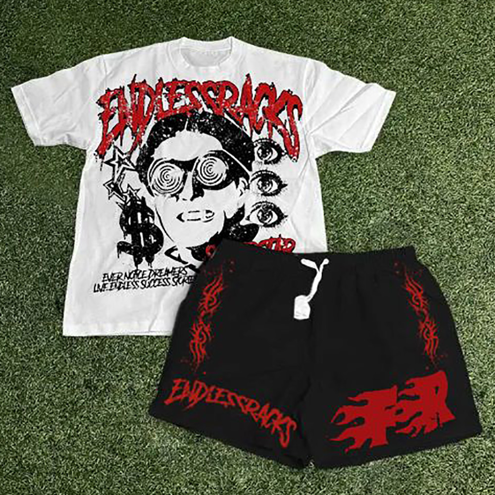 Endless Rocks Print T-Shirt Shorts Two-Piece Set