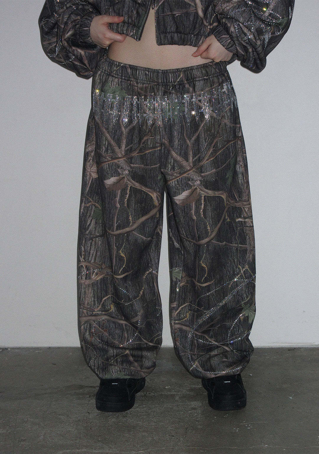 ENEMY RHINESTONE SWEATPANTS TREE CAMO